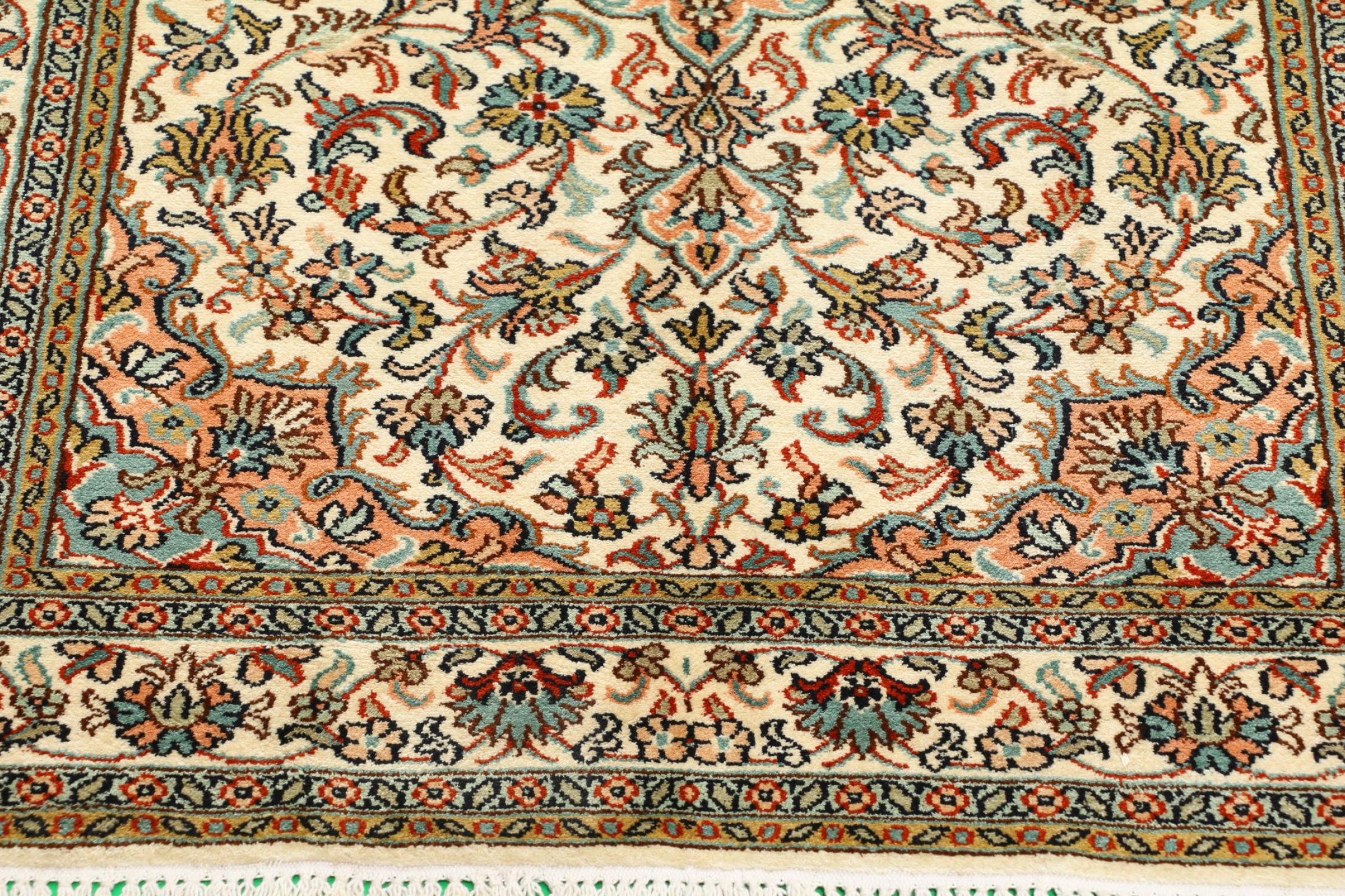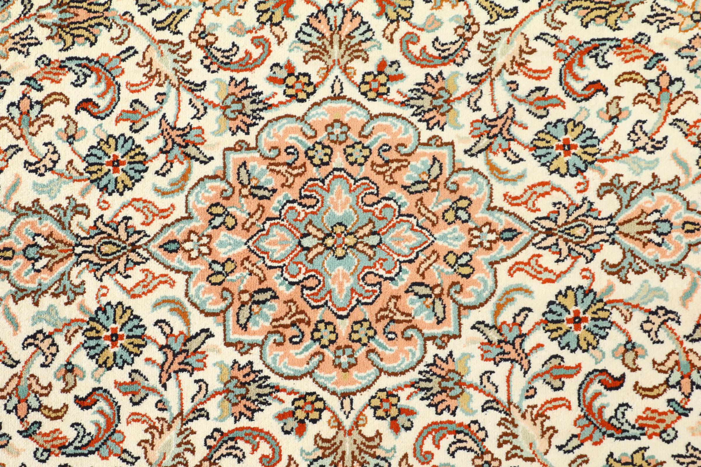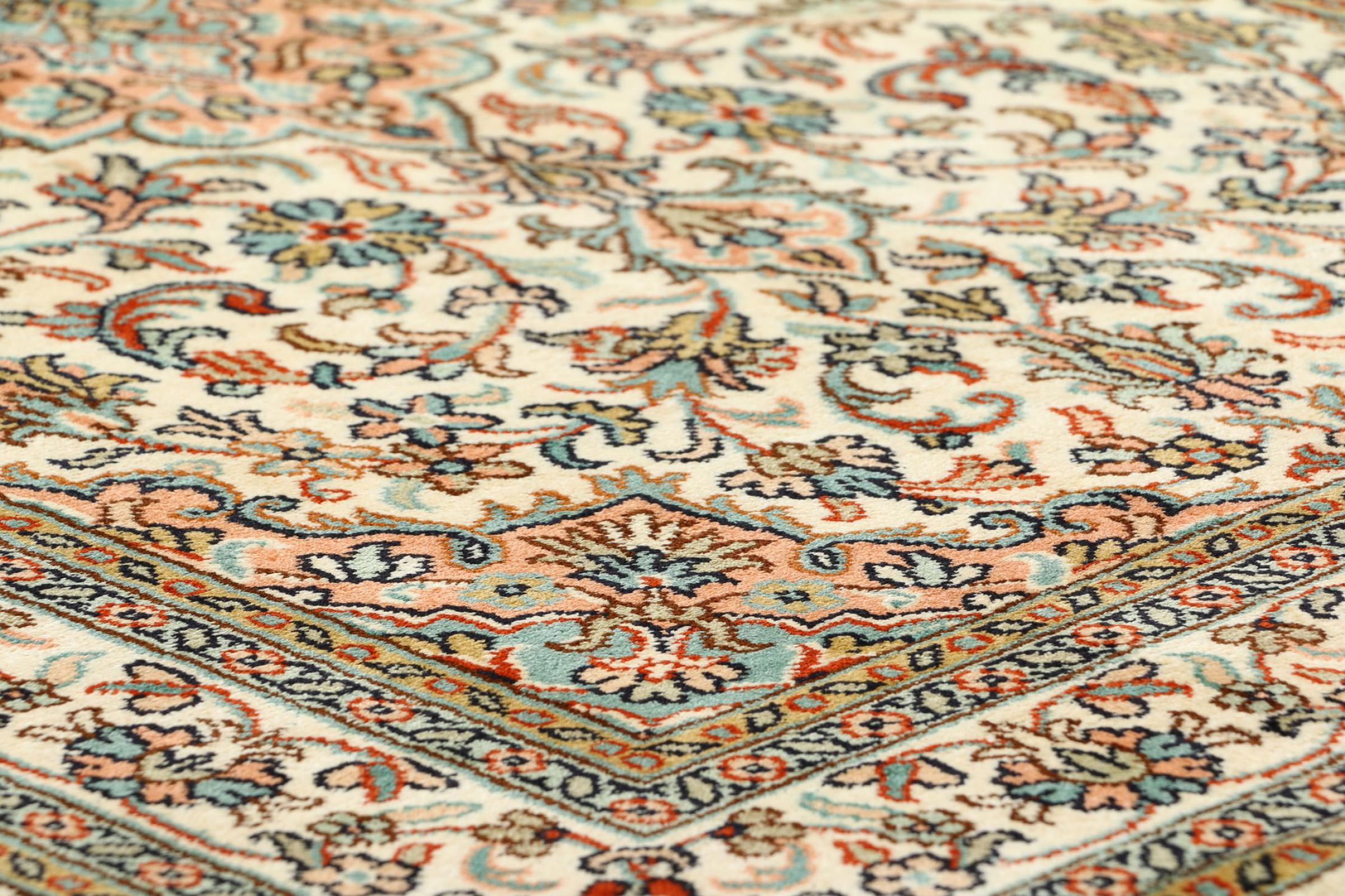 Ce splendide tapis de soie noué à la main originaire de Kashmir reflète le savoir-faire des noueurs de tapis indiens, qui utilisent les meilleurs matériaux pour former des motifs à couper le soufflé. Une pièce de luxe, juste pour vous.
