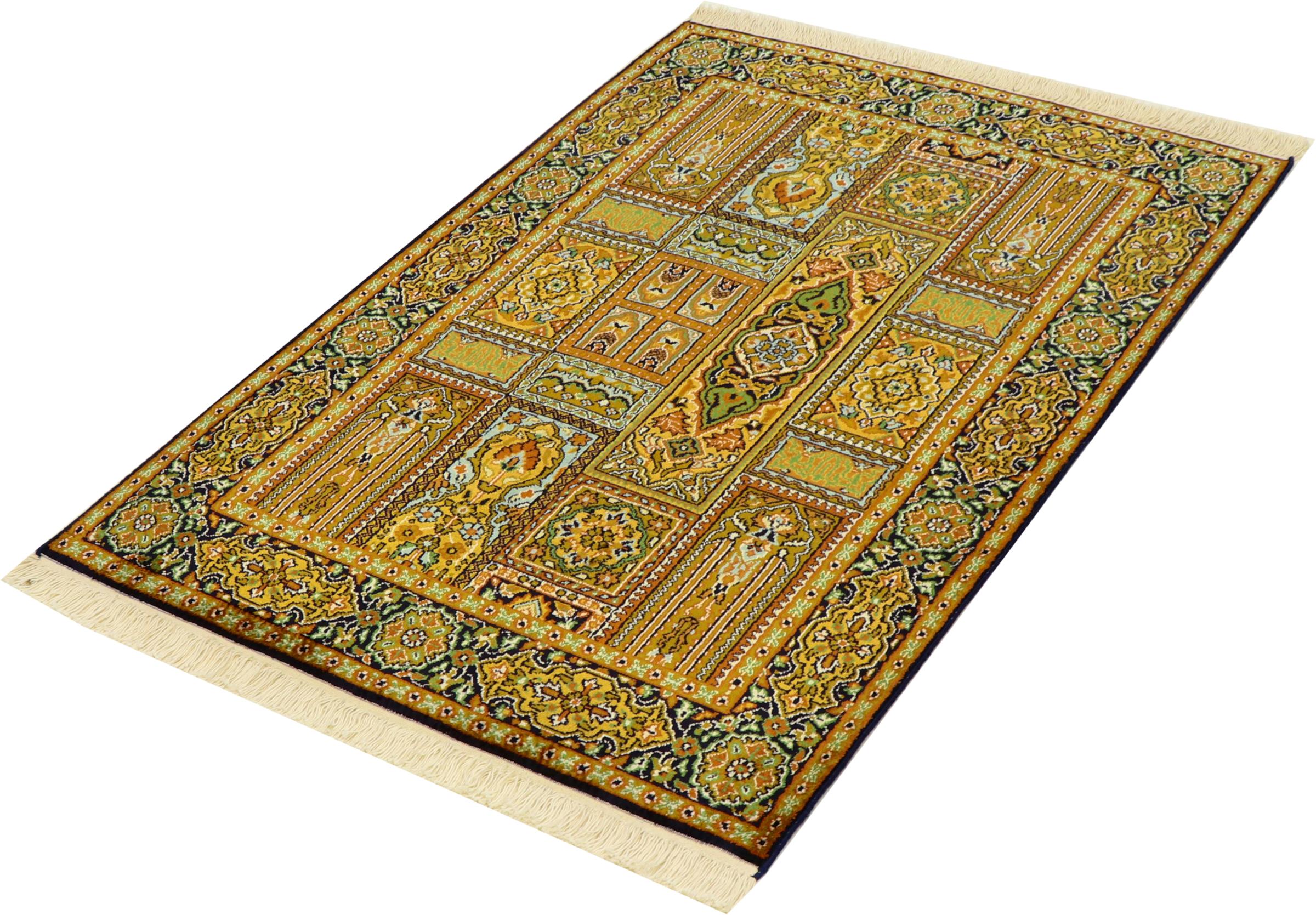 Réf. Article: 30346100107491 Taille: 127x77 cm Épaisseur: ap. 5 mm Densité de nouage: 440 000 - 490 000 / m² Fabrication: Noué à la main Velours: Soie Chaîne: Coton Origine: Inde Âge: Nouveau Poids: ap. 3 kg Nombre en stock: Unique - Seulement 1 en stock
