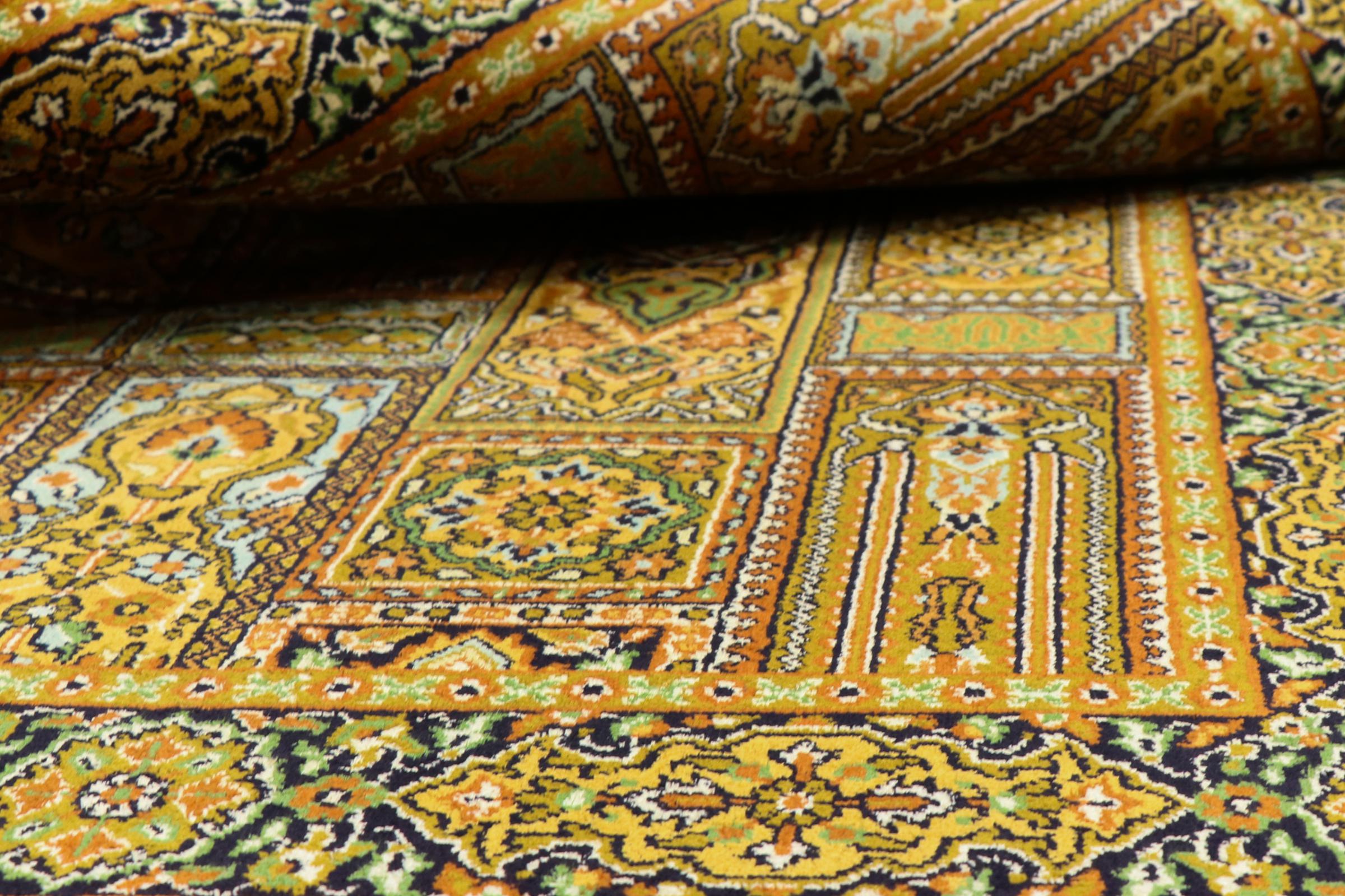 Ce splendide tapis de soie noué à la main originaire de Kashmir reflète le savoir-faire des noueurs de tapis indiens, qui utilisent les meilleurs matériaux pour former des motifs à couper le soufflé. Une pièce de luxe, juste pour vous.