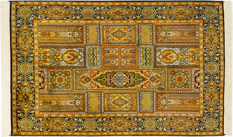 Les noueurs de tapis de l'ancienne Perse sont venus en Inde il y a des siècles pour exercer leur métier. Ainsi, l'Inde a aujourd'hui une tradition de nouage de tapis d'une grande portée. Les motifs et les ornements sont souvent basés sur les motifs bien connus des tapis persans. De nombreux tapis orientaux noués à la main viennent du nord du pays. Les tapis en soie du Cachemire, par exemple, proviennent de la région du Cachemire, qui est directement voisine du Pakistan.