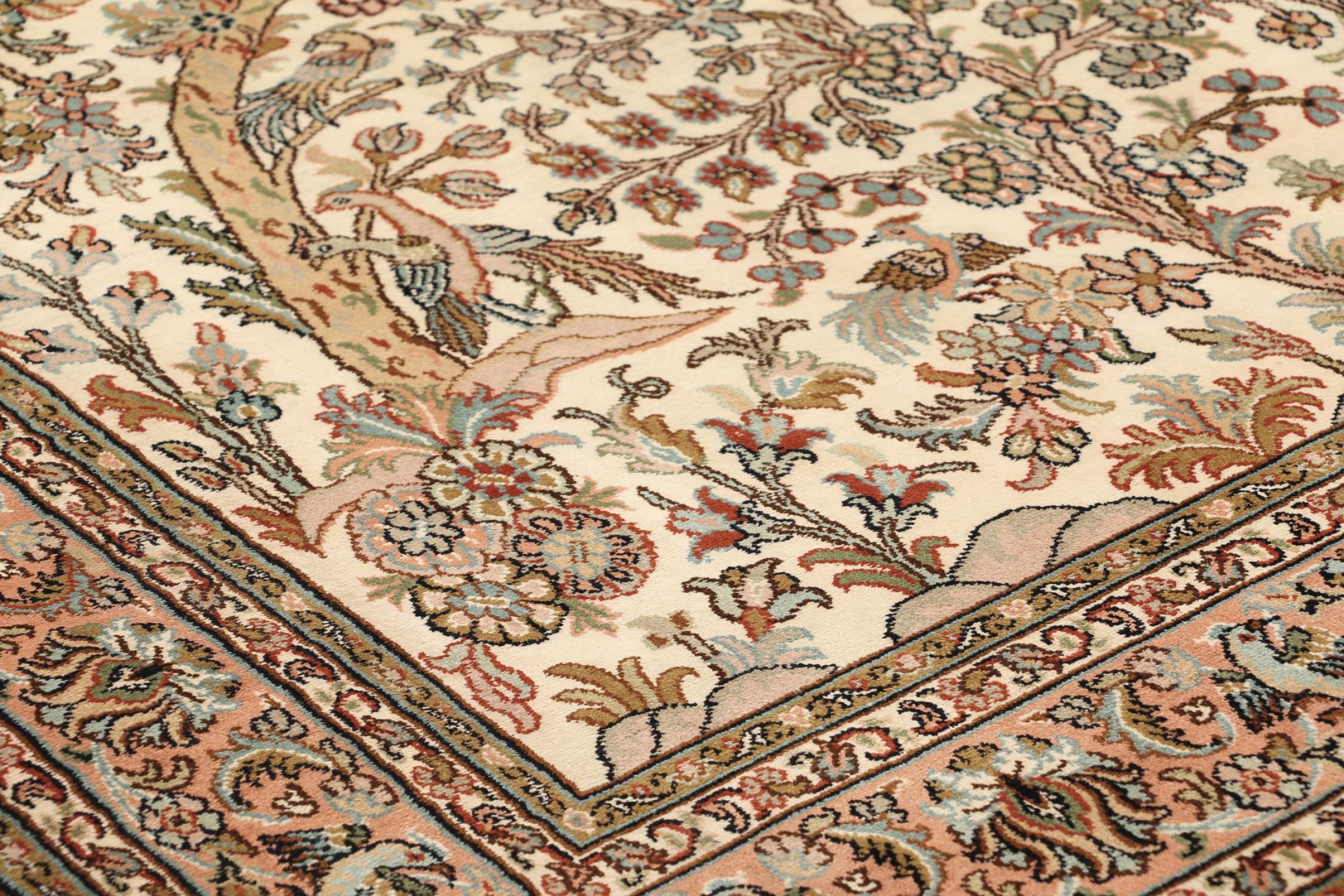 Ce splendide tapis de soie noué à la main originaire de Kashmir reflète le savoir-faire des noueurs de tapis indiens, qui utilisent les meilleurs matériaux pour former des motifs à couper le soufflé. Une pièce de luxe, juste pour vous.