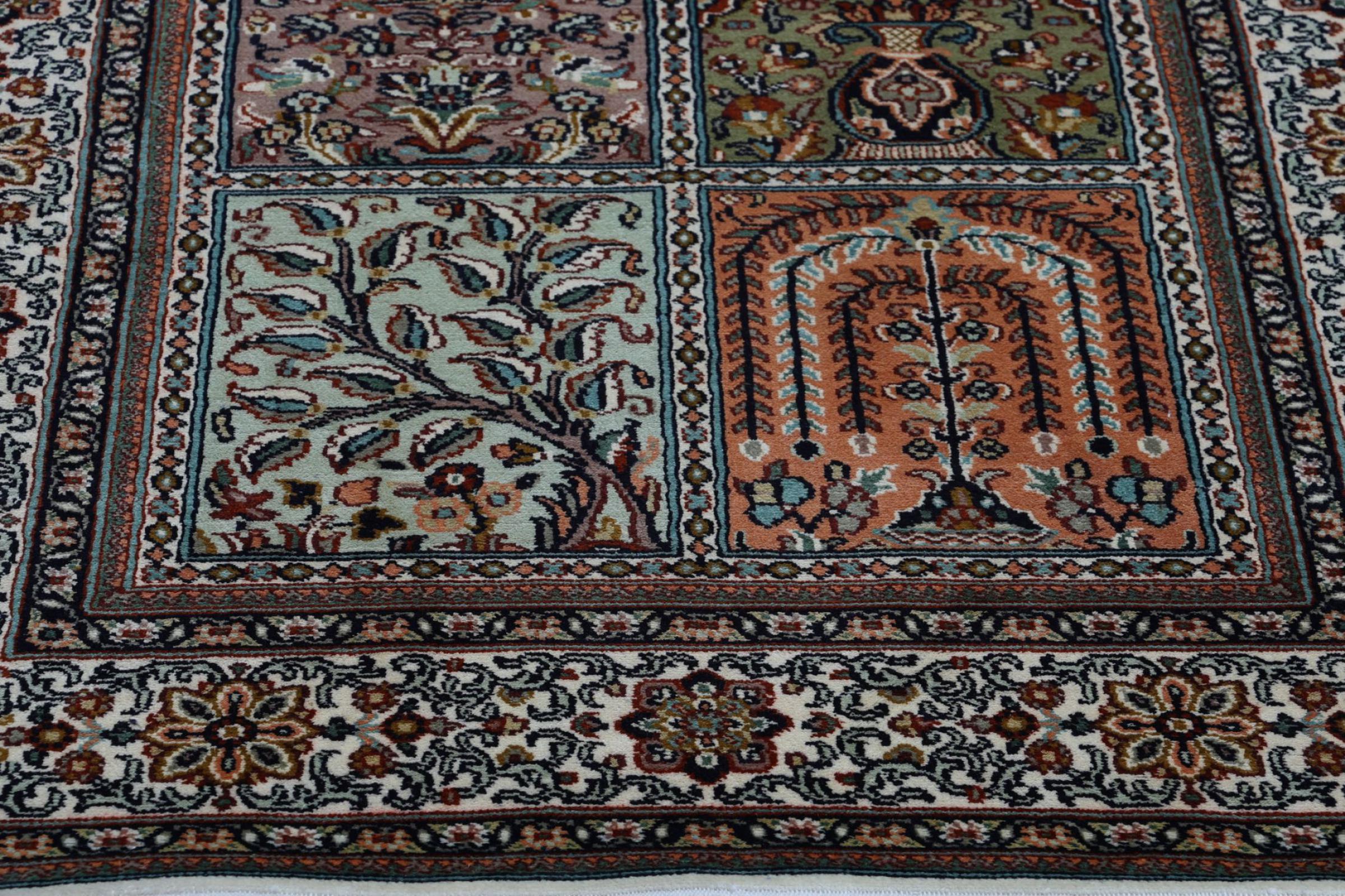 Les noueurs de tapis de l'ancienne Perse sont venus en Inde il y a des siècles pour exercer leur métier. Ainsi, l'Inde a aujourd'hui une tradition de nouage de tapis d'une grande portée. Les motifs et les ornements sont souvent basés sur les motifs bien connus des tapis persans. De nombreux tapis orientaux noués à la main viennent du nord du pays. Les tapis en soie du Cachemire, par exemple, proviennent de la région du Cachemire, qui est directement voisine du Pakistan.