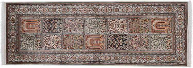 Réf. Article: 309635006823476 Taille: 212x77 cm Épaisseur: ap. 7 mm Densité de nouage: 440 000 - 490 000 / m² Fabrication: Noué à la main Velours: Soie Chaîne: Coton Origine: Inde Âge: Nouveau Poids: ap. 5 kg Nombre en stock: Unique - Seulement 1 en stock
