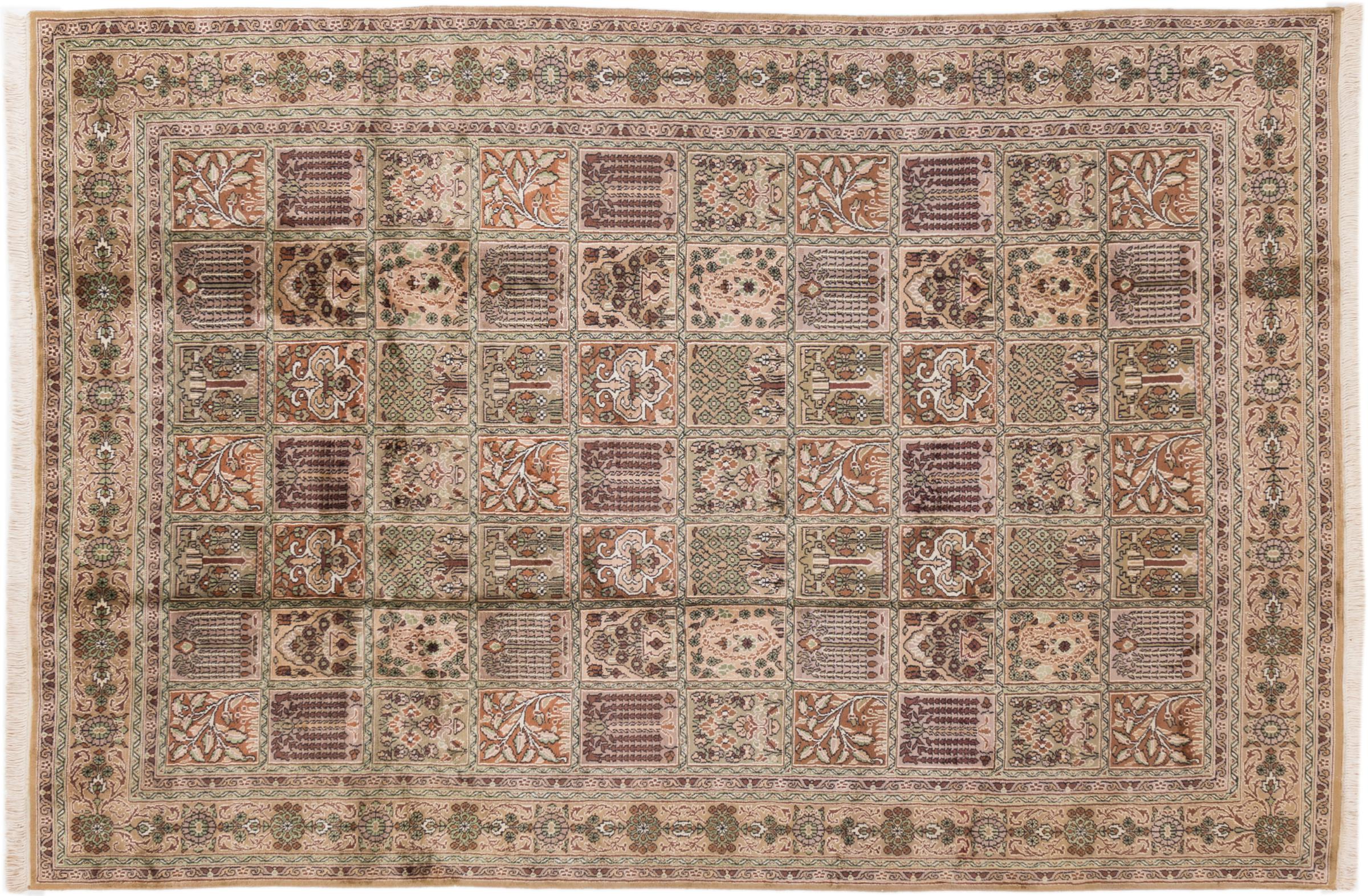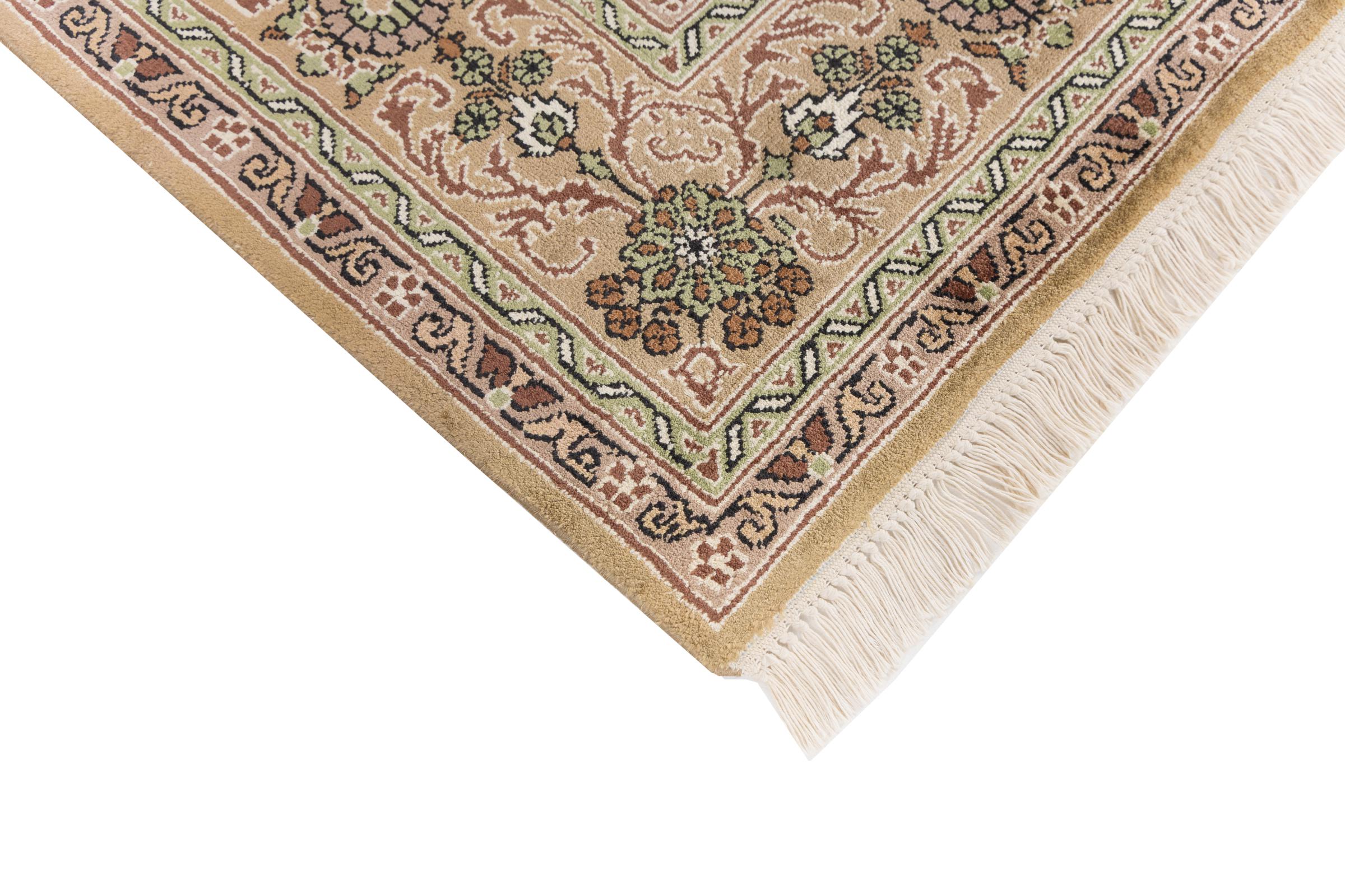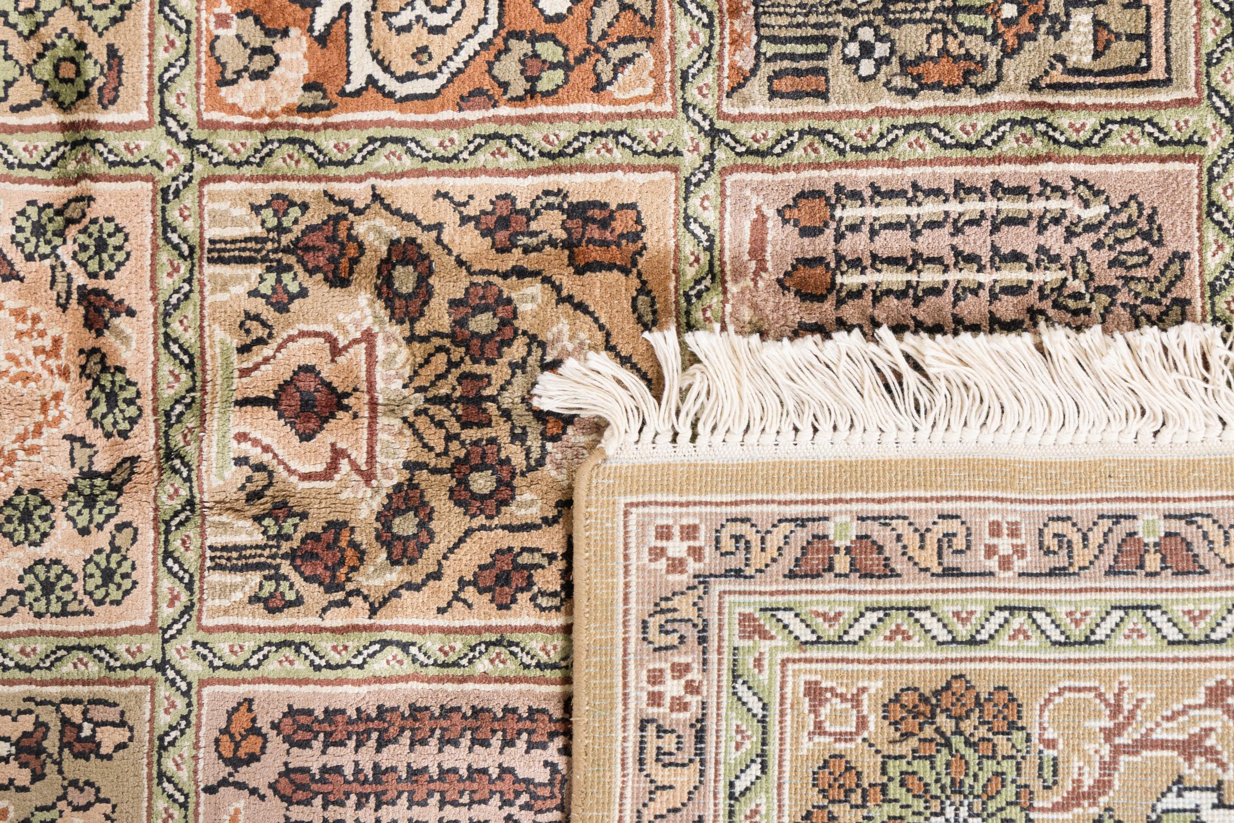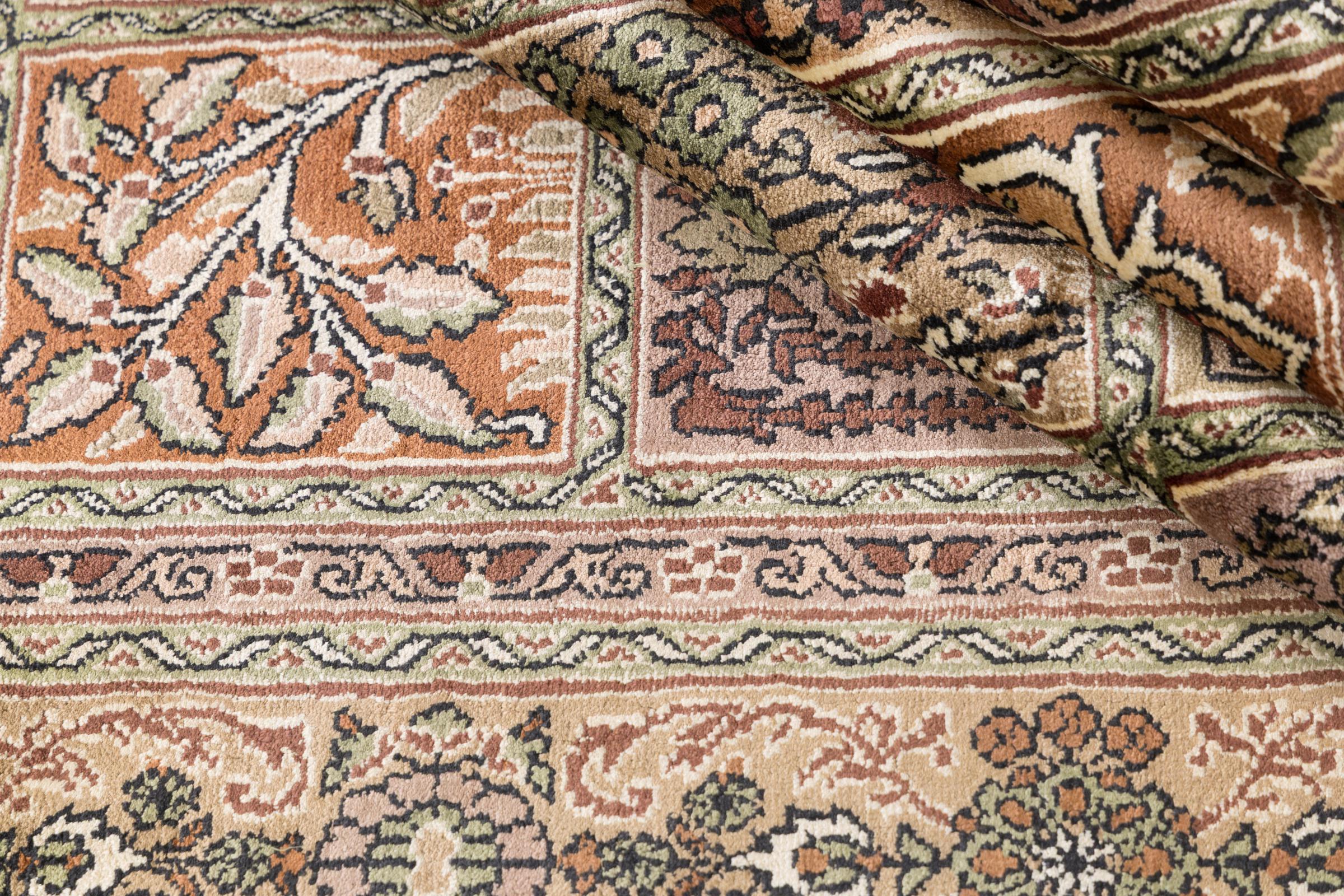 Ce splendide tapis de soie noué à la main originaire de Kashmir reflète le savoir-faire des noueurs de tapis indiens, qui utilisent les meilleurs matériaux pour former des motifs à couper le soufflé. Une pièce de luxe, juste pour vous.