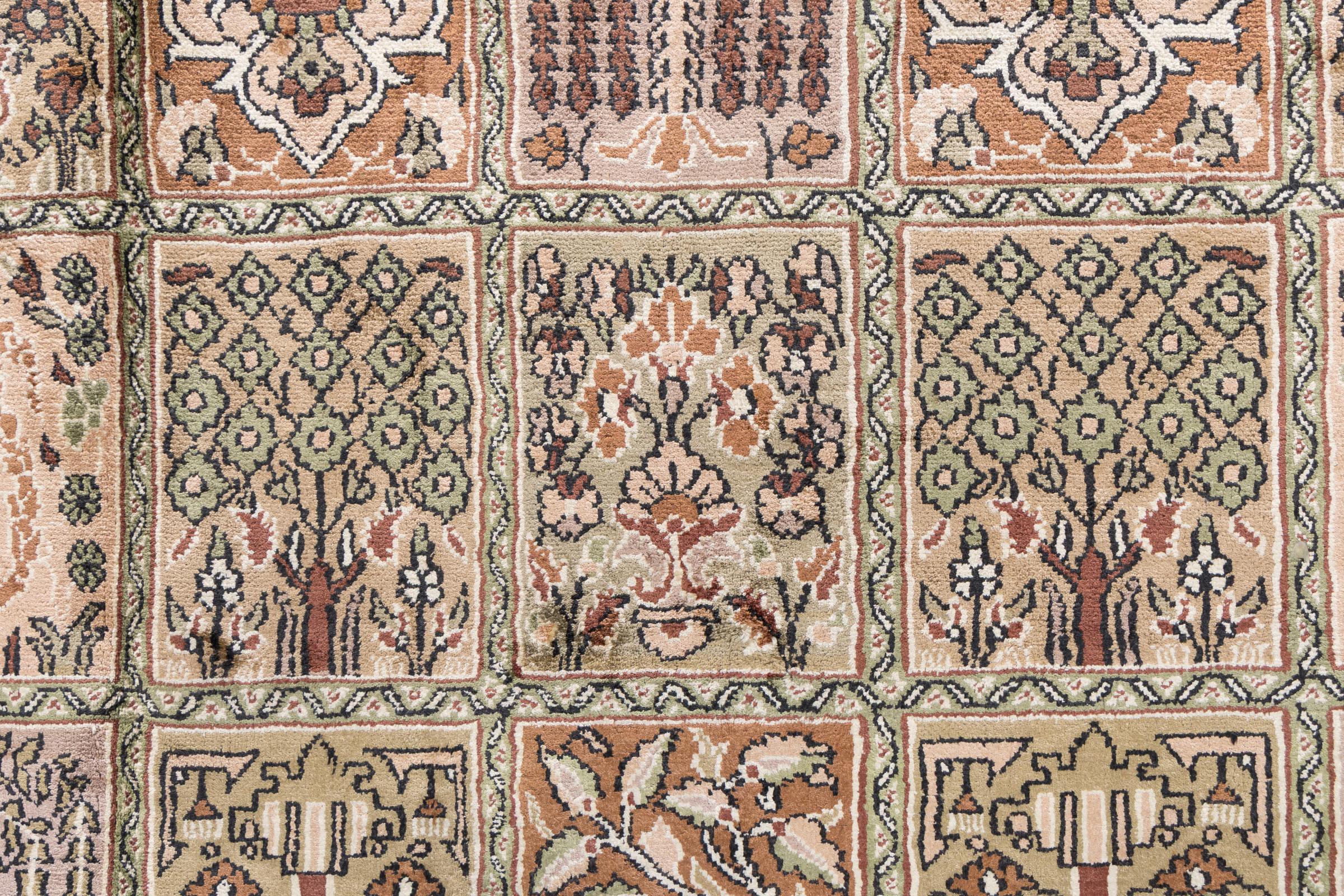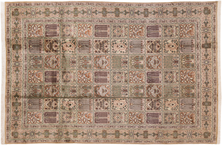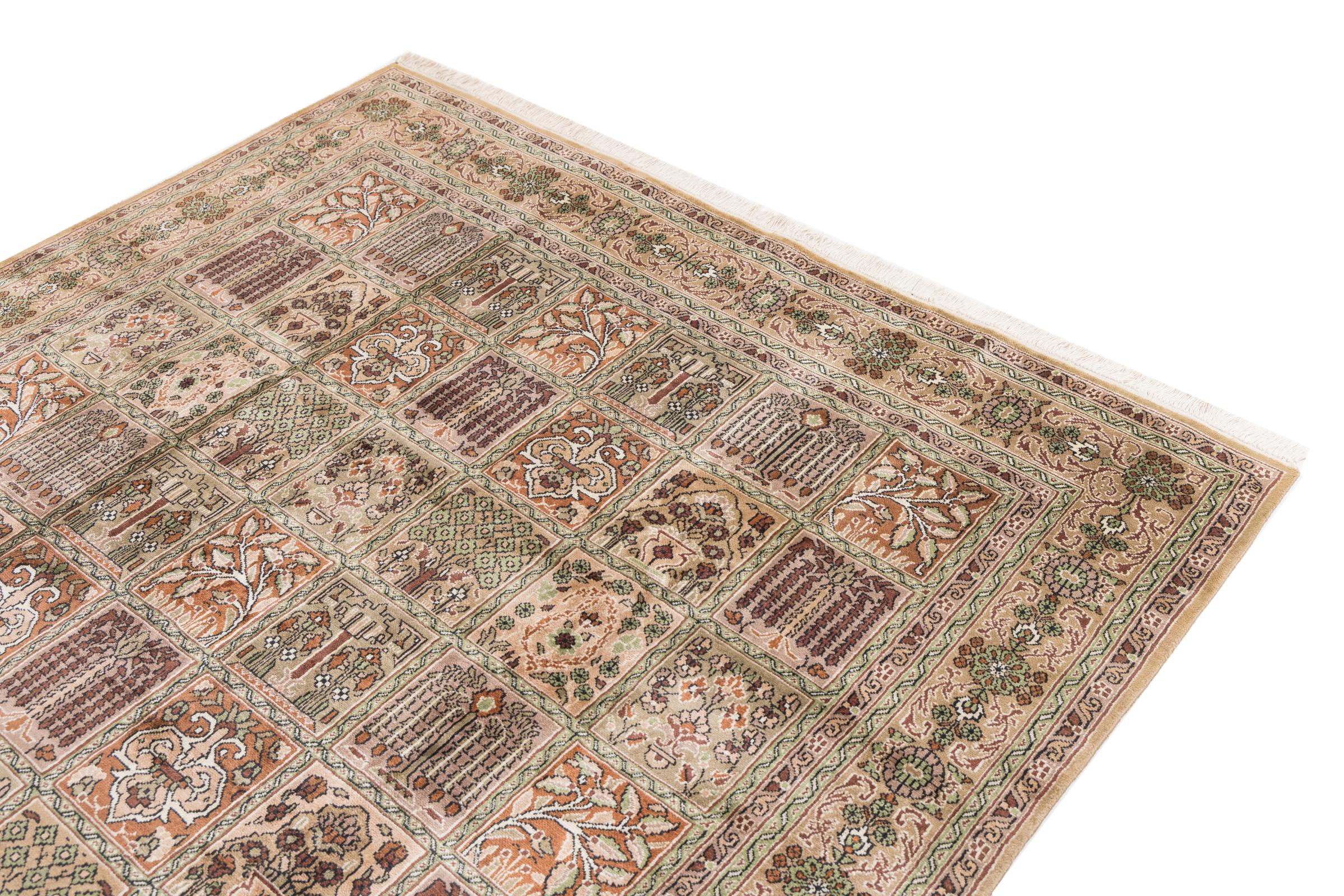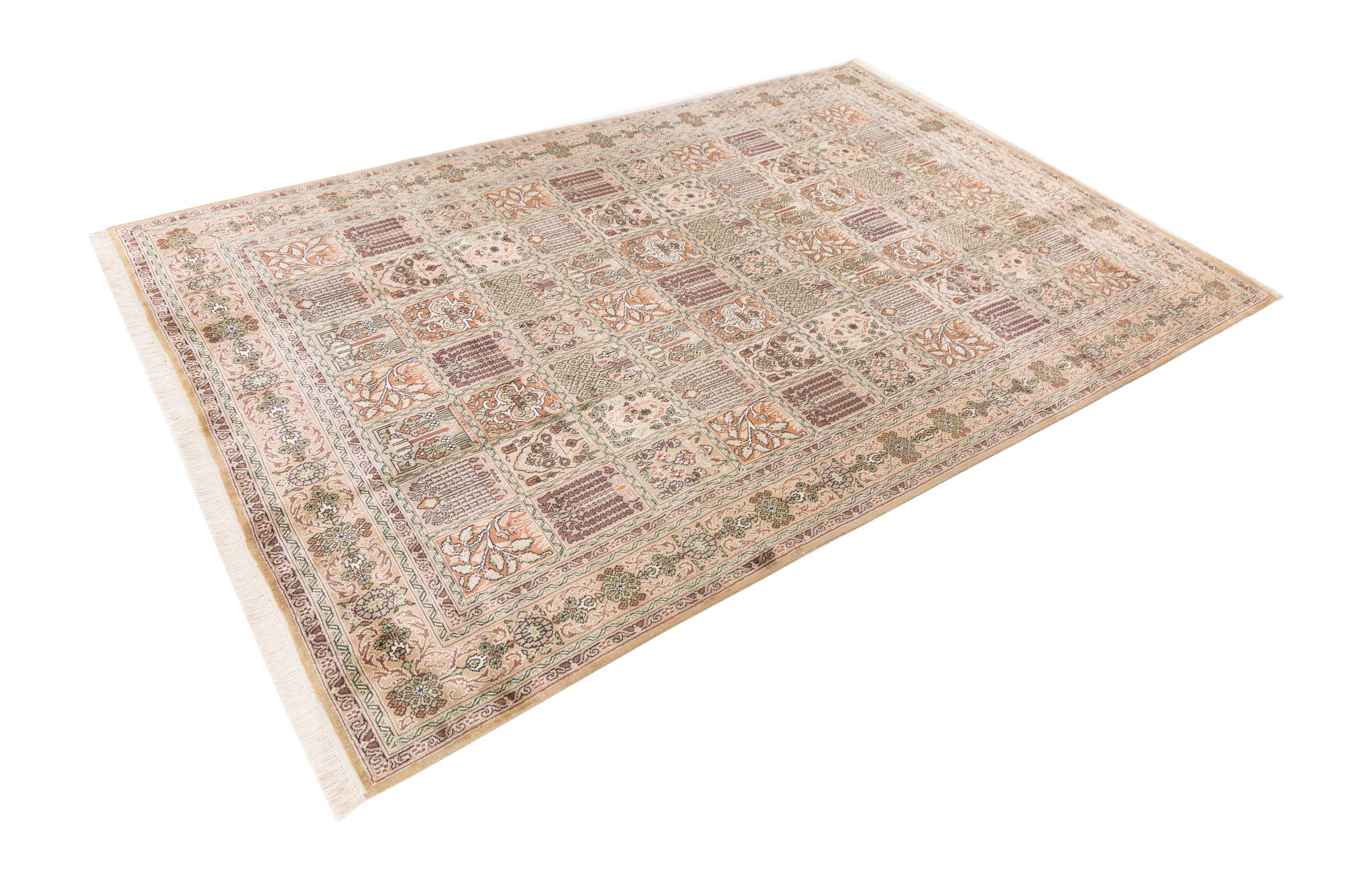 Ce splendide tapis de soie noué à la main originaire de Kashmir reflète le savoir-faire des noueurs de tapis indiens, qui utilisent les meilleurs matériaux pour former des motifs à couper le soufflé. Une pièce de luxe, juste pour vous.