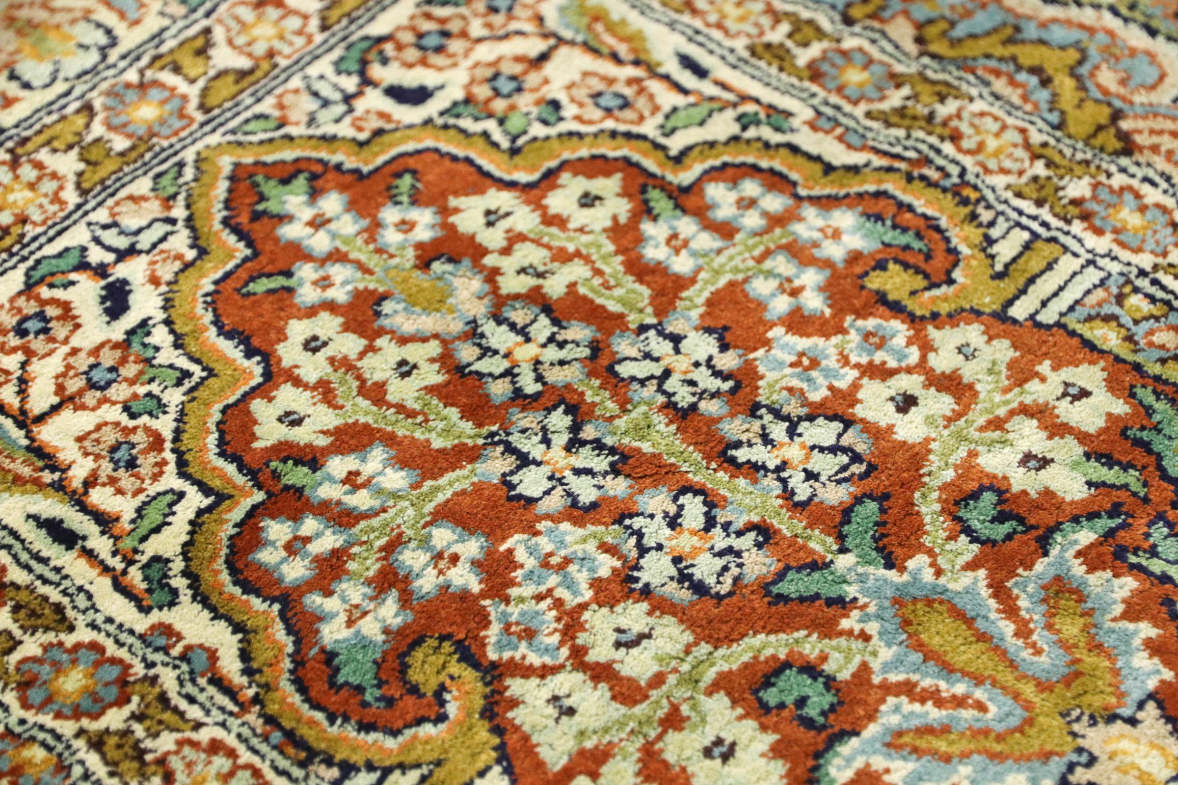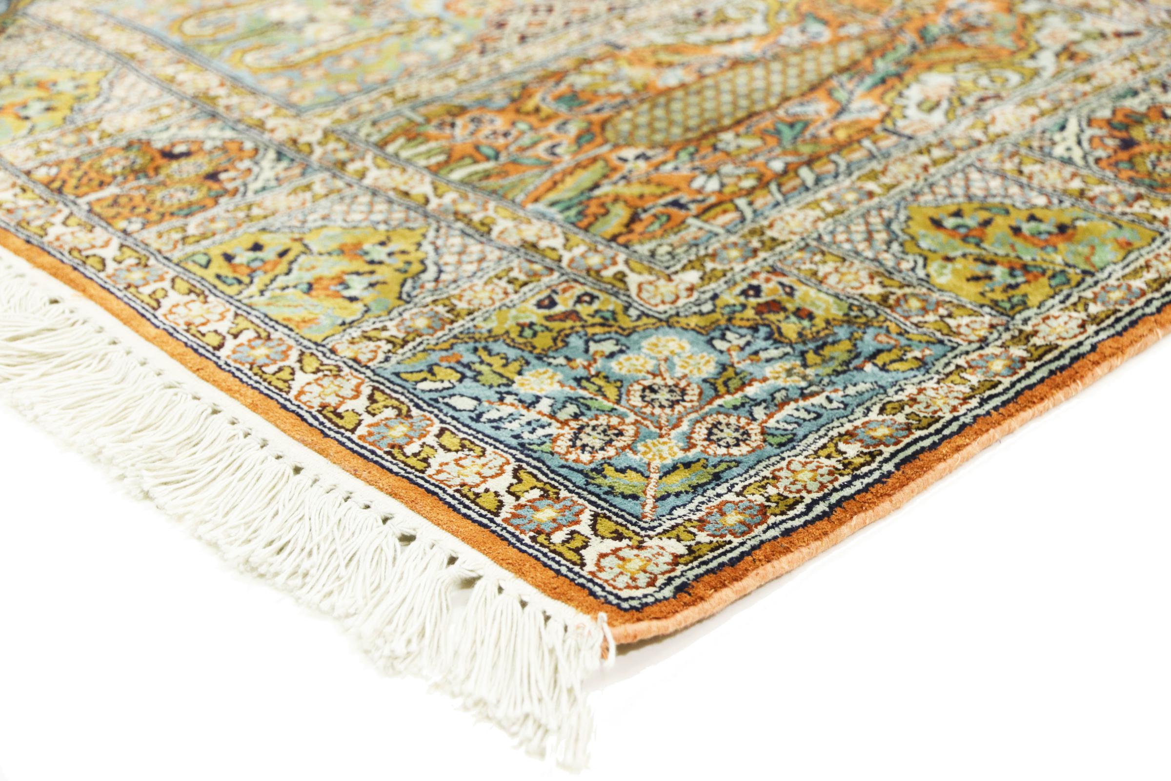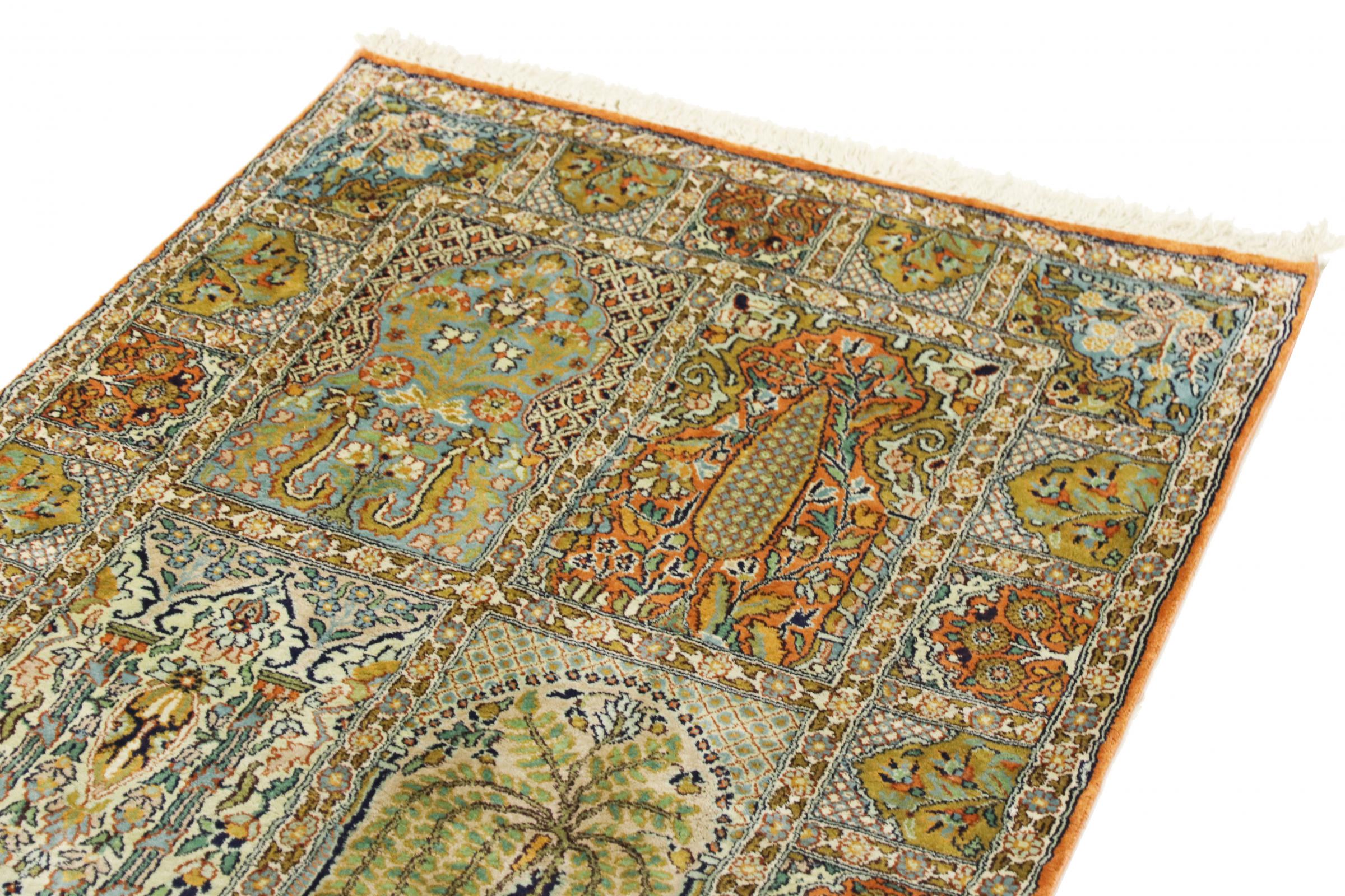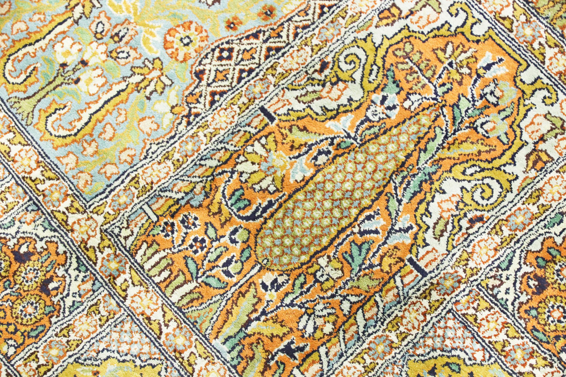 Ce splendide tapis de soie noué à la main originaire de Kashmir reflète le savoir-faire des noueurs de tapis indiens, qui utilisent les meilleurs matériaux pour former des motifs à couper le soufflé. Une pièce de luxe, juste pour vous.