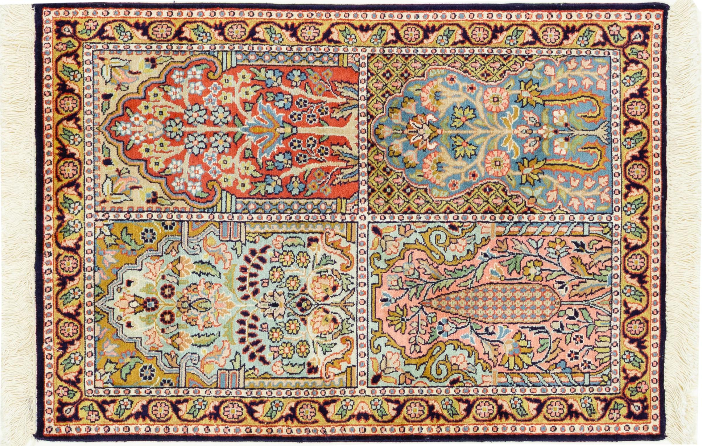 Réf. Article: 303327005129491 Taille: 89x62 cm Épaisseur: ap. 5 mm Densité de nouage: 440 000 - 490 000 / m² Fabrication: Noué à la main Velours: Soie Chaîne: Coton Origine: Inde Âge: Nouveau Poids: ap. 2 kg Nombre en stock: Unique - Seulement 1 en stock