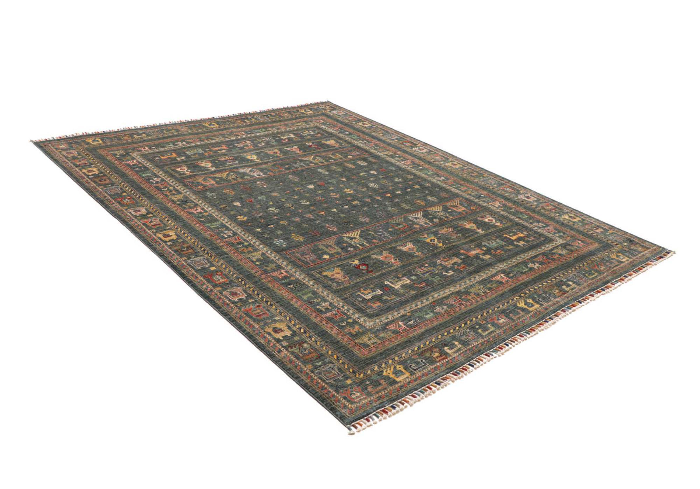 Ce tapis est fait de laine de mouton filée à la main de la plus haute qualité. En Iran (ancienne Perse), en Afghanistan et au Pakistan notamment, la laine est encore filée à la main avant que ne commence le nouage proprement dit du tapis. La laine a fait ses preuves en tant que matière naturelle et extrêmement résistante au fil des siècles. Il a notamment des propriétés antisalissures et d'isolation thermique. En même temps, la laine est incomparablement douce et a un éclat naturel.
