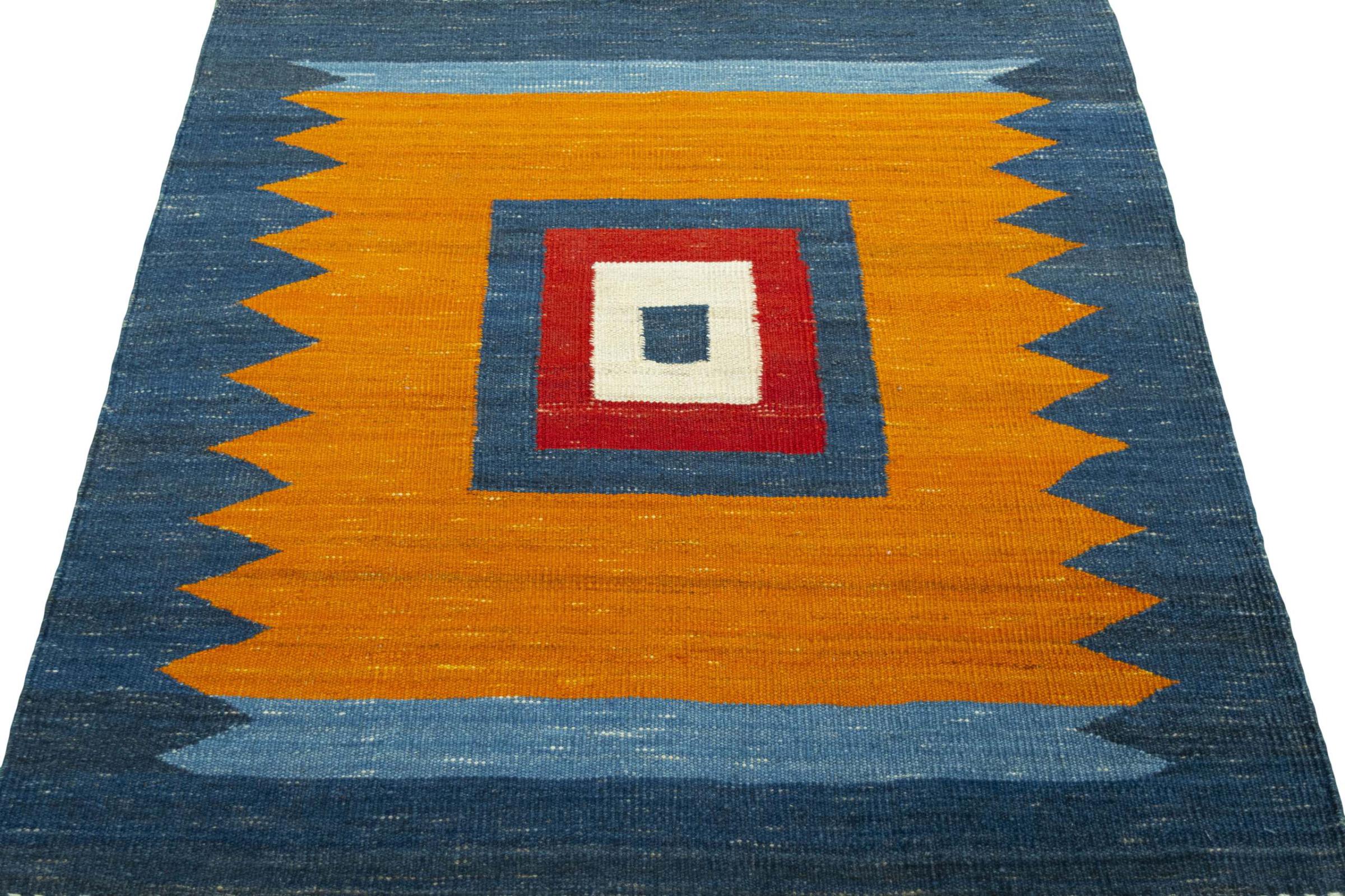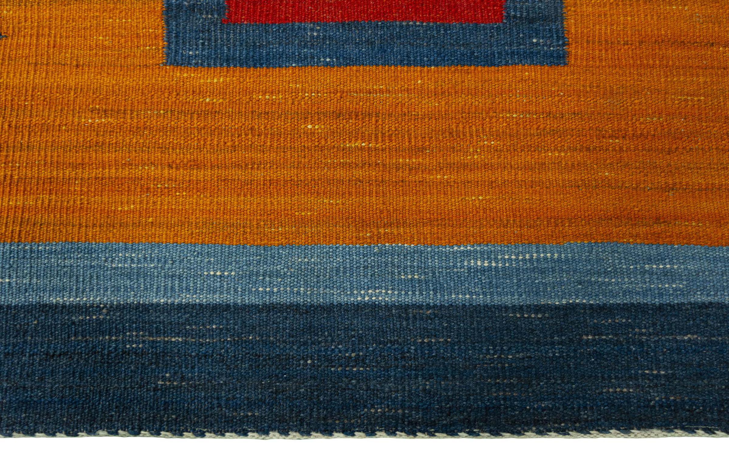 Cet Eylisian est un kilim au design tissé à plat, moderne et de très haute qualité. Sa laine naturelle filée à la main a été tissée à la main selon un design contemporain en utilisant la technique persane traditionnelle. Sa qualité robuste et durable en fait un accroche-regard populaire, contemporain et intemporel dans votre maison.