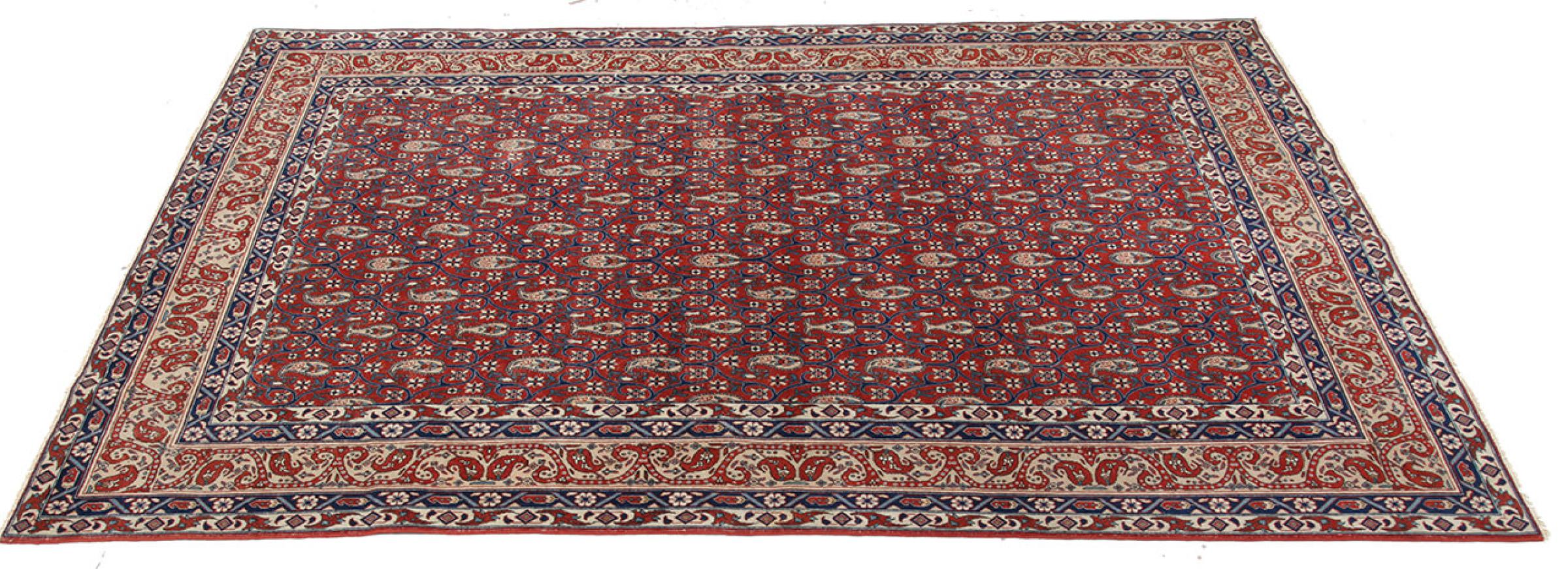 Réf. Article: 309968005236744 Taille: 210x139 cm Épaisseur: ap. 8 mm Densité de nouage: 410 000 - 450 000 / m² Fabrication: Noué à la main Velours: Laine filée à la main Chaîne: Coton État du tapis / Conservation Perfect Origine: Persie / Iran Âge: Antique, over 80 ans Poids: ap. 9 kg Également connu sous Arak , Sarough, Sarouk, Saruk, Saroq, Sultanabad Nombre en stock: Unique - Seulement 1 en stock