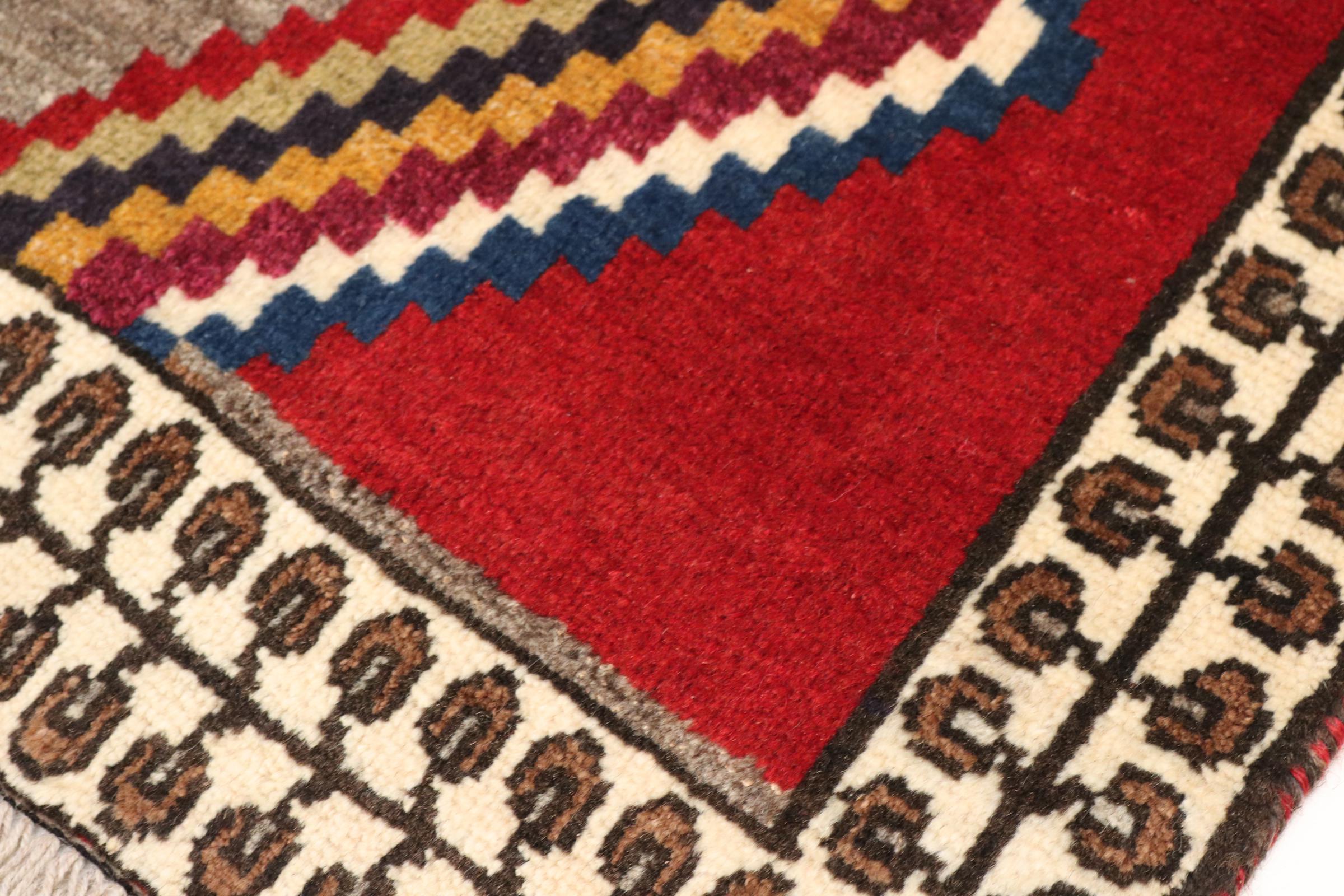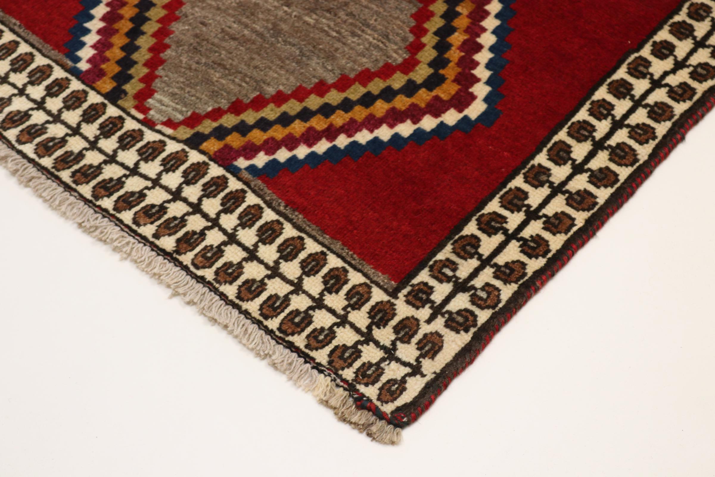 Ce tapis Qashqai attire immédiatement l’attention. Ces couleurs et motifs reflètent la vie des nomades Qashqai d’Iran, qui vivent près de la ville de Shiraz. Laissez une pièce de la culture Iranienne entrer chez vous.
