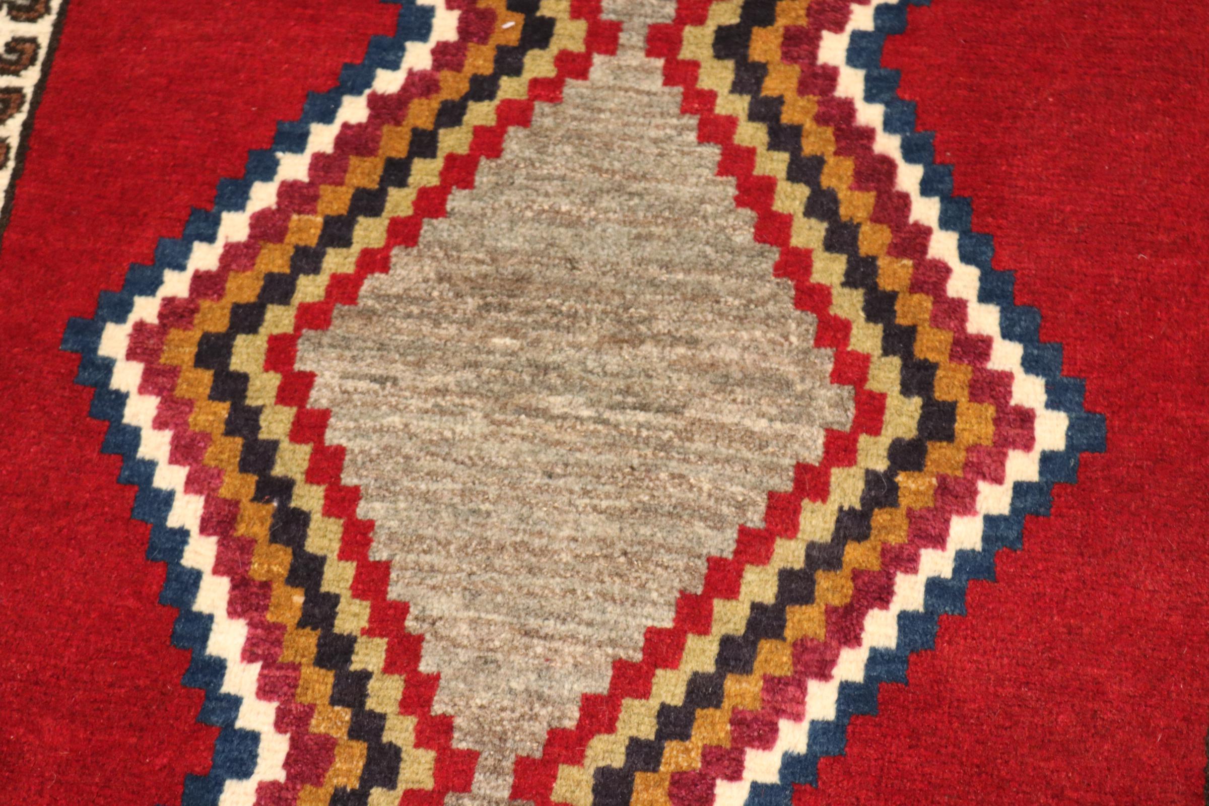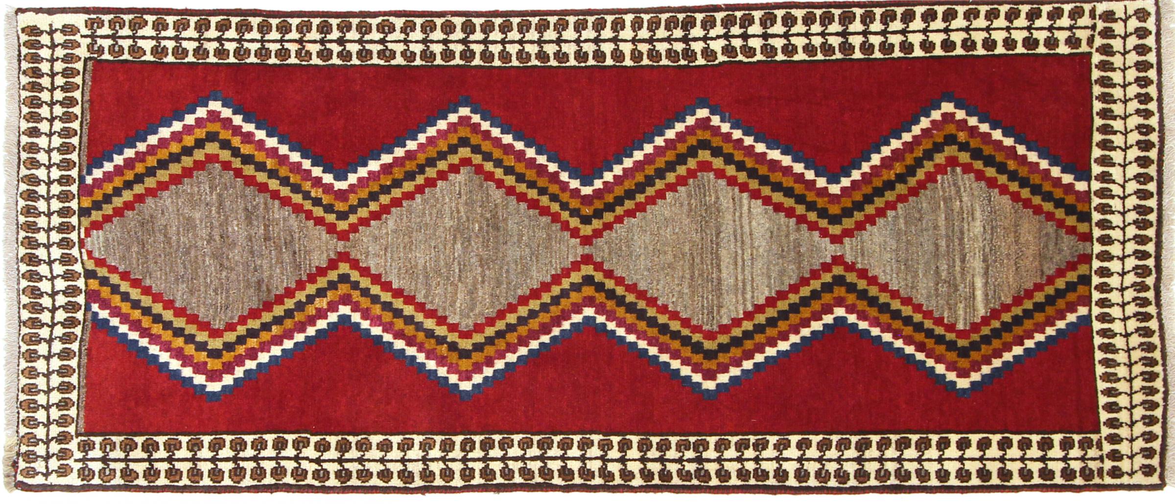 Réf. Article: 5519100708072 Taille: 192x79 cm Épaisseur: ap. 12 mm Densité de nouage: 160 000 - 200 000 / m² Fabrication: Noué à la main Velours: Laine filée à la main Chaîne: Coton Origine: Persie / Iran Âge: Nouveau Poids: ap. 5 kg Également connu sous Qashqai, Gaschgai, Gashghai, Kashgai Nombre en stock: Unique - Seulement 1 en stock