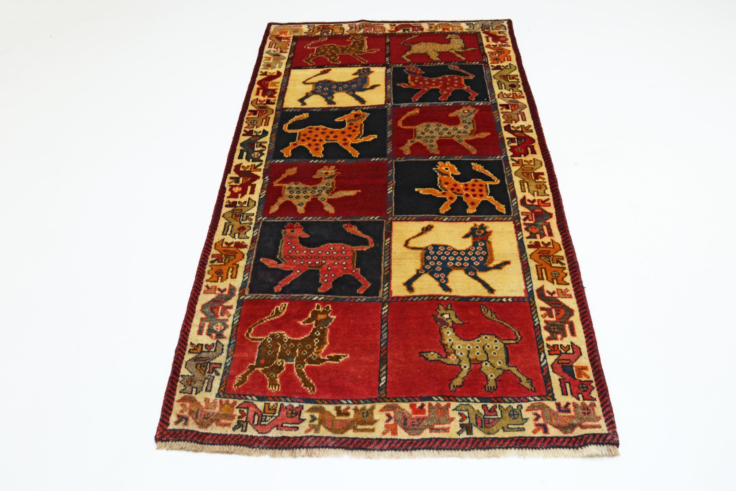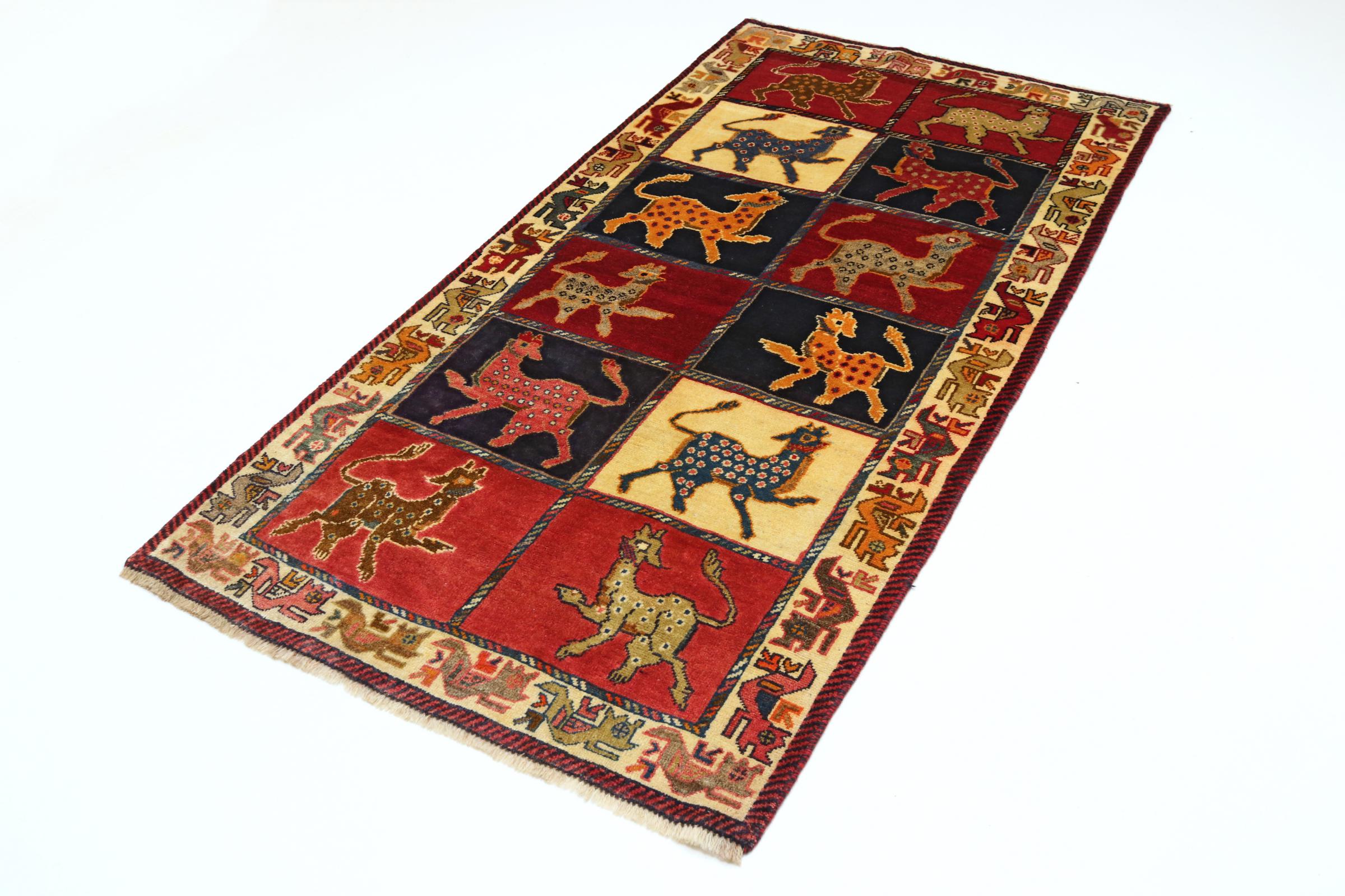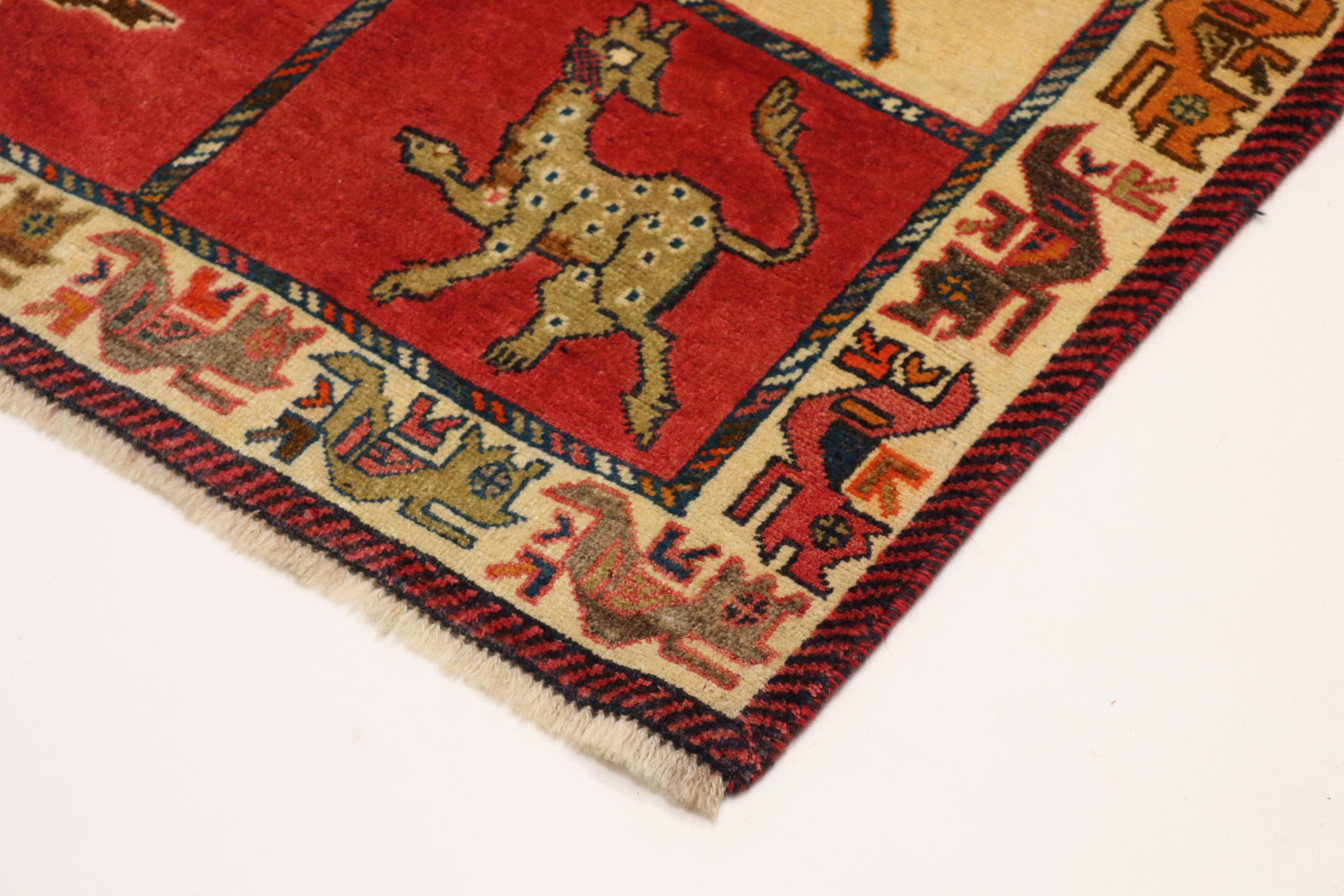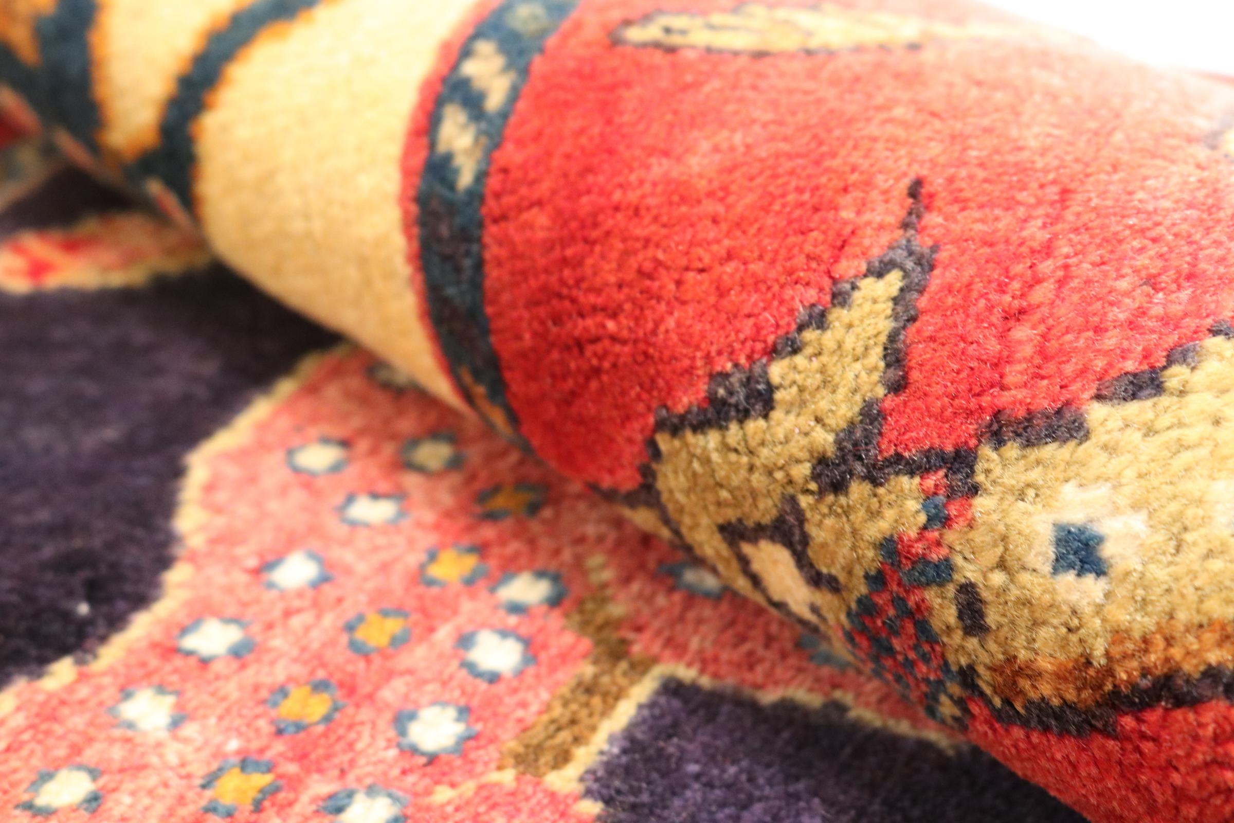 Ce tapis appartient aux tapis de village et de nomade d'Iran, anciennement la Perse. Ce type de tapis est noué à la main dans les petites villes et les villages selon l'ancienne tradition. Même les nomades nouent encore des tapis persans en plein air. Les tapis sont noués sans schéma et entièrement à partir de la tête. Ils se caractérisent par des ornements classiques, qui sont disposés en motifs droits et géométriques. Grâce à leur origine culturelle et traditionnelle, ces tapis ont un caractère unique qui incarne la Perse ancienne.