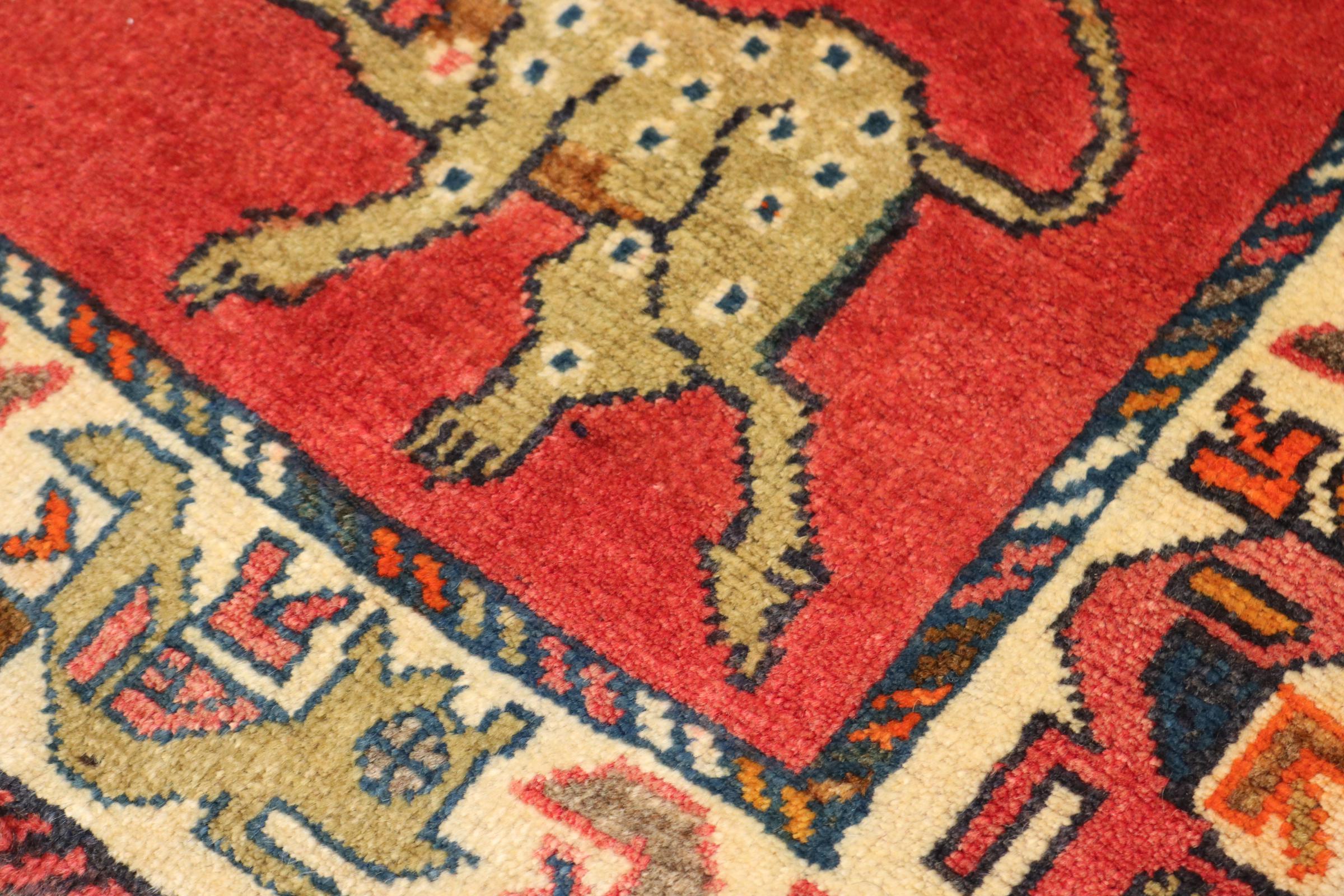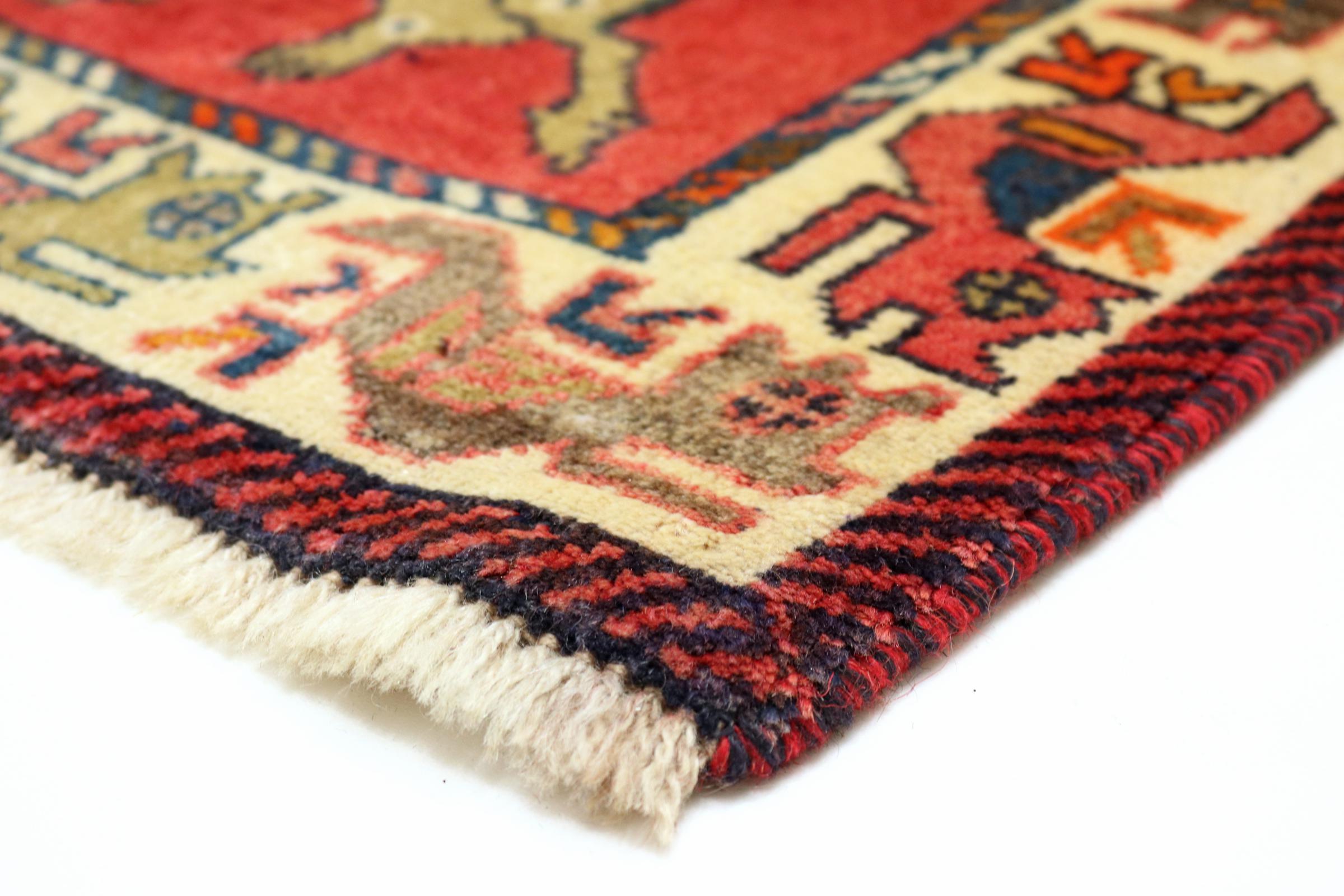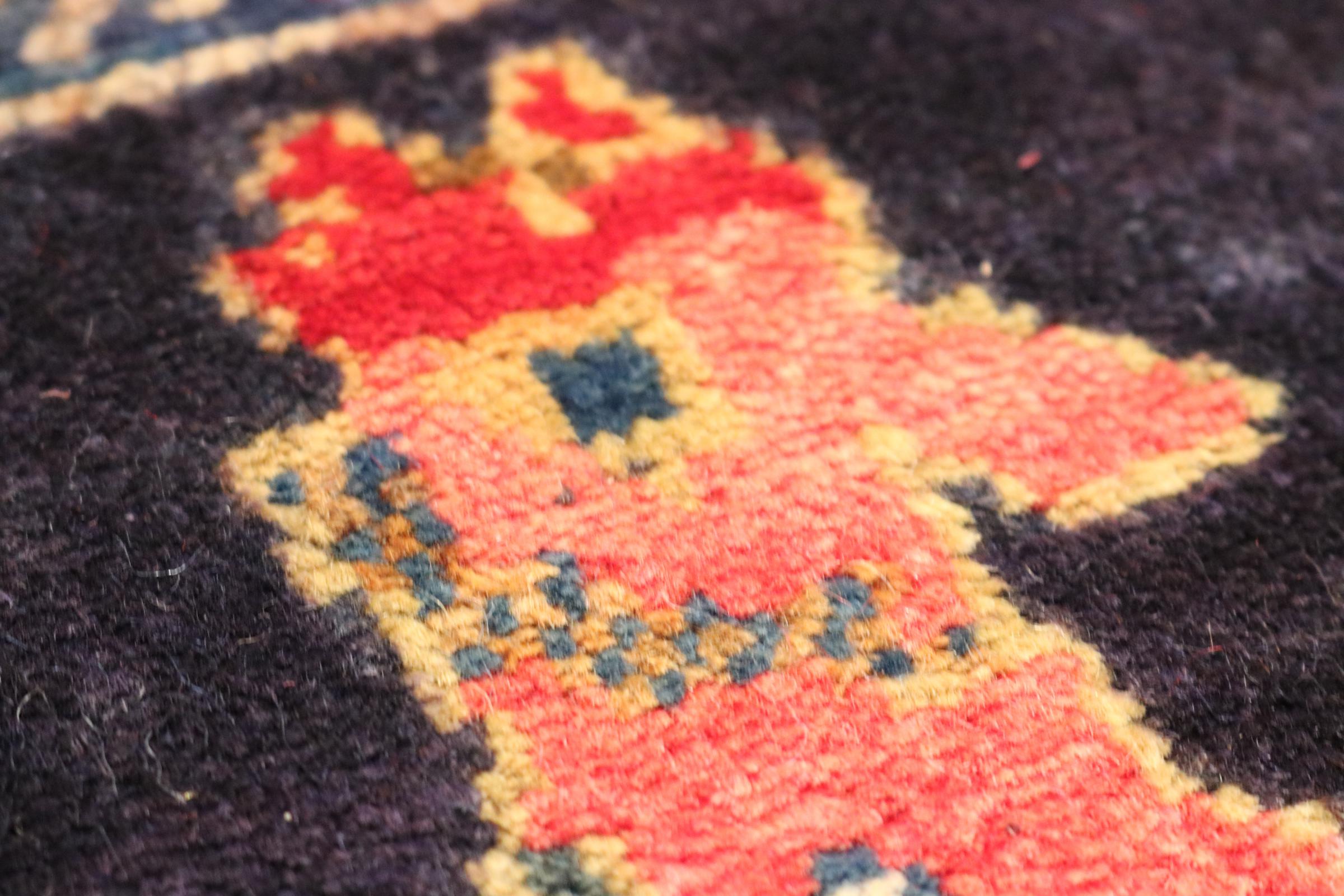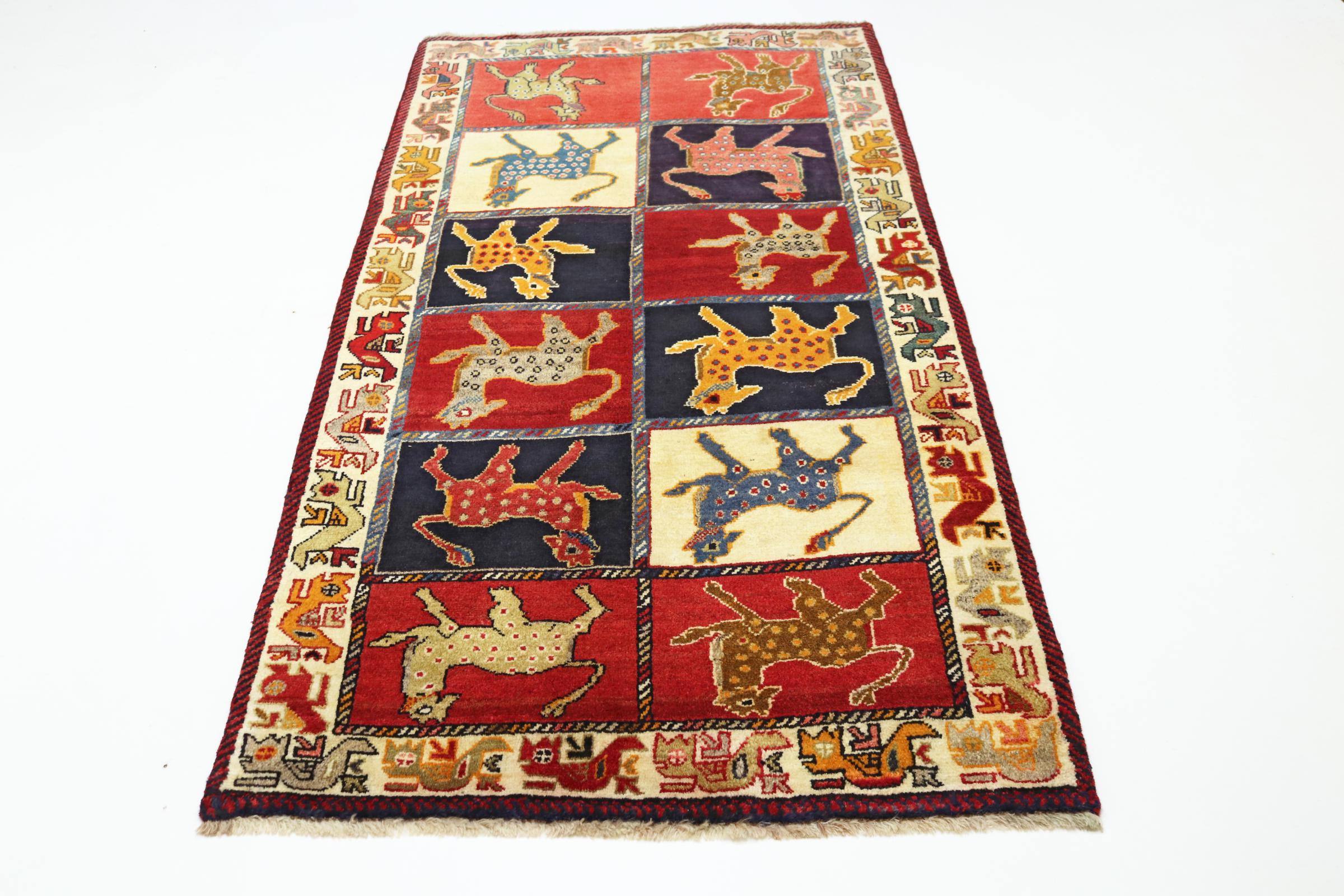 Ce tapis appartient aux tapis de village et de nomade d'Iran, anciennement la Perse. Ce type de tapis est noué à la main dans les petites villes et les villages selon l'ancienne tradition. Même les nomades nouent encore des tapis persans en plein air. Les tapis sont noués sans schéma et entièrement à partir de la tête. Ils se caractérisent par des ornements classiques, qui sont disposés en motifs droits et géométriques. Grâce à leur origine culturelle et traditionnelle, ces tapis ont un caractère unique qui incarne la Perse ancienne.