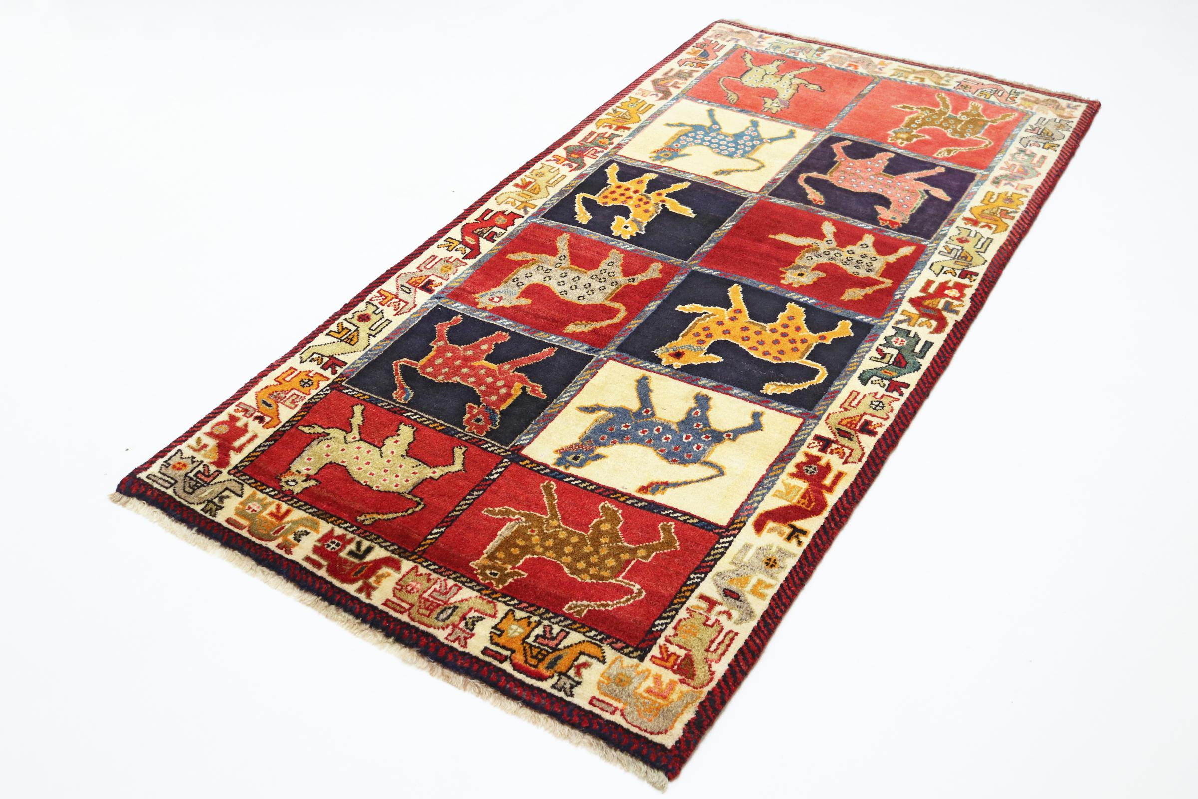 Réf. Article: 55245009730619 Taille: 195x95 cm Épaisseur: ap. 12 mm Densité de nouage: 160 000 - 200 000 / m² Fabrication: Noué à la main Velours: Laine filée à la main Chaîne: Coton Origine: Persie / Iran Âge: Nouveau Poids: ap. 6 kg Également connu sous Qashqai, Gaschgai, Gashghai, Kashgai Nombre en stock: Unique