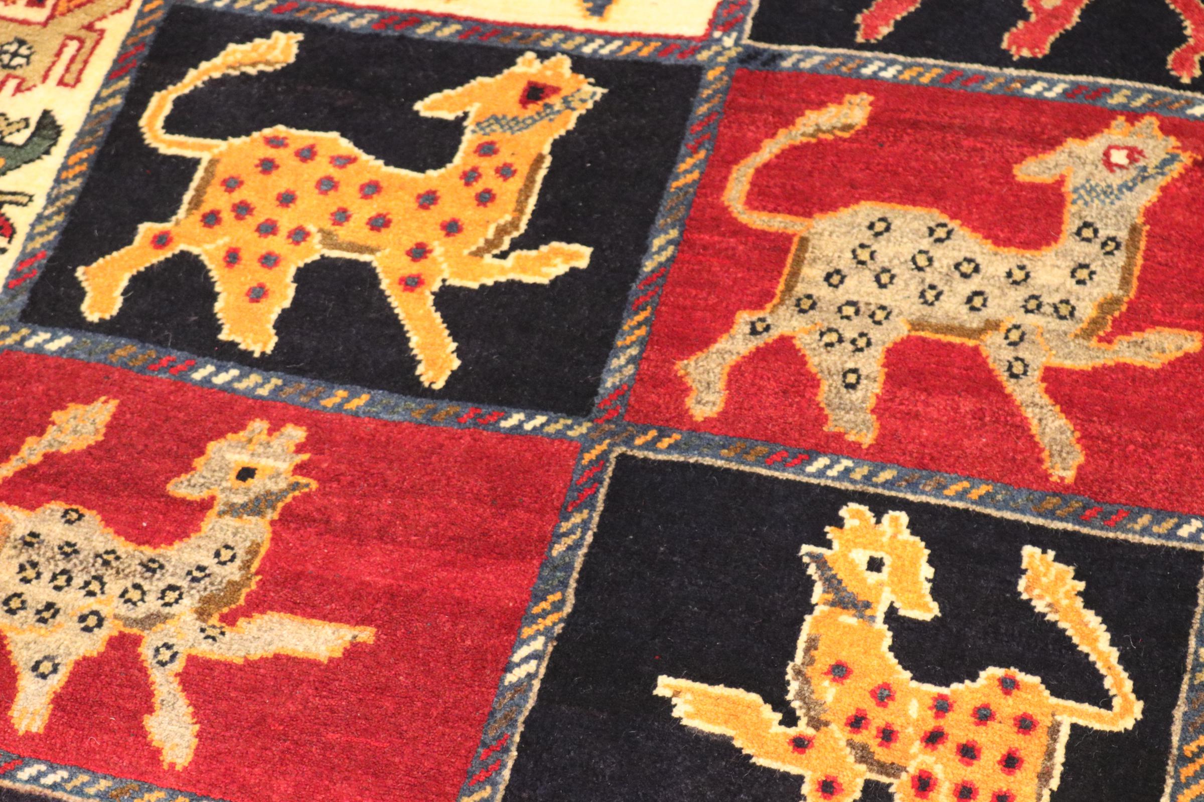 Ce tapis Qashqai attire immédiatement l’attention. Ces couleurs et motifs reflètent la vie des nomades Qashqai d’Iran, qui vivent près de la ville de Shiraz. Laissez une pièce de la culture Iranienne entrer chez vous.