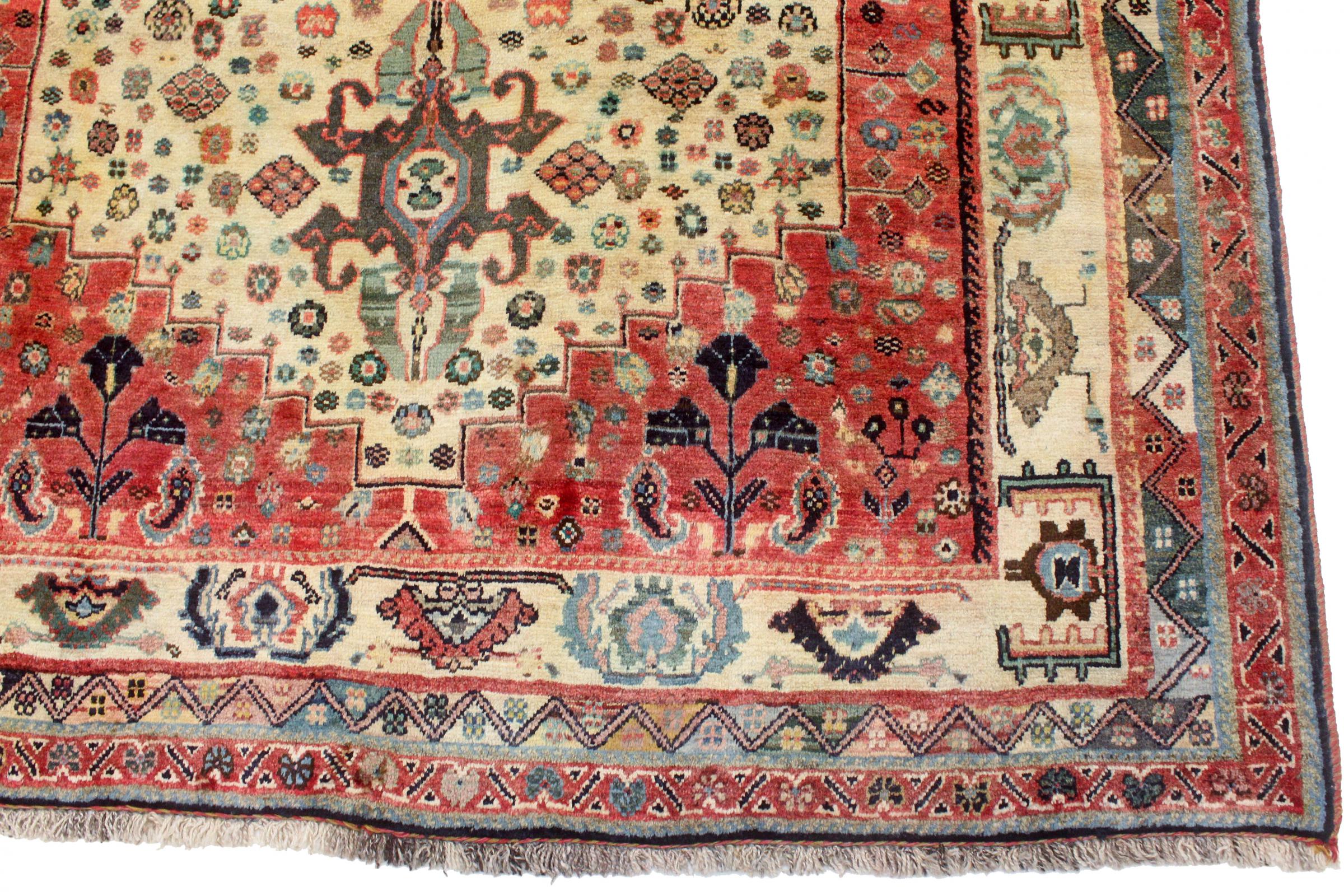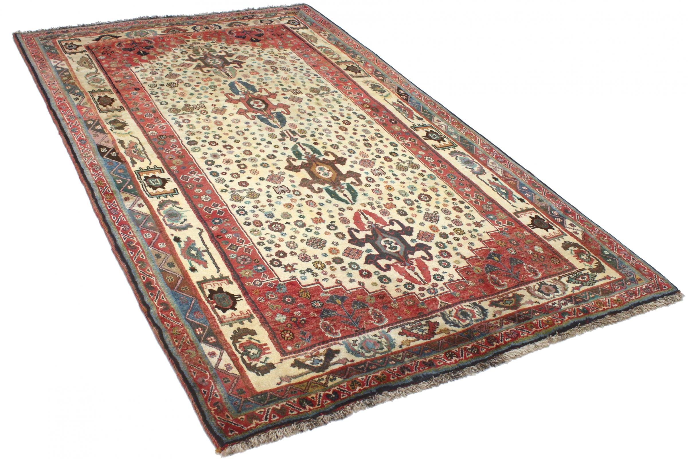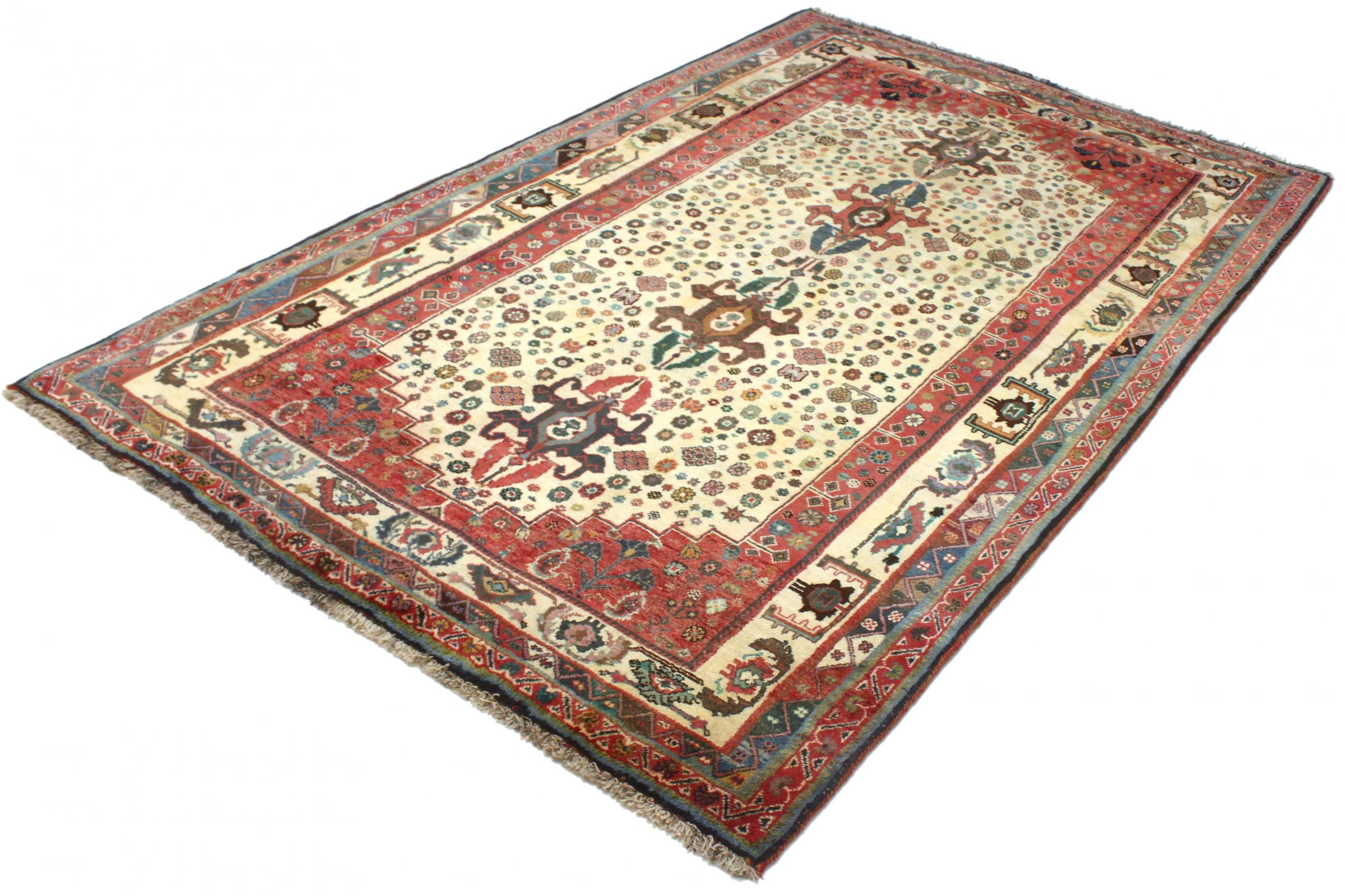 Ce tapis appartient aux tapis de village et de nomade d'Iran, anciennement la Perse. Ce type de tapis est noué à la main dans les petites villes et les villages selon l'ancienne tradition. Même les nomades nouent encore des tapis persans en plein air. Les tapis sont noués sans schéma et entièrement à partir de la tête. Ils se caractérisent par des ornements classiques, qui sont disposés en motifs droits et géométriques. Grâce à leur origine culturelle et traditionnelle, ces tapis ont un caractère unique qui incarne la Perse ancienne.
