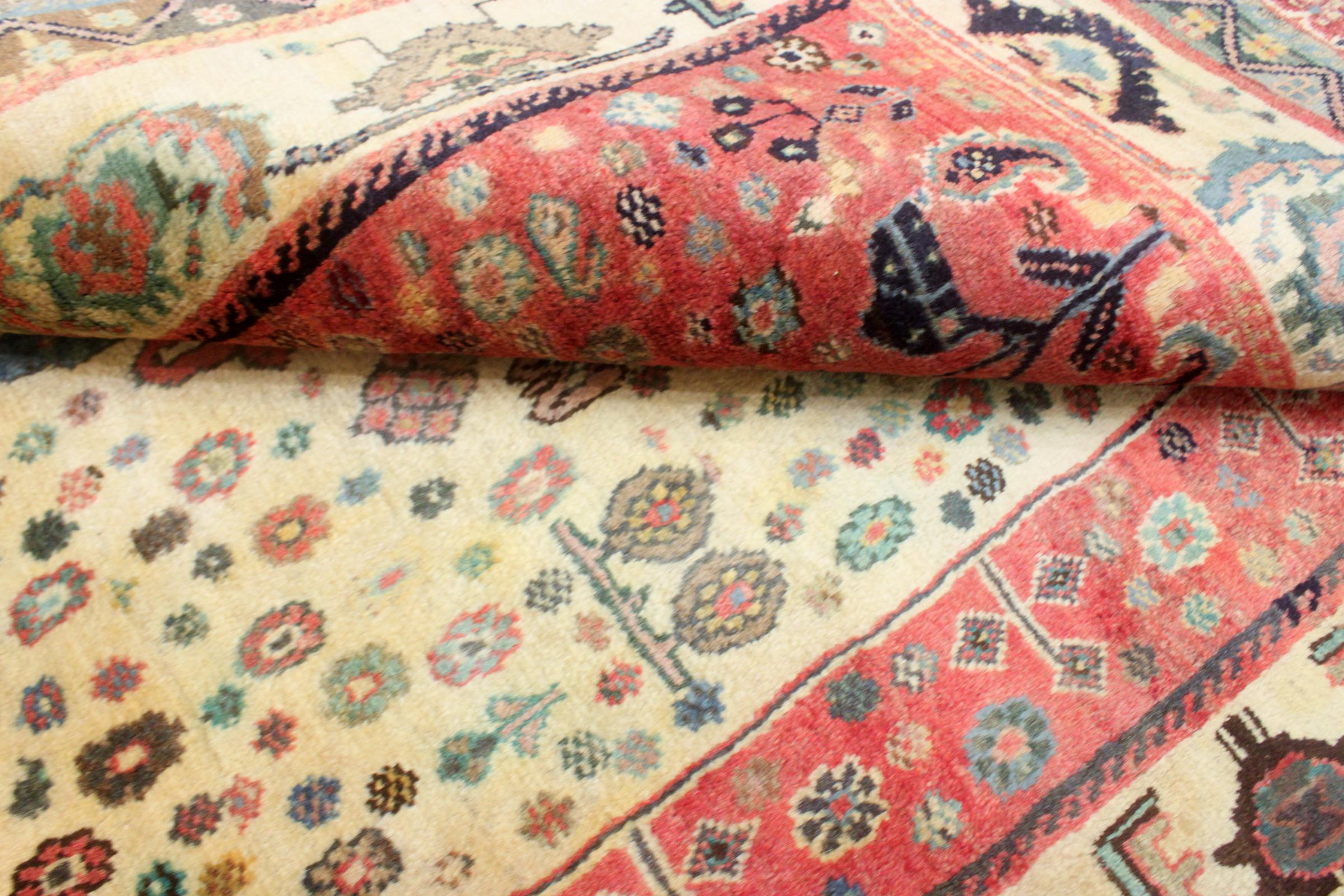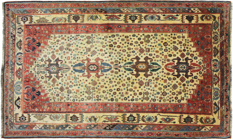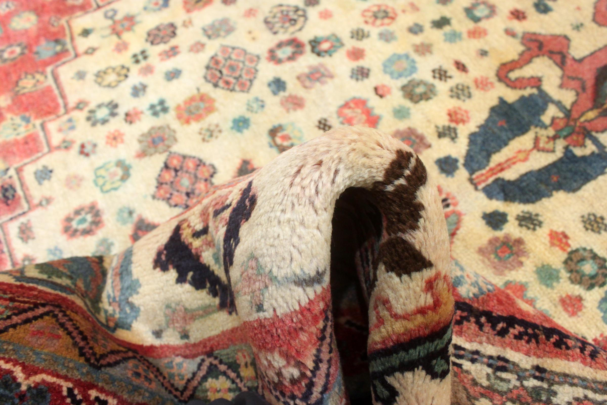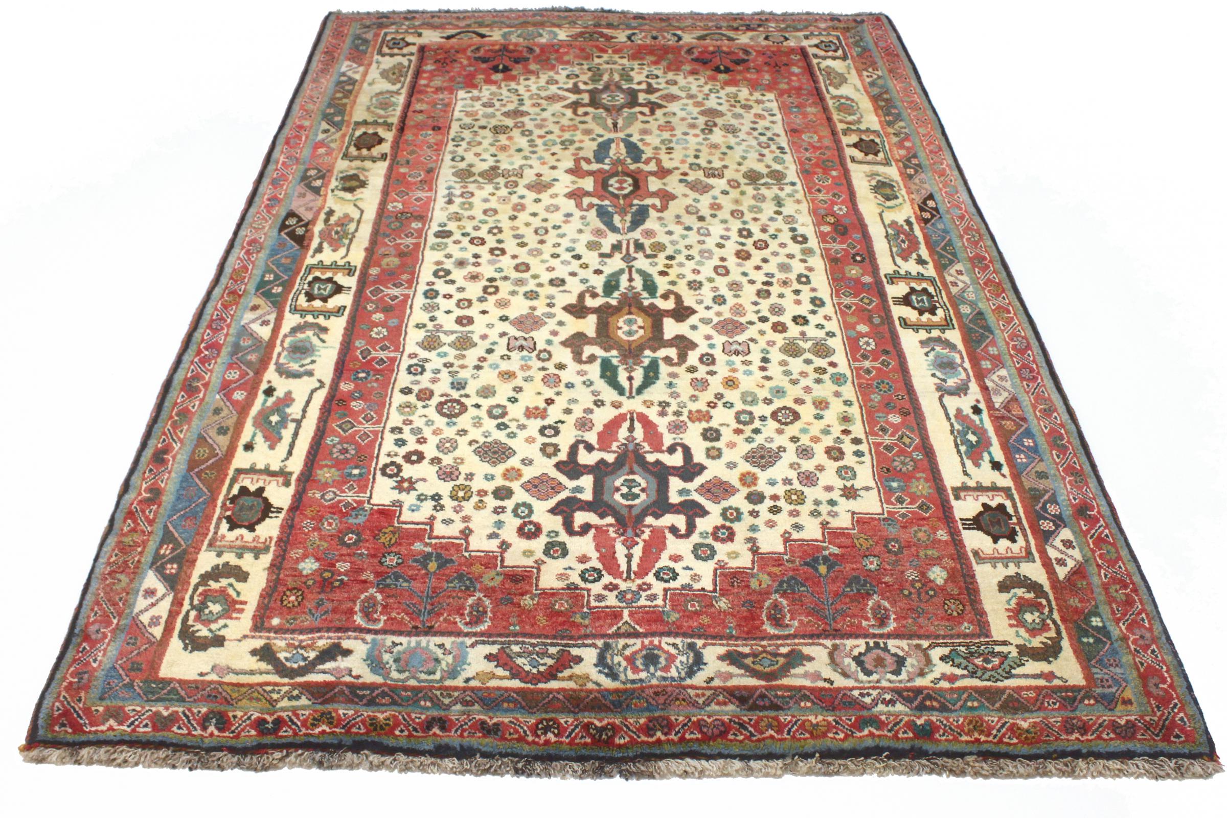 Ce tapis appartient aux tapis de village et de nomade d'Iran, anciennement la Perse. Ce type de tapis est noué à la main dans les petites villes et les villages selon l'ancienne tradition. Même les nomades nouent encore des tapis persans en plein air. Les tapis sont noués sans schéma et entièrement à partir de la tête. Ils se caractérisent par des ornements classiques, qui sont disposés en motifs droits et géométriques. Grâce à leur origine culturelle et traditionnelle, ces tapis ont un caractère unique qui incarne la Perse ancienne.