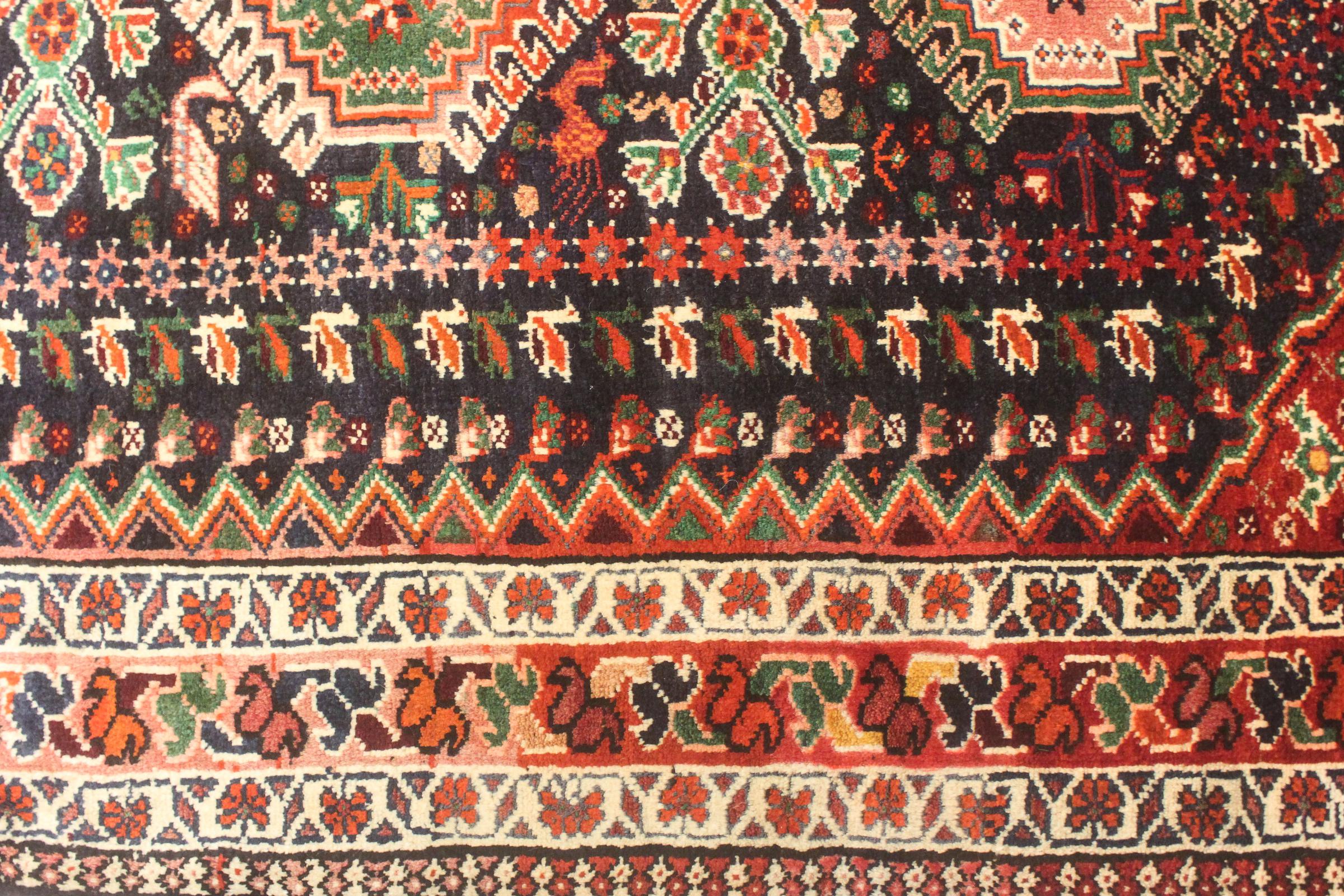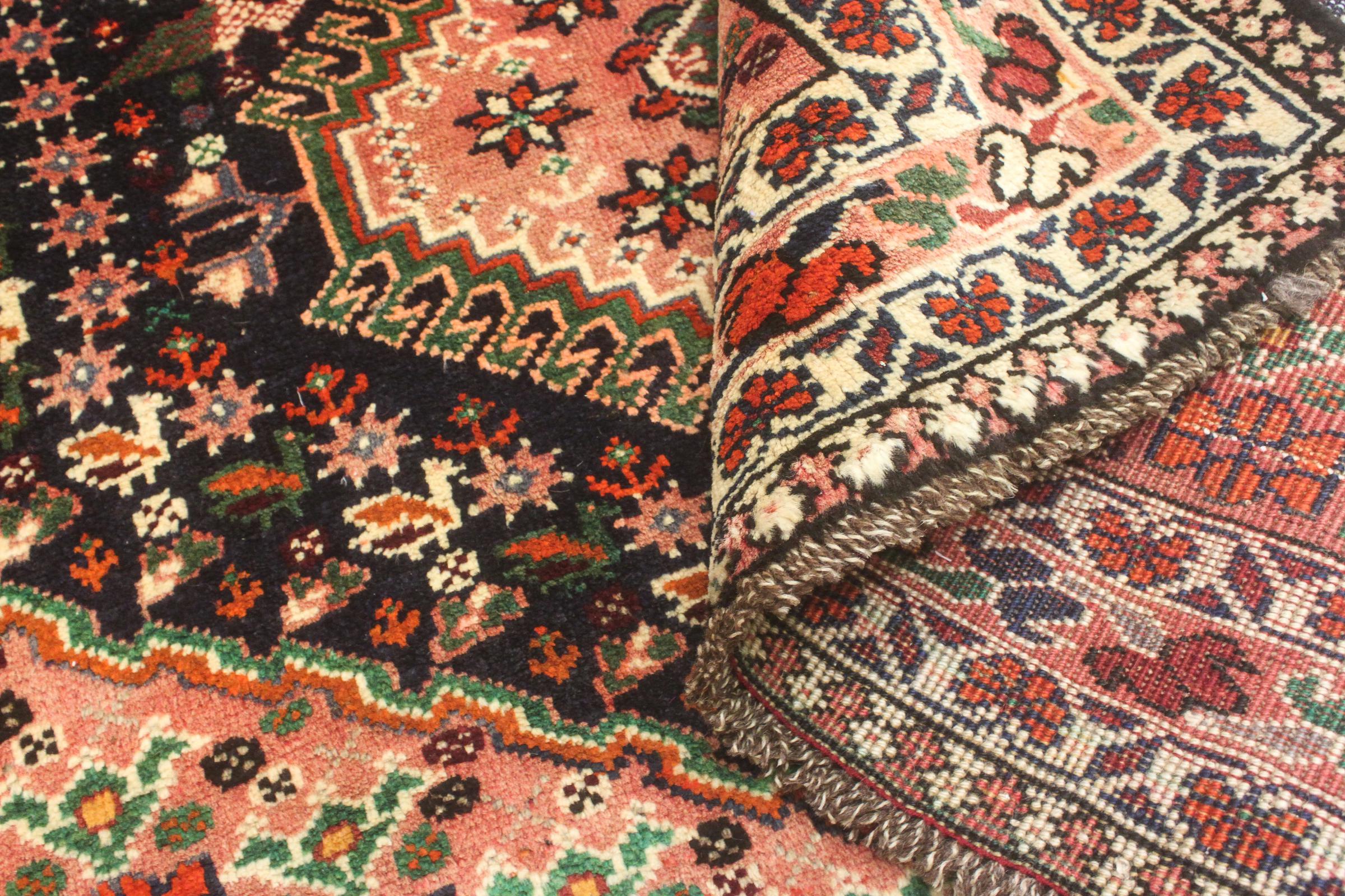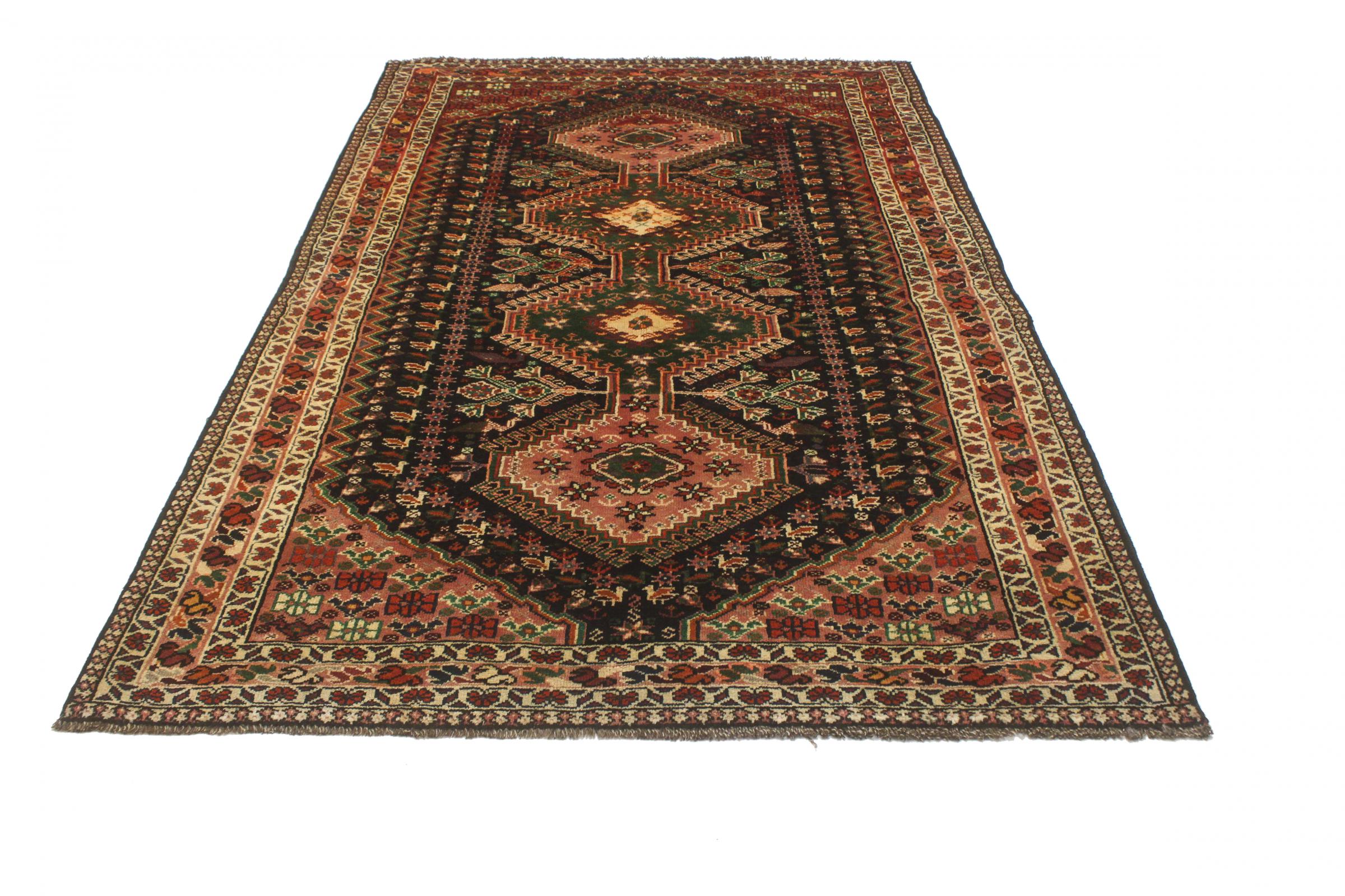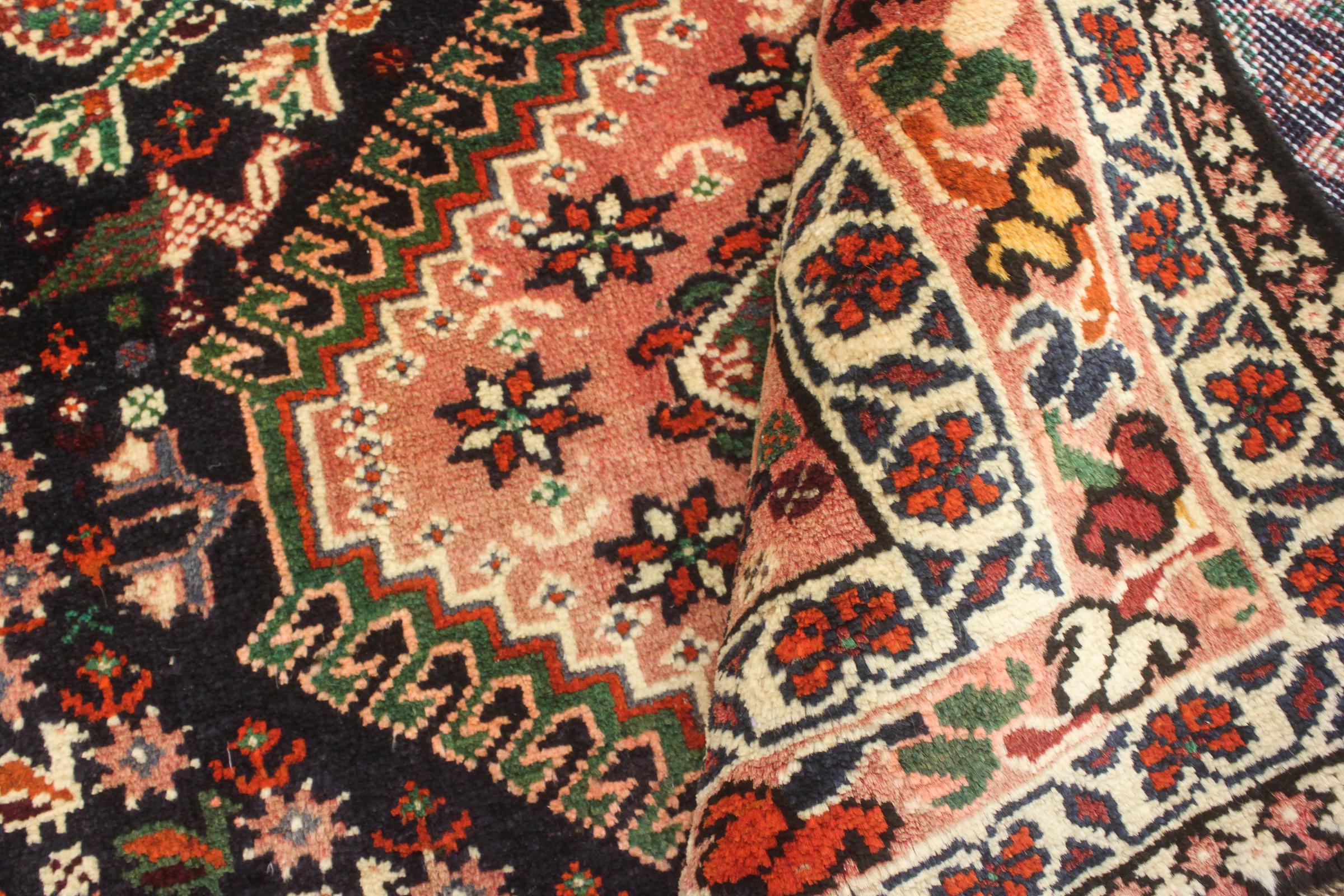 Ce tapis appartient aux tapis de village et de nomade d'Iran, anciennement la Perse. Ce type de tapis est noué à la main dans les petites villes et les villages selon l'ancienne tradition. Même les nomades nouent encore des tapis persans en plein air. Les tapis sont noués sans schéma et entièrement à partir de la tête. Ils se caractérisent par des ornements classiques, qui sont disposés en motifs droits et géométriques. Grâce à leur origine culturelle et traditionnelle, ces tapis ont un caractère unique qui incarne la Perse ancienne.
