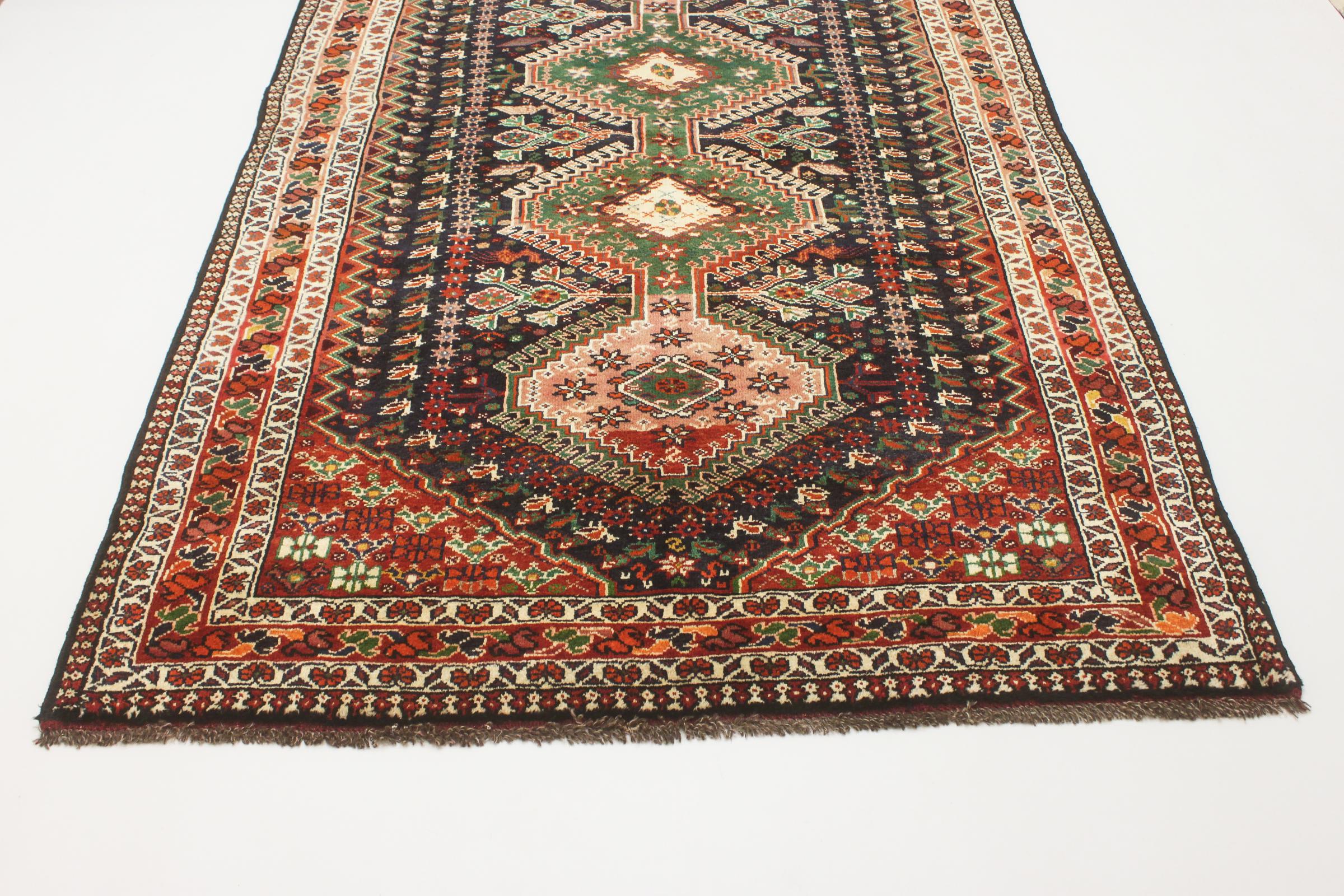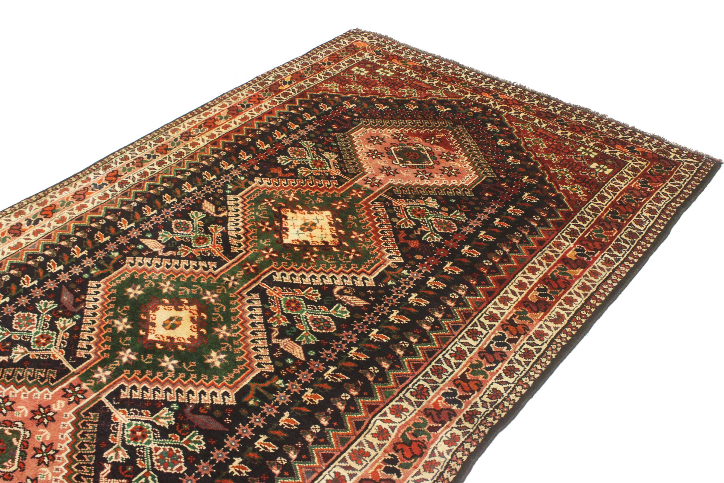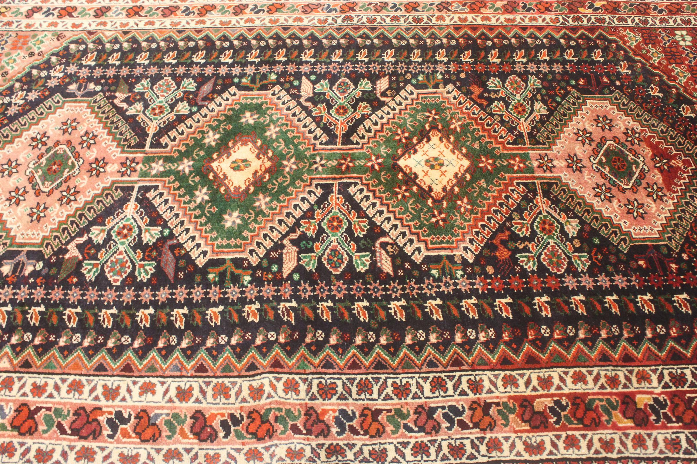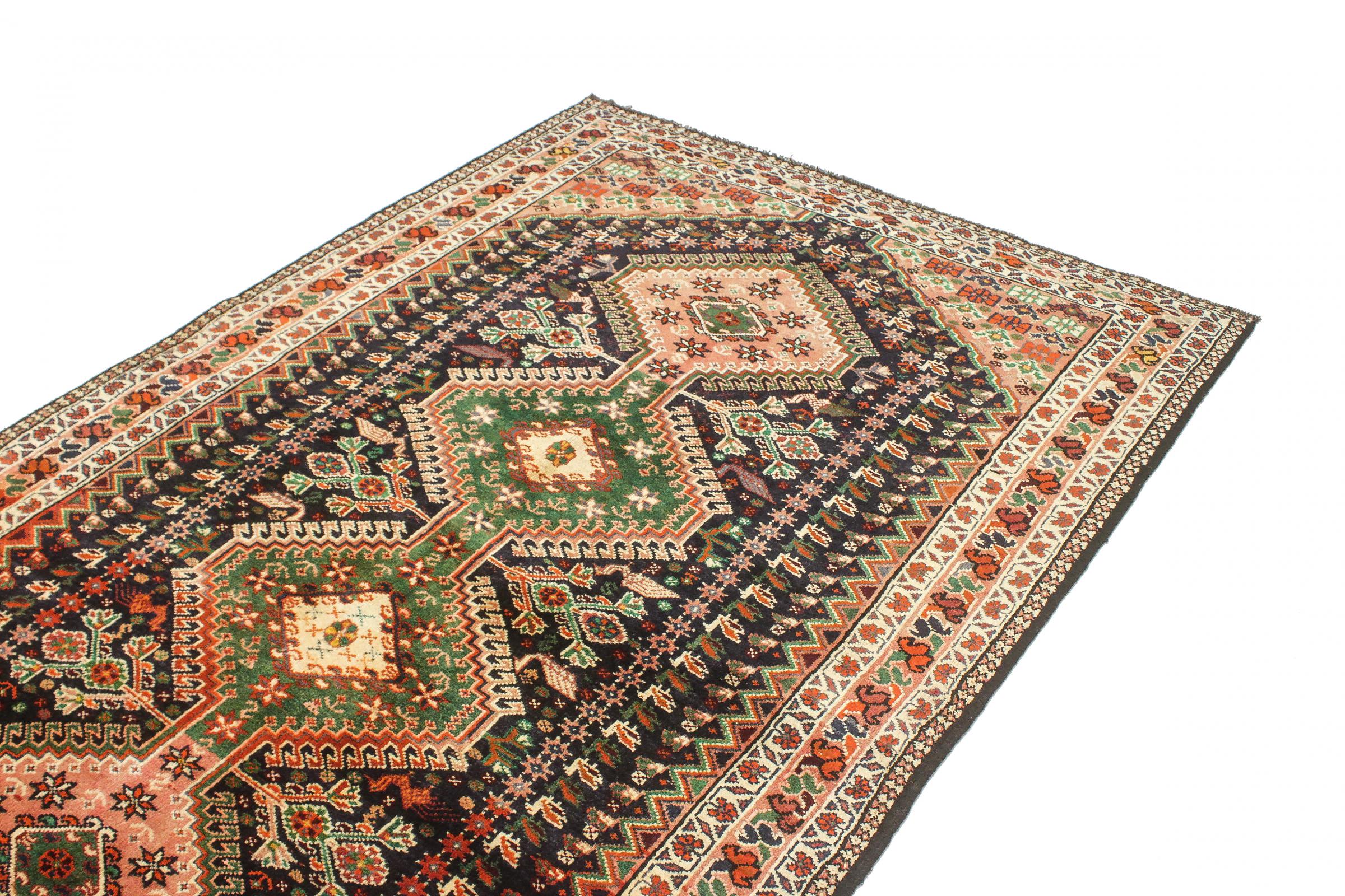 Ce tapis Qashqai attire immédiatement l’attention. Ces couleurs et motifs reflètent la vie des nomades Qashqai d’Iran, qui vivent près de la ville de Shiraz. Laissez une pièce de la culture Iranienne entrer chez vous.