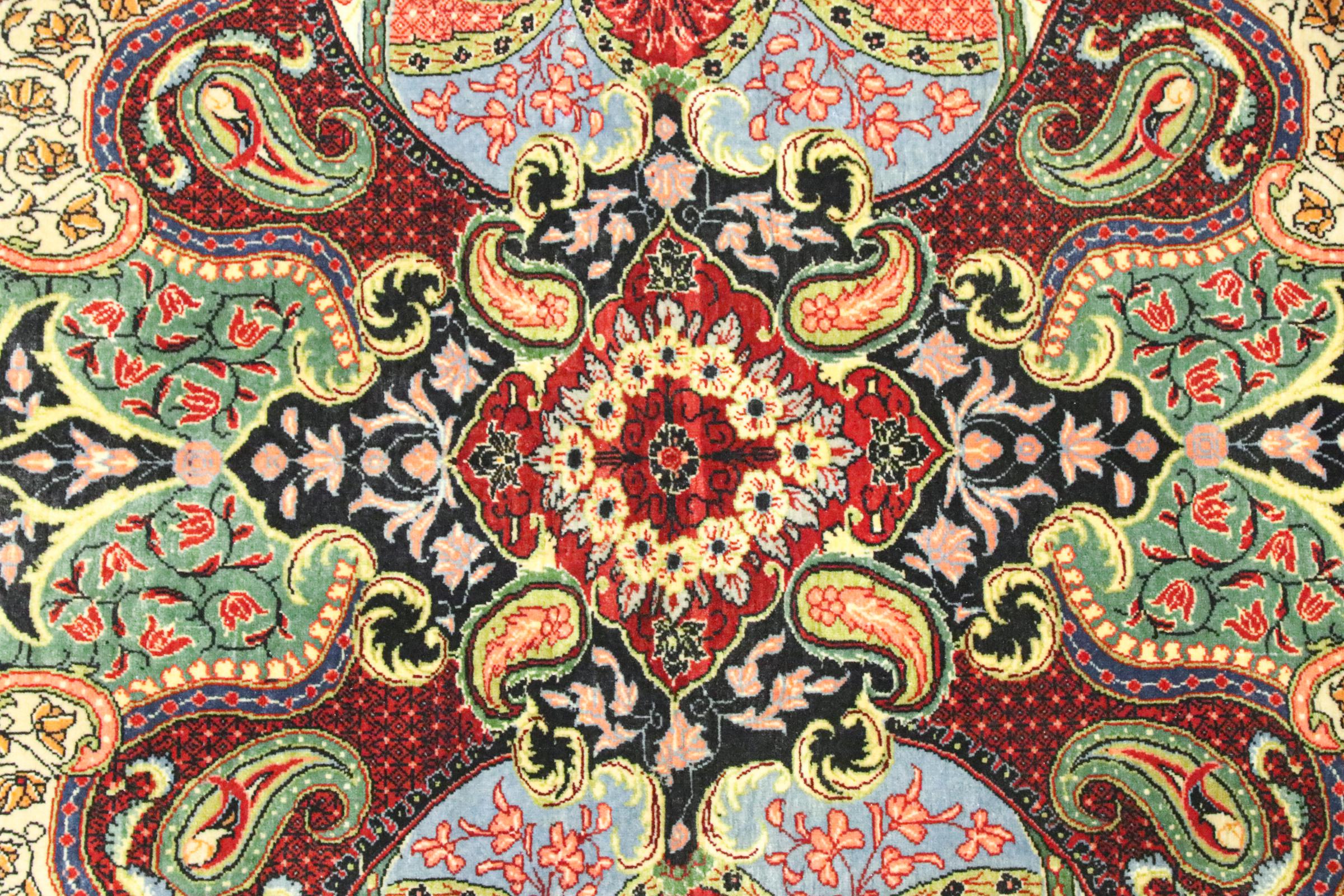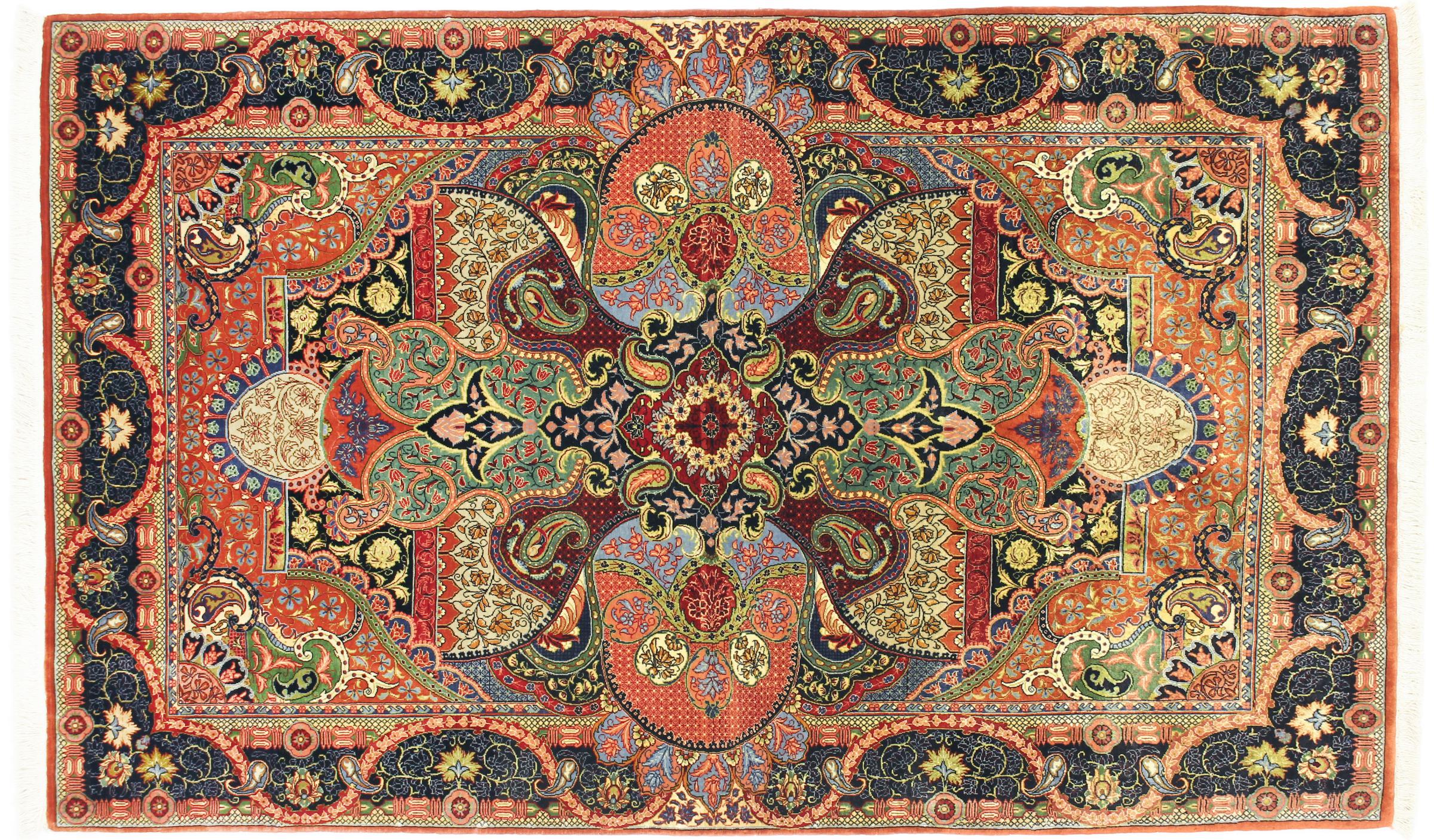 Ce tapis vient d'Iran (anciennement Perse) et, en tant que tapis persan, il jouit probablement de la plus haute réputation parmi tous les types de tapis noués à la main. Aucune autre région n'a une aussi longue tradition de nouage de tapis que l'Iran. C'est donc ici que viennent les tapis probablement les plus fins et les plus élaborés. La robustesse, la durabilité et la qualité du nœud persan sont encore inégalées aujourd'hui. Les tapis persans sont généralement nommés d'après leur région d'origine. Ainsi, un tapis Nain, un Ghom ainsi qu'un tapis d'Ispahan proviennent de la ville du même nom en Iran.