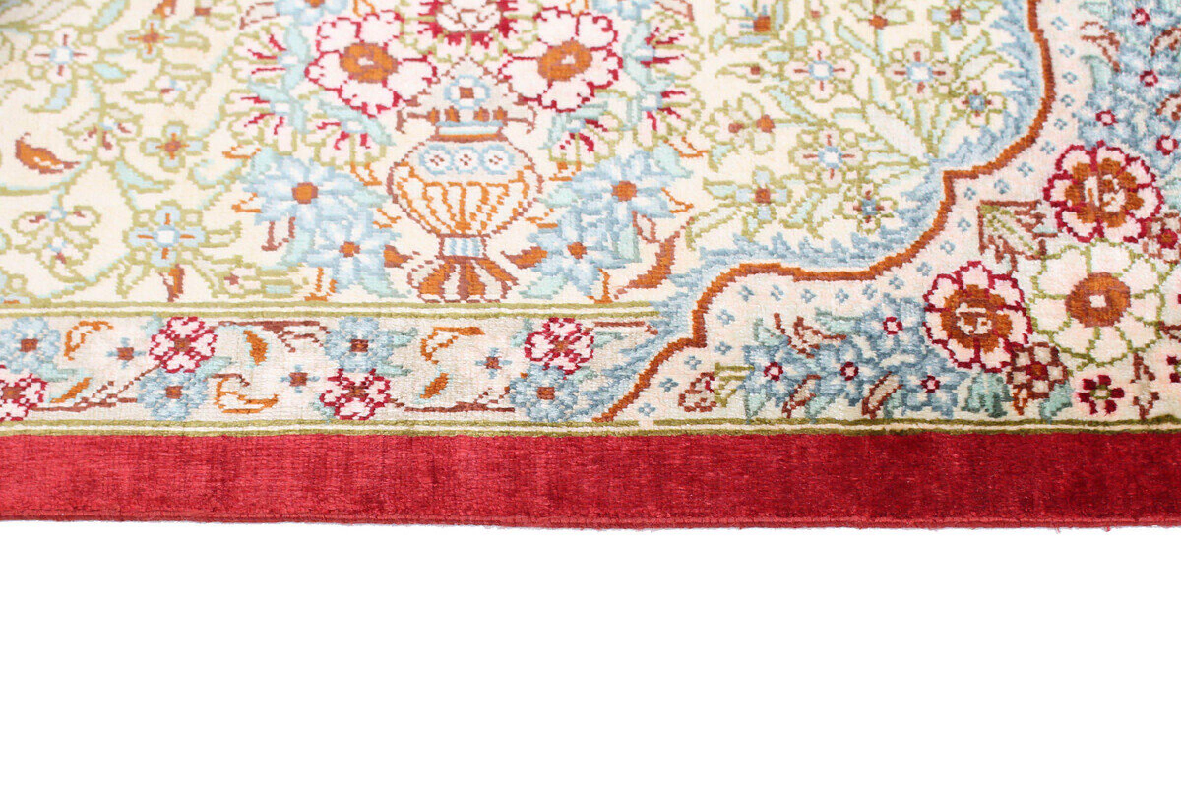 Ce tapis de soie Qom est du pur luxe. Ses motifs et la soie naturelle utilisée parlent d’eux-mêmes. C’est la perfection orientale pour votre maison. Un tapis de soie de Qom convainc les admirateurs de tapis persans. Ce tapis captive immédiatement le regard et fera briller votre intérieur.