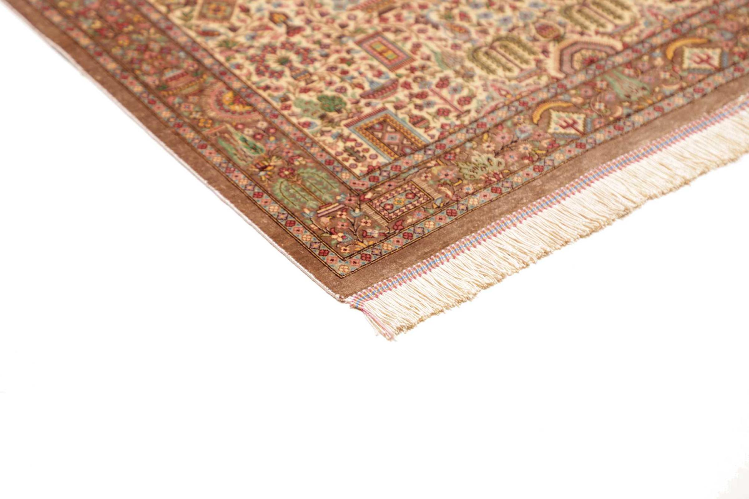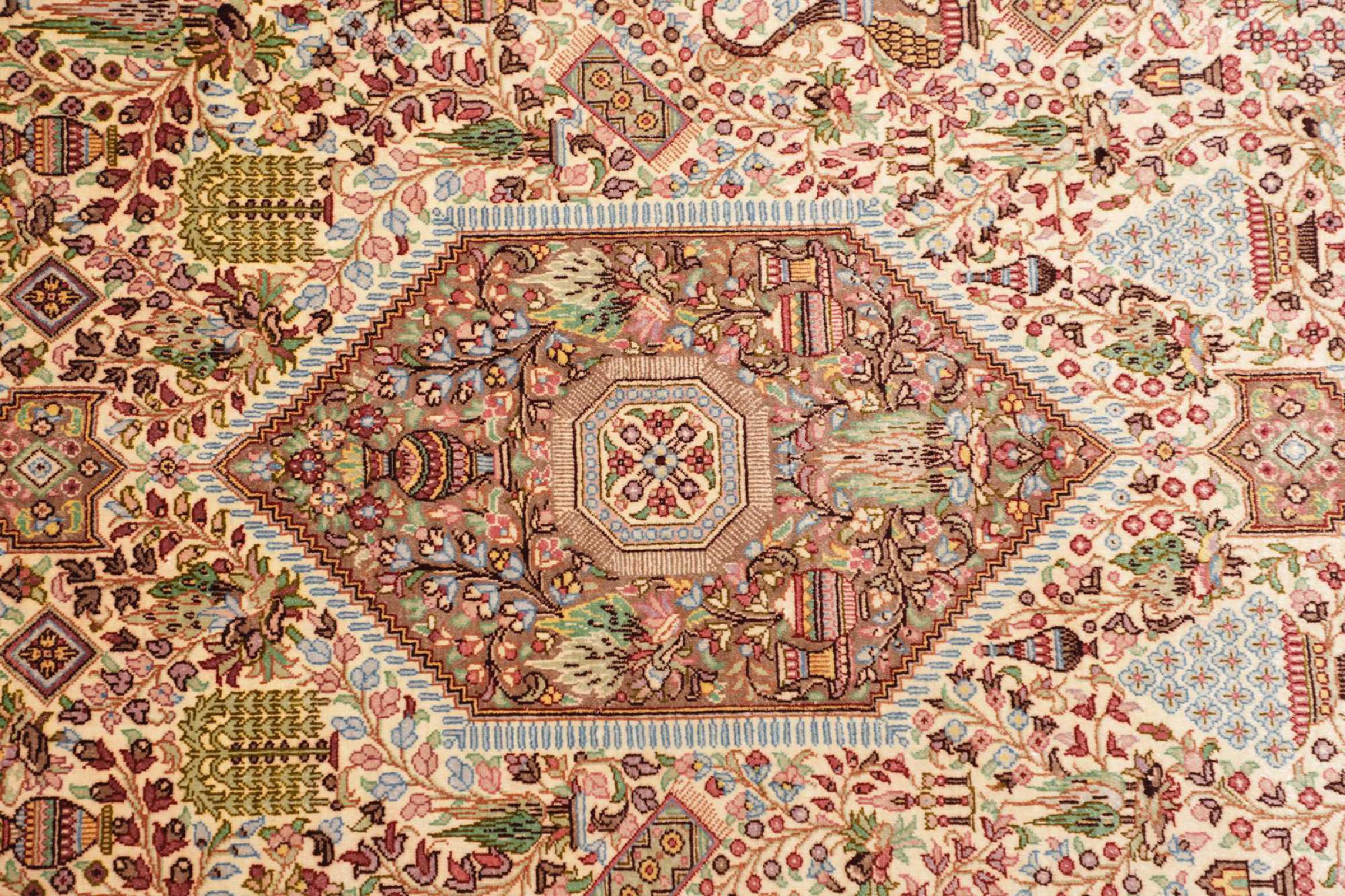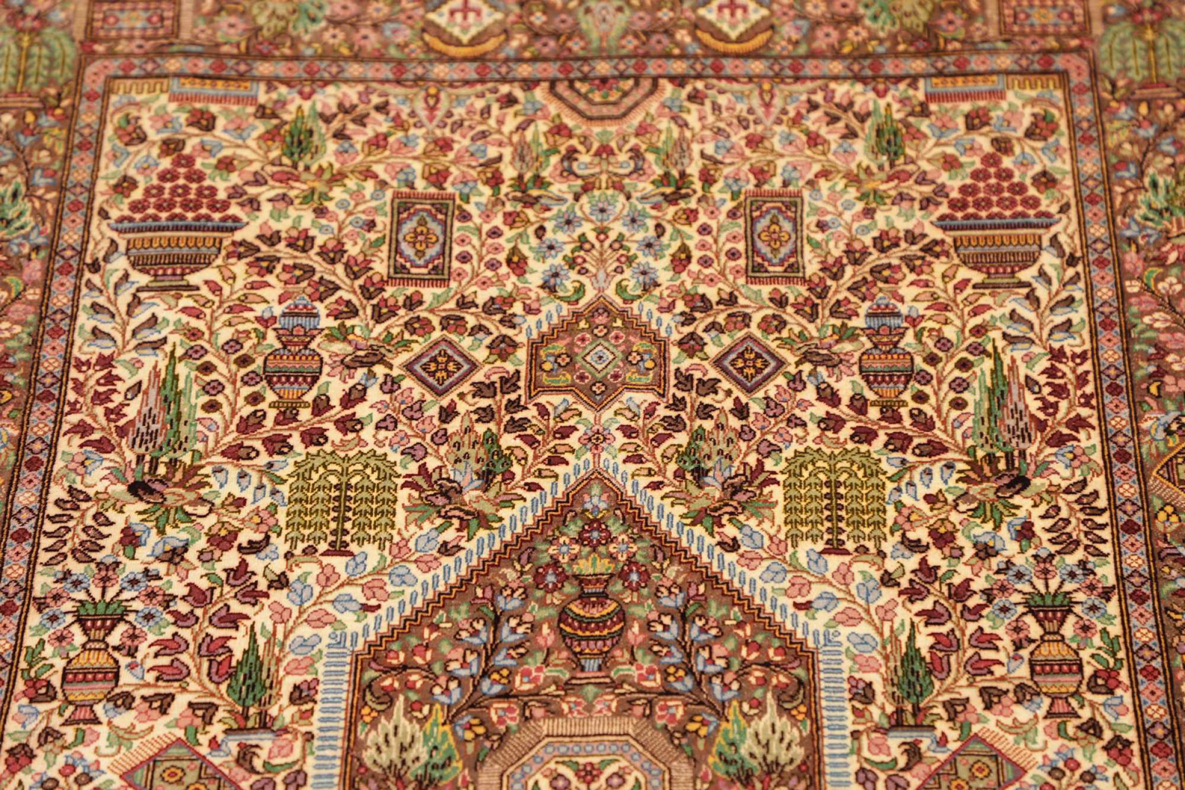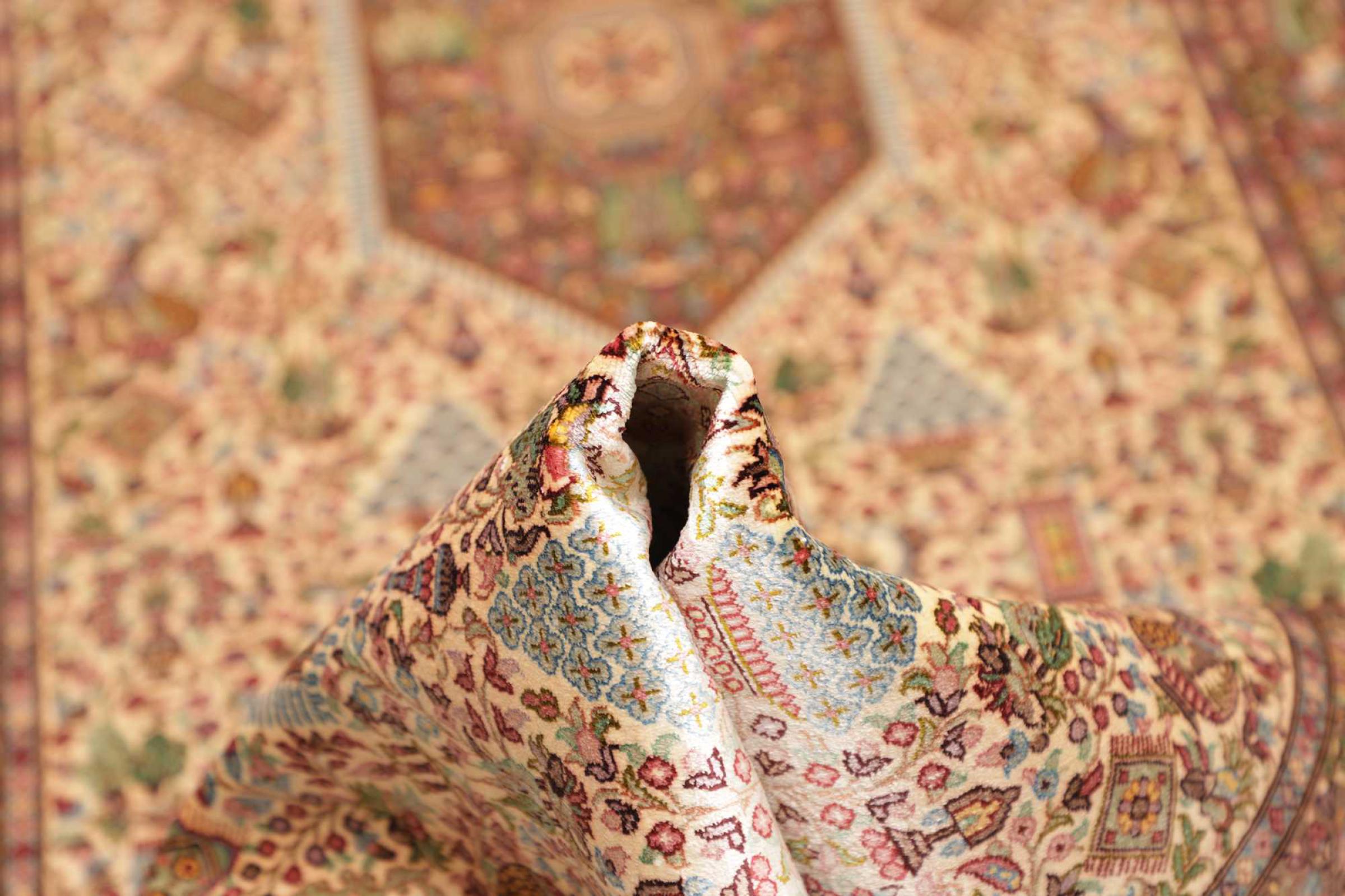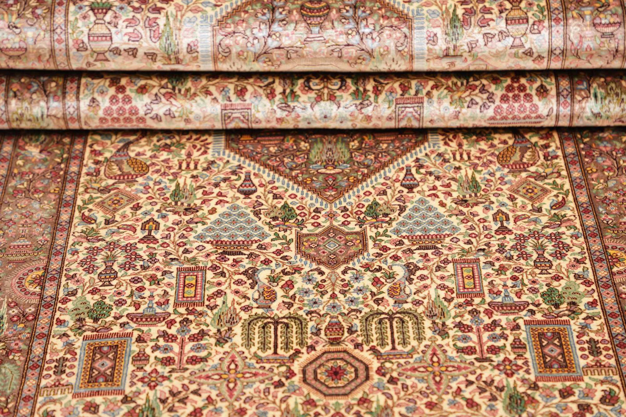 Ce tapis de soie Qom est du pur luxe. Ses motifs et la soie naturelle utilisée parlent d’eux-mêmes. C’est la perfection orientale pour votre maison. Un tapis de soie de Qom convainc les admirateurs de tapis persans. Ce tapis captive immédiatement le regard et fera briller votre intérieur.