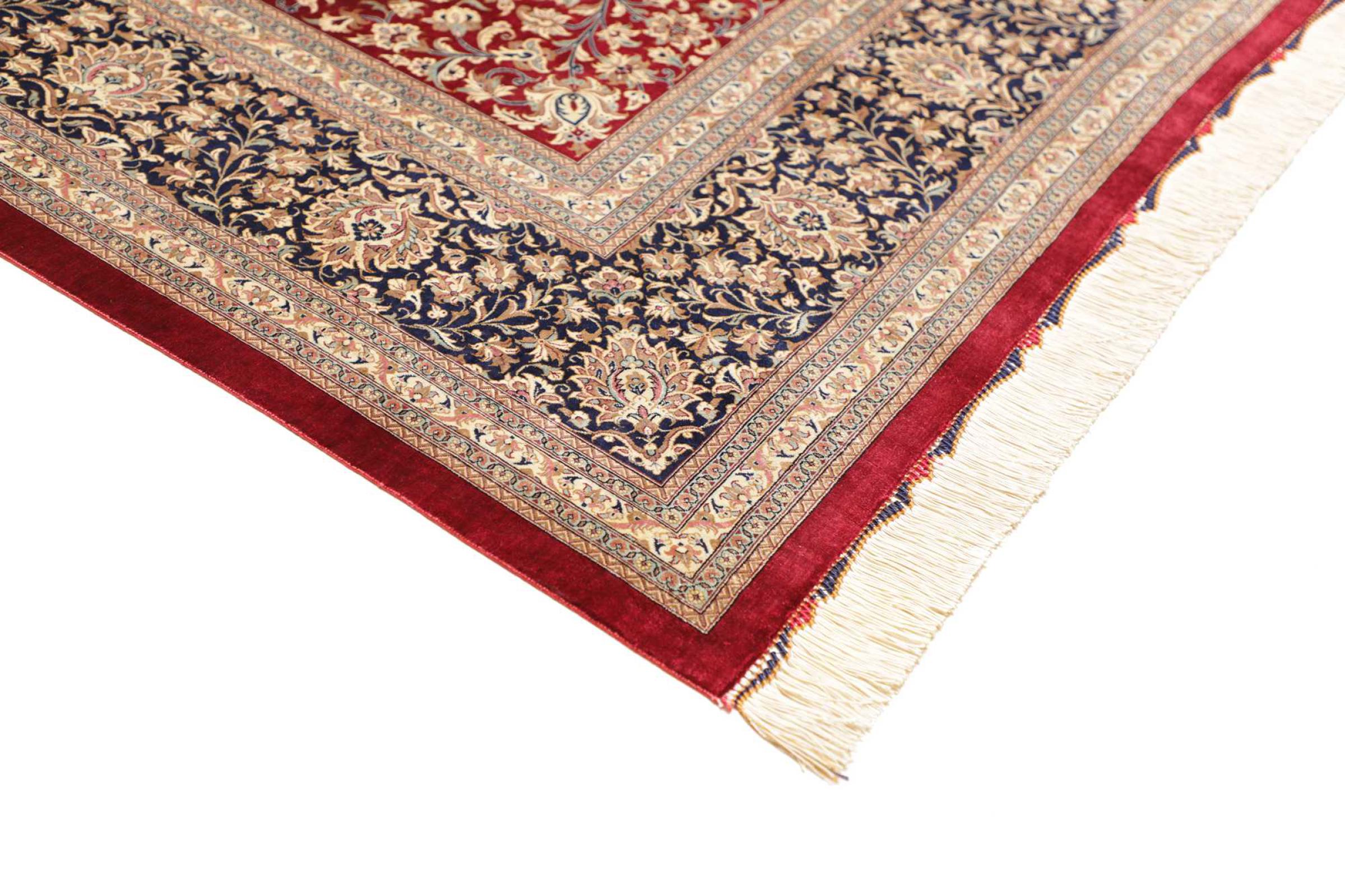 Ce tapis de soie Qom est du pur luxe. Ses motifs et la soie naturelle utilisée parlent d’eux-mêmes. C’est la perfection orientale pour votre maison. Un tapis de soie de Qom convainc les admirateurs de tapis persans. Ce tapis captive immédiatement le regard et fera briller votre intérieur.