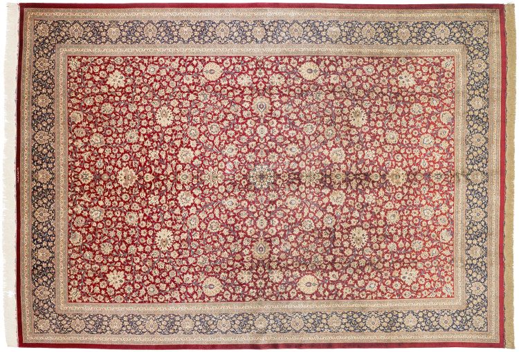 Réf. Article: 247041007185892 Taille: 353x245 cm Épaisseur: ap. 3 mm Densité de nouage: 1 000 000 / m² Fabrication: Noué à la main Velours: Soie Chaîne: Soie Origine: Persie / Iran Âge: Nouveau Poids: ap. 17 kg Nombre en stock: Unique - Seulement 1 en stock