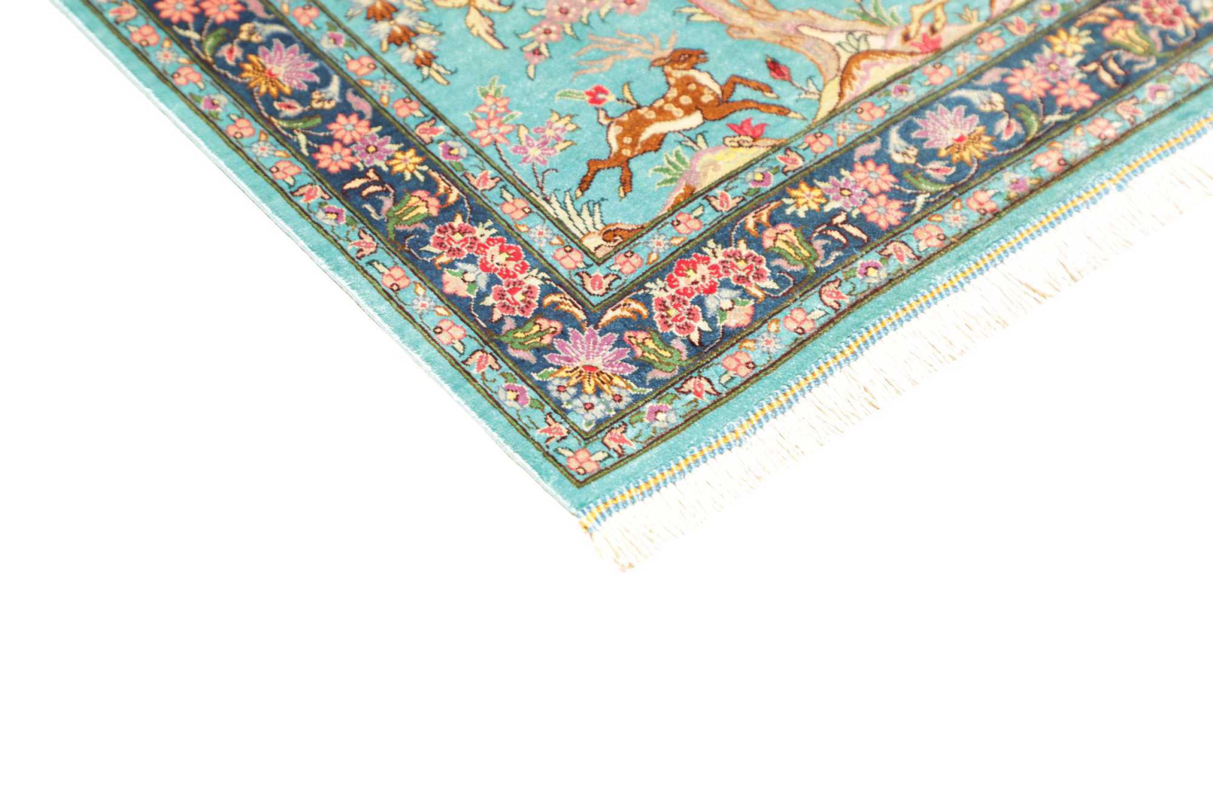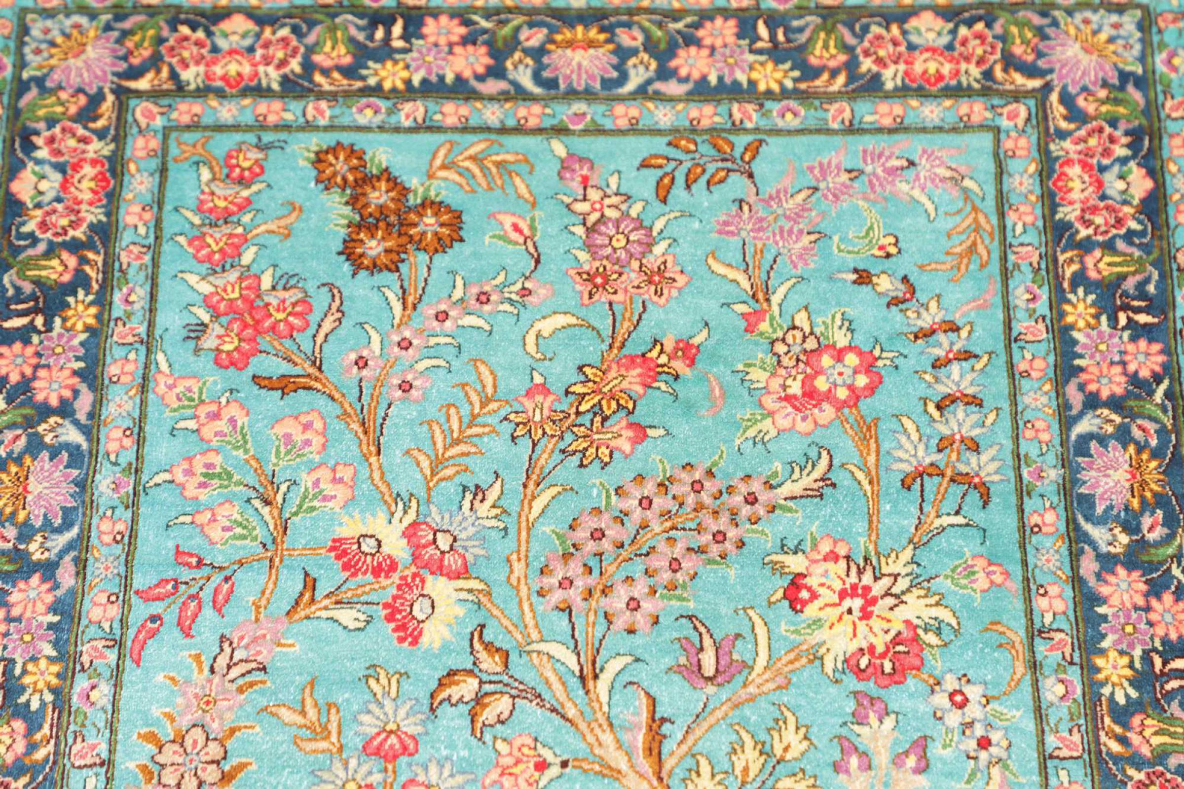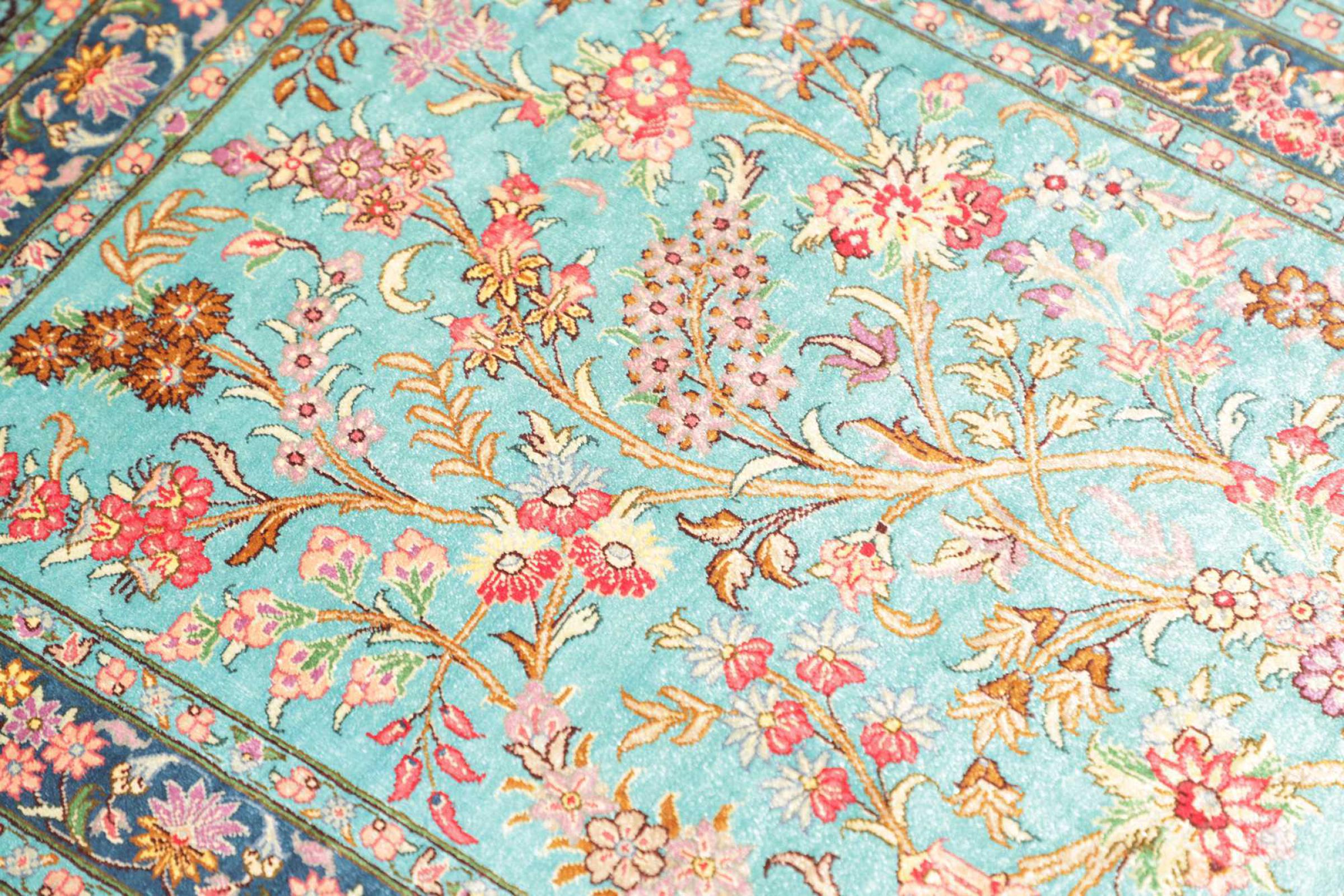 Réf. Article: 306189001369663 Taille: 87x56 cm Épaisseur: ap. 3 mm Densité de nouage: 800 000 / m² Fabrication: Noué à la main Velours: Soie Chaîne: Coton Origine: Persie / Iran Âge: Nouveau Poids: ap. 1 kg Nombre en stock: Unique - Seulement 1 en stock