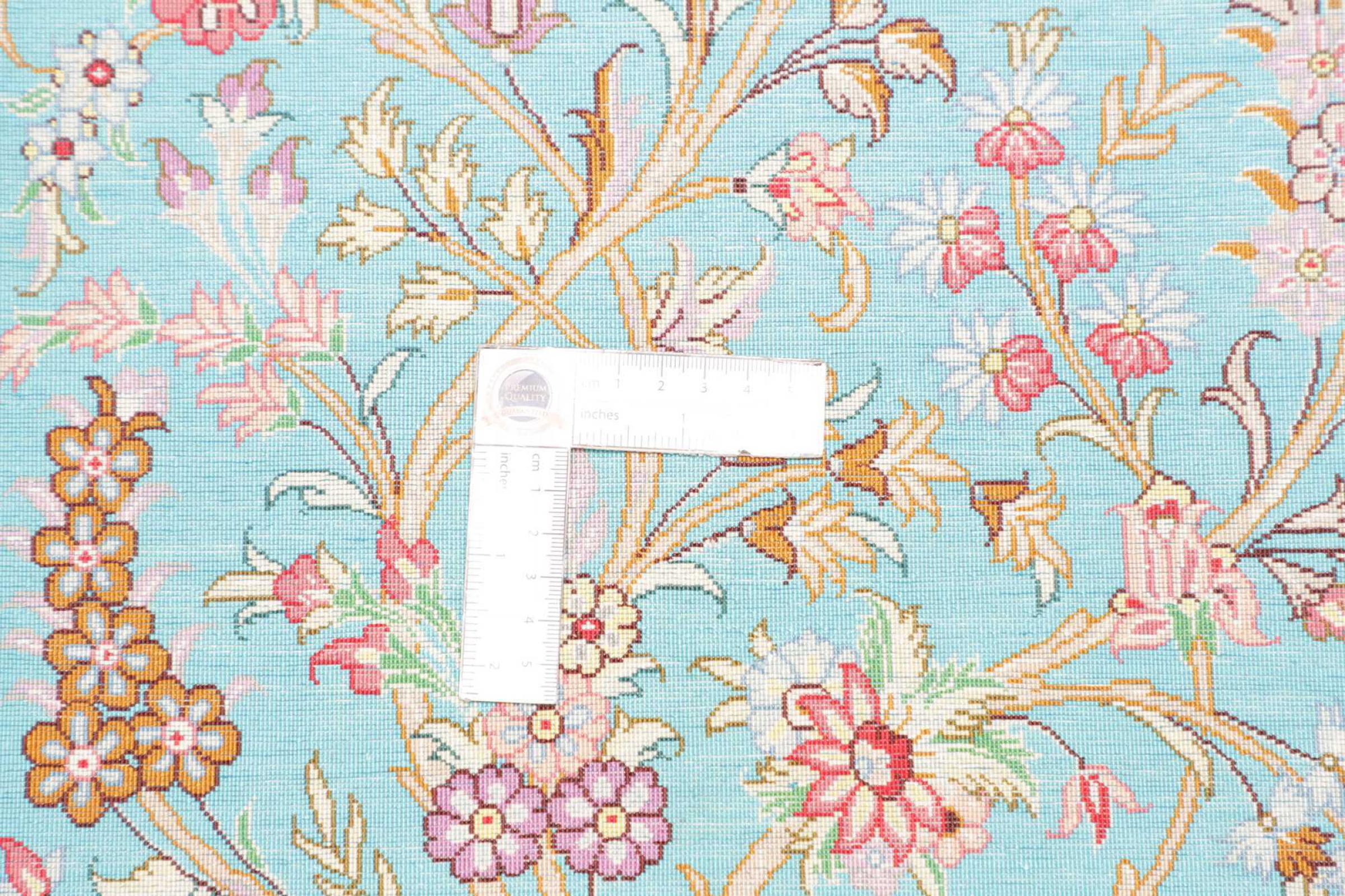 Ce tapis de soie Qom est du pur luxe. Ses motifs et la soie naturelle utilisée parlent d’eux-mêmes. C’est la perfection orientale pour votre maison. Un tapis de soie de Qom convainc les admirateurs de tapis persans. Ce tapis captive immédiatement le regard et fera briller votre intérieur.
