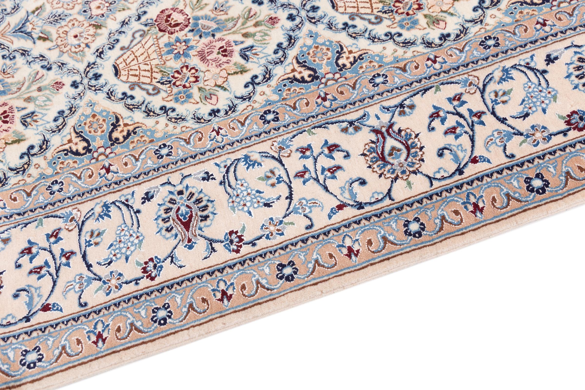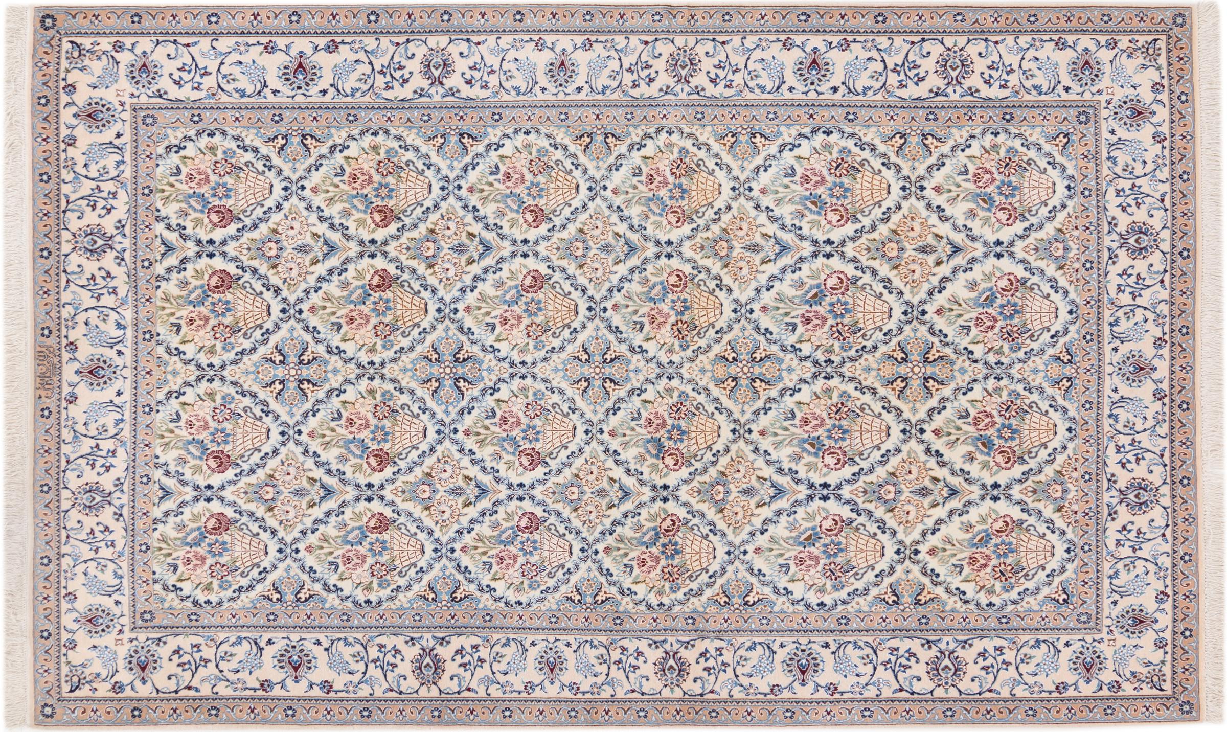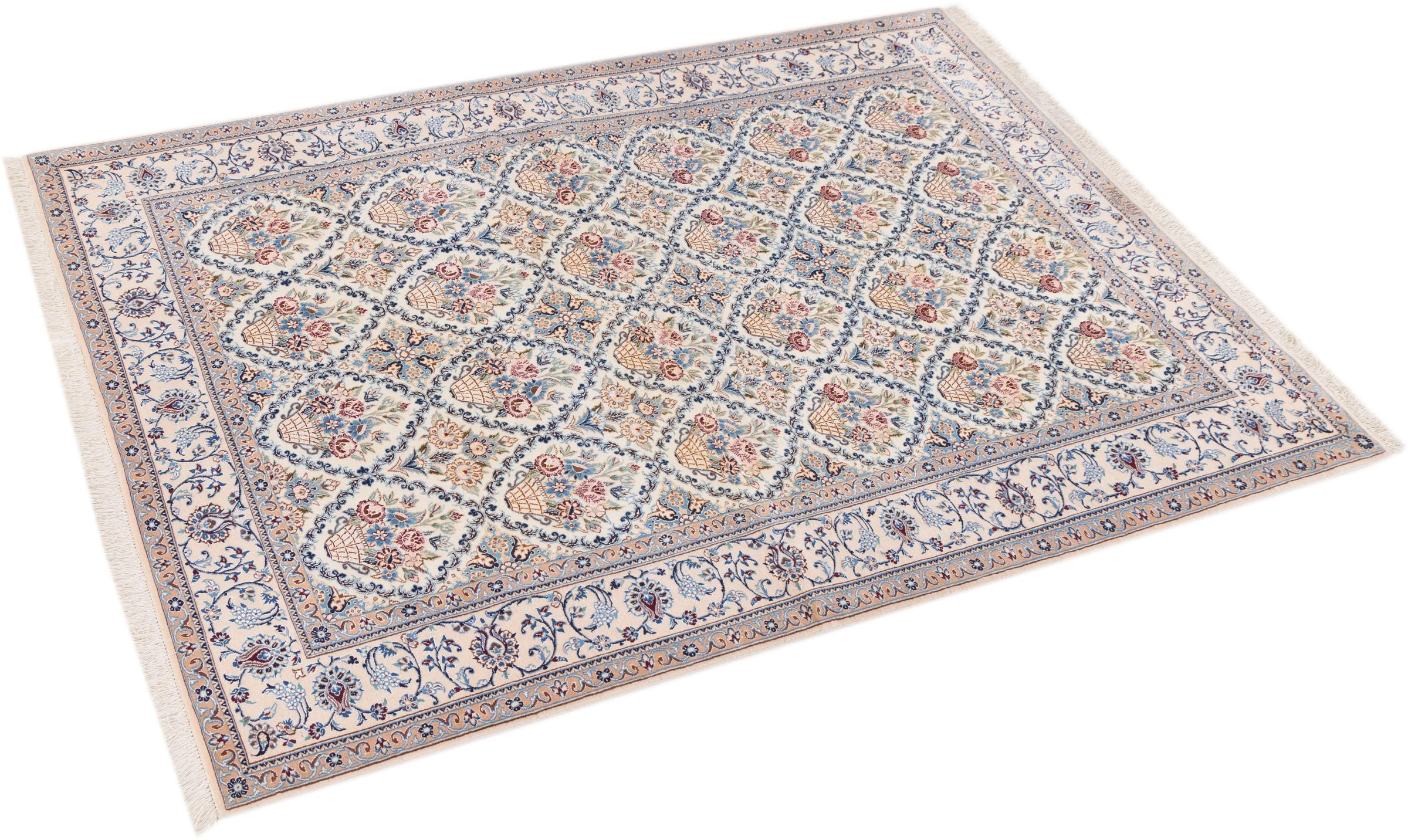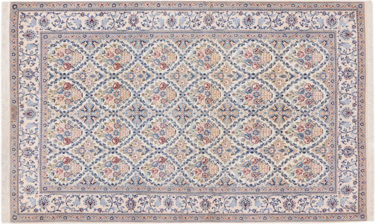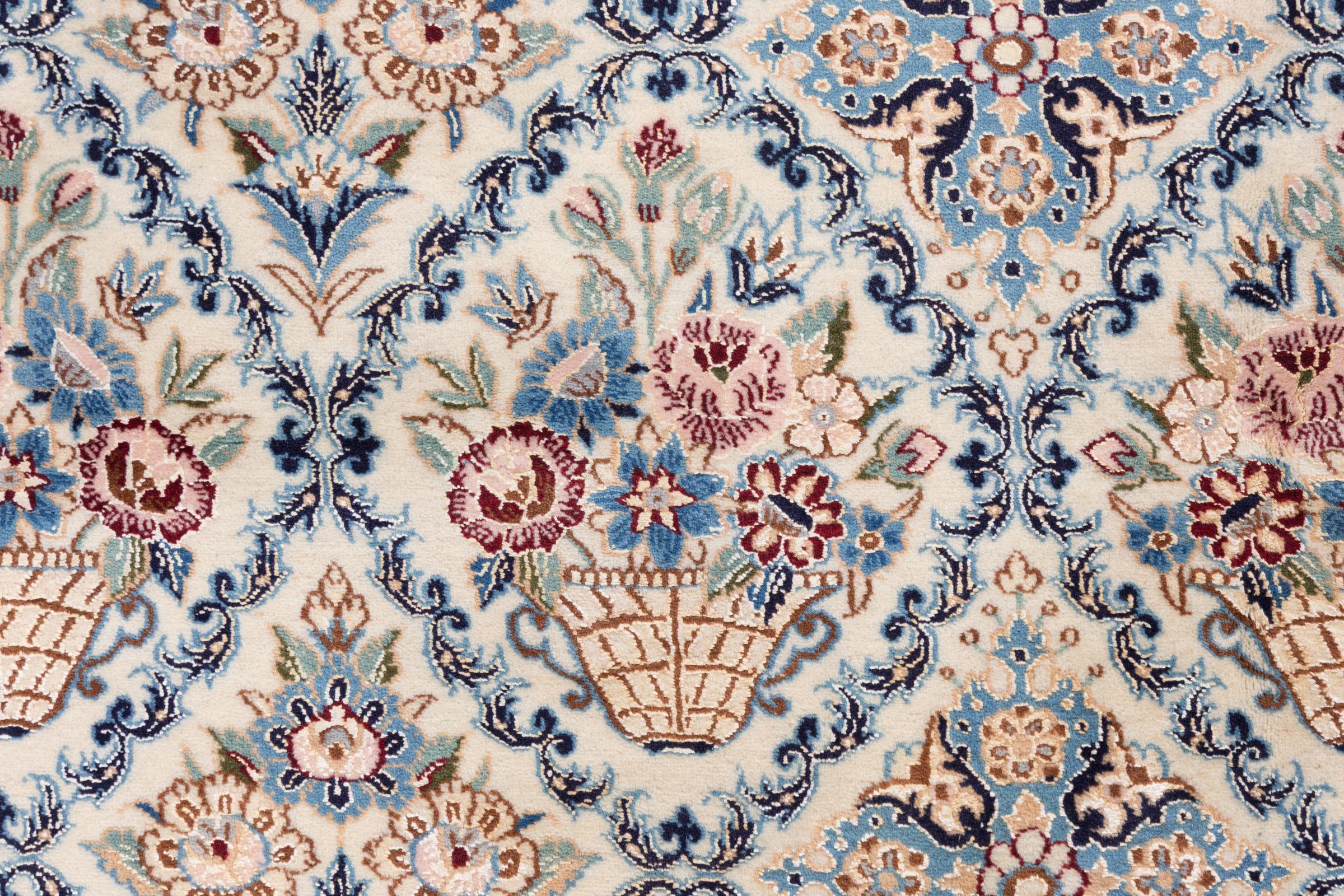 Les tapis de la ville de Nain, à la frontière de l'un des plus grands déserts d'Iran, comptent parmi les plus célèbres tapis persans du monde. Leur design typique est sans équivoque avec des ornements floraux, un médaillon central et des nuances de beige et de rouge ou de bleu. Grâce à leurs désignations 4La, 6La, 9La et 12La, les finesses d'un tapis Nain peuvent être vues d'un seul coup d'œil. Plus le chiffre "La" est bas, plus la densité des nœuds est élevée et donc plus le tapis est fin.