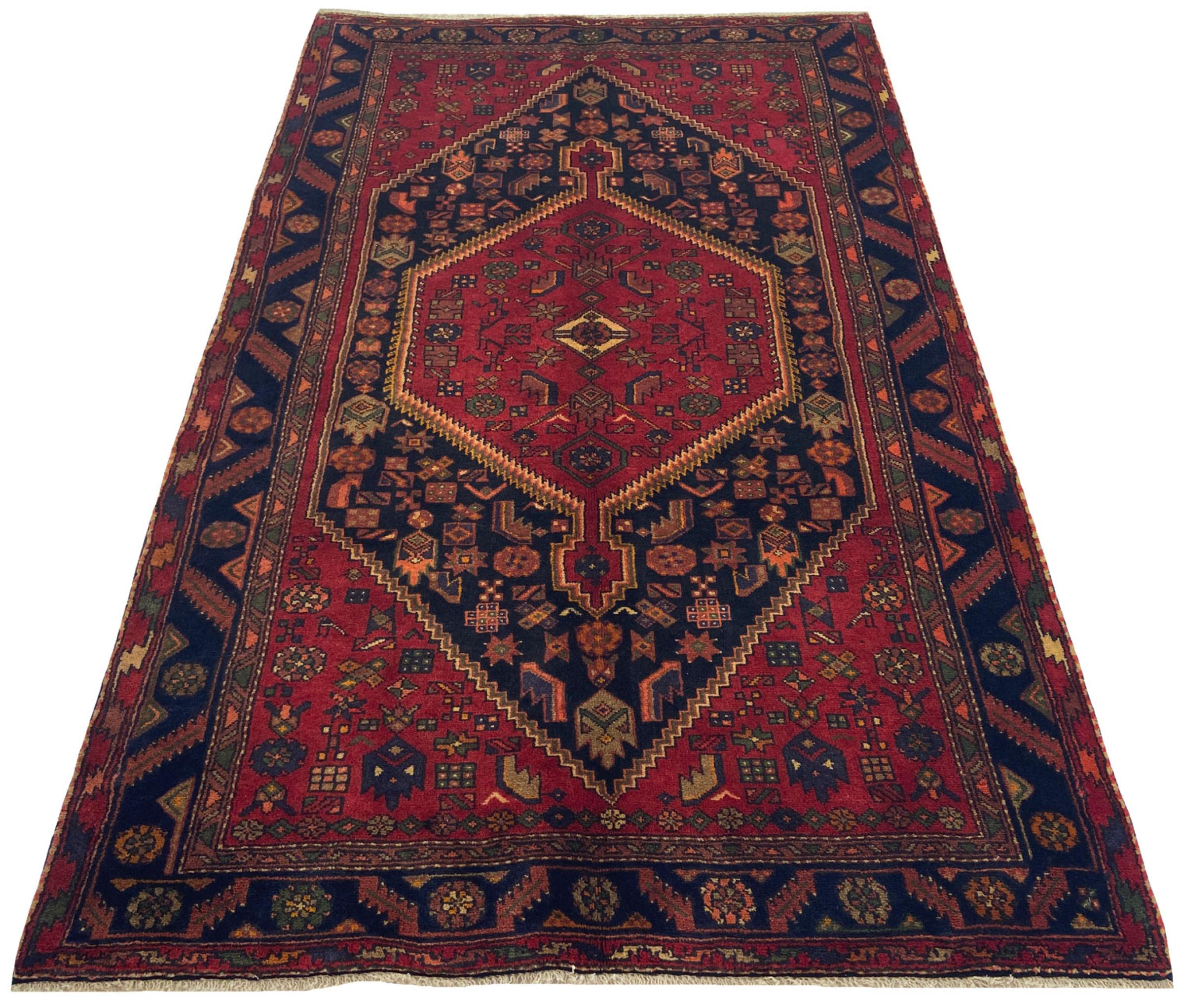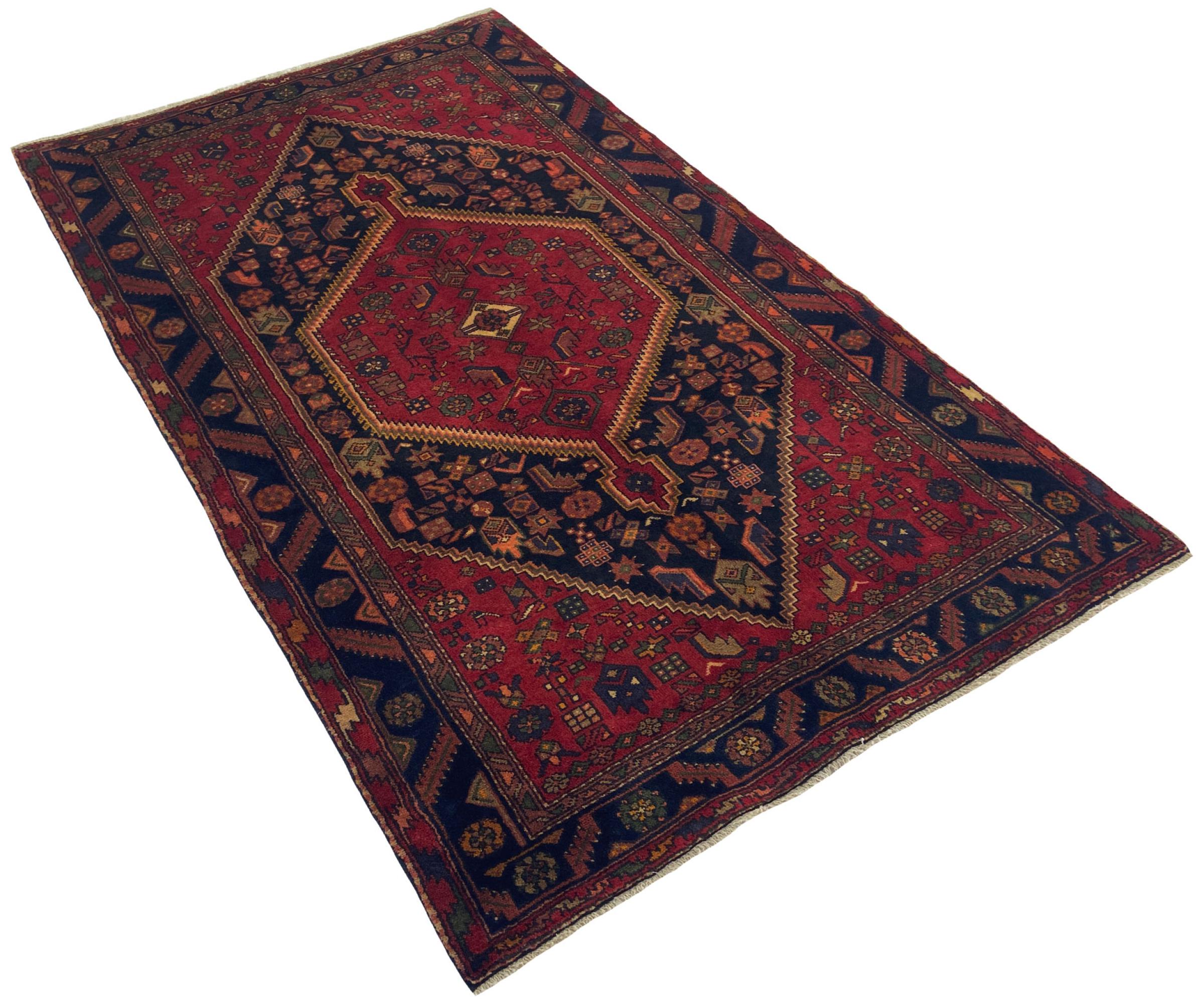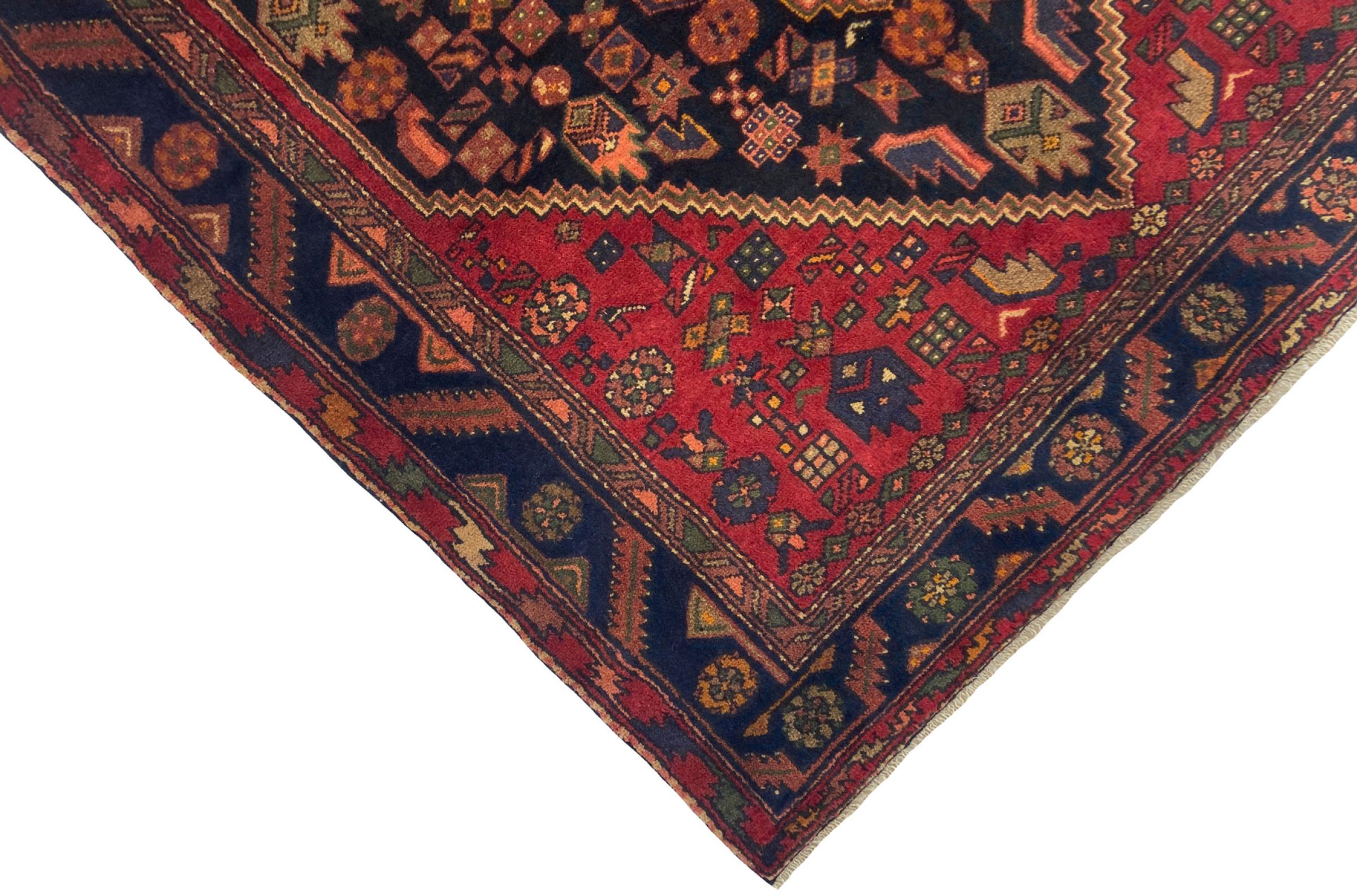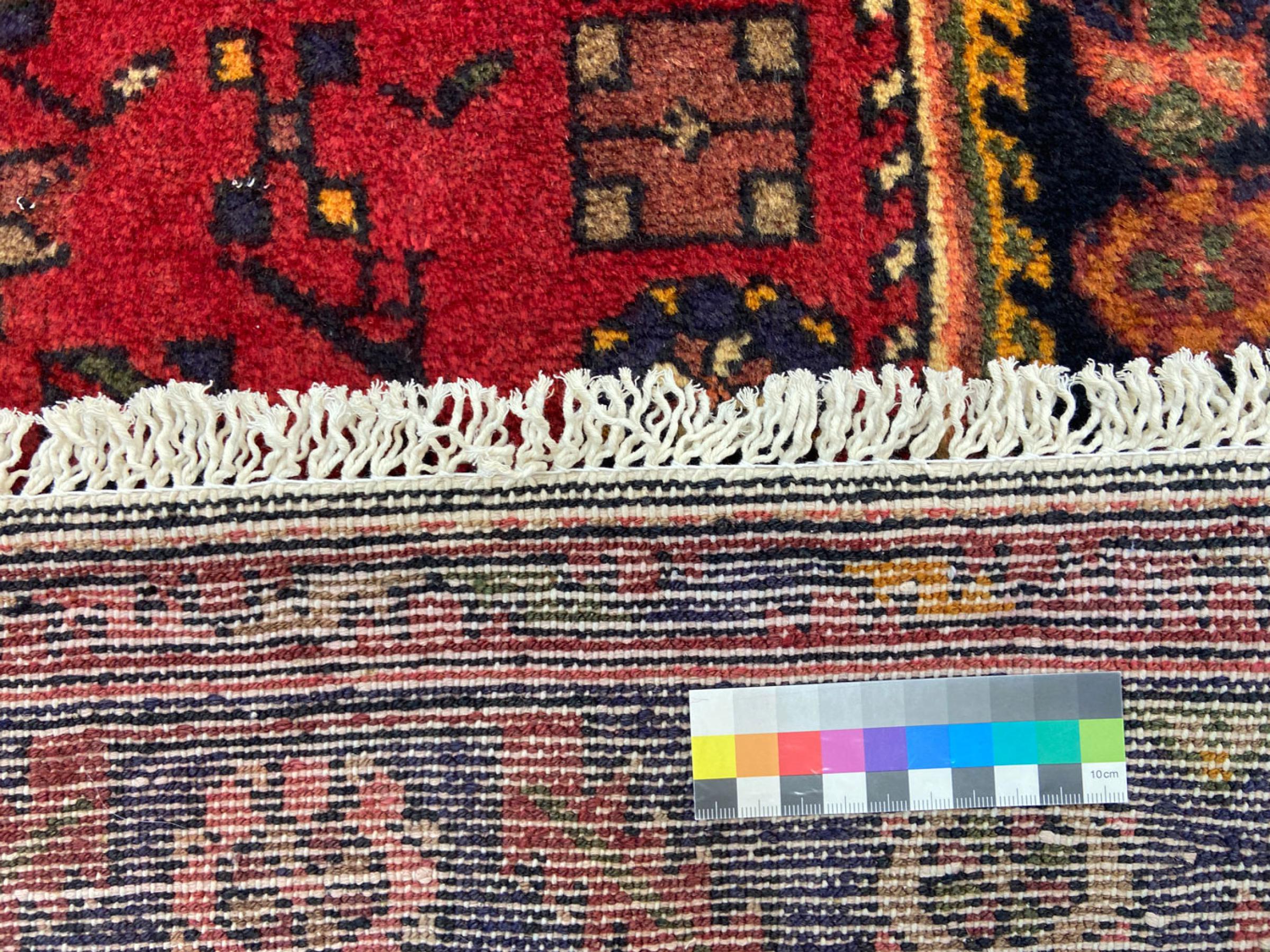 Ce tapis appartient aux tapis de village et de nomade d'Iran, anciennement la Perse. Ce type de tapis est noué à la main dans les petites villes et les villages selon l'ancienne tradition. Même les nomades nouent encore des tapis persans en plein air. Les tapis sont noués sans schéma et entièrement à partir de la tête. Ils se caractérisent par des ornements classiques, qui sont disposés en motifs droits et géométriques. Grâce à leur origine culturelle et traditionnelle, ces tapis ont un caractère unique qui incarne la Perse ancienne.