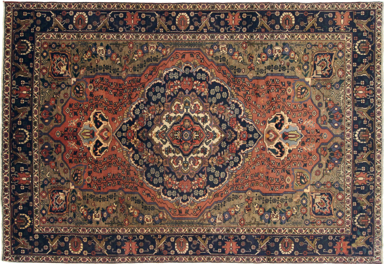 Réf. Article: 128273001319090 Taille: 302x204 cm Épaisseur: ap. 8 mm Densité de nouage: 160 000 - 200 000 / m² Fabrication: Noué à la main Velours: Laine filée à la main Chaîne: Laine de mouton Origine: Persie / Iran Âge: Nouveau Poids: ap. 22 kg Également connu sous Huseinabad Nombre en stock: Unique