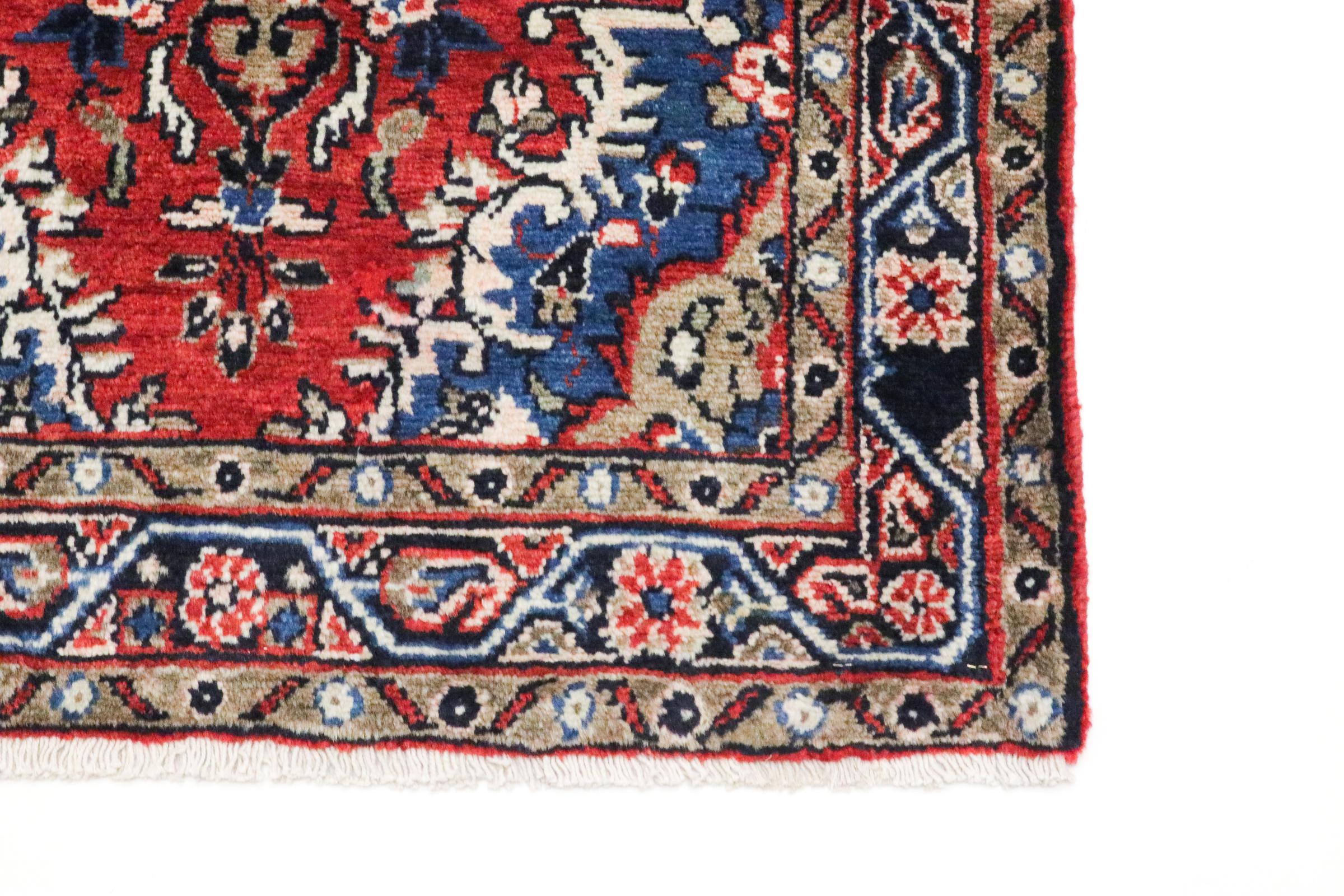 Ce tapis appartient aux tapis de village et de nomade d'Iran, anciennement la Perse. Ce type de tapis est noué à la main dans les petites villes et les villages selon l'ancienne tradition. Même les nomades nouent encore des tapis persans en plein air. Les tapis sont noués sans schéma et entièrement à partir de la tête. Ils se caractérisent par des ornements classiques, qui sont disposés en motifs droits et géométriques. Grâce à leur origine culturelle et traditionnelle, ces tapis ont un caractère unique qui incarne la Perse ancienne.
