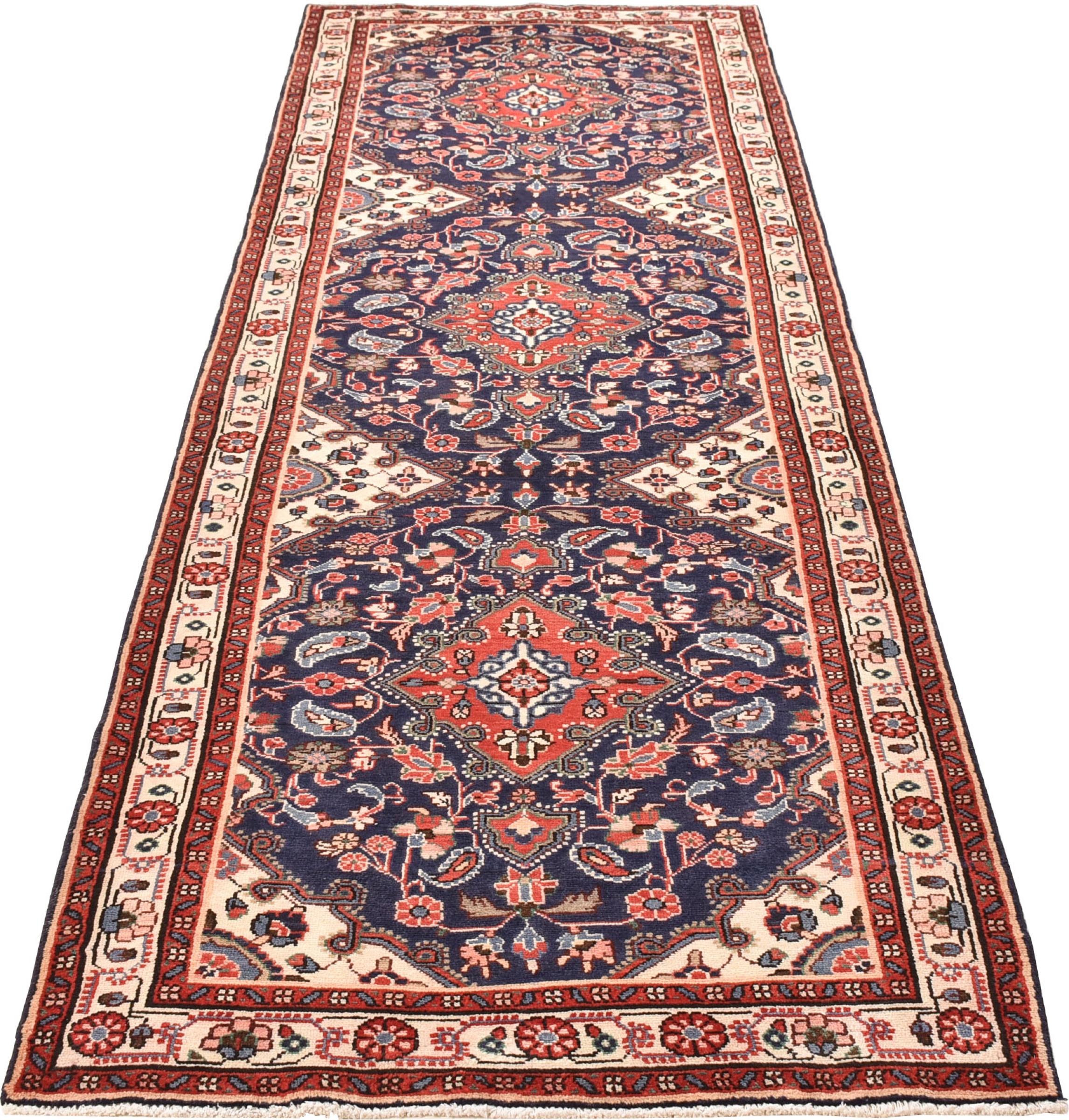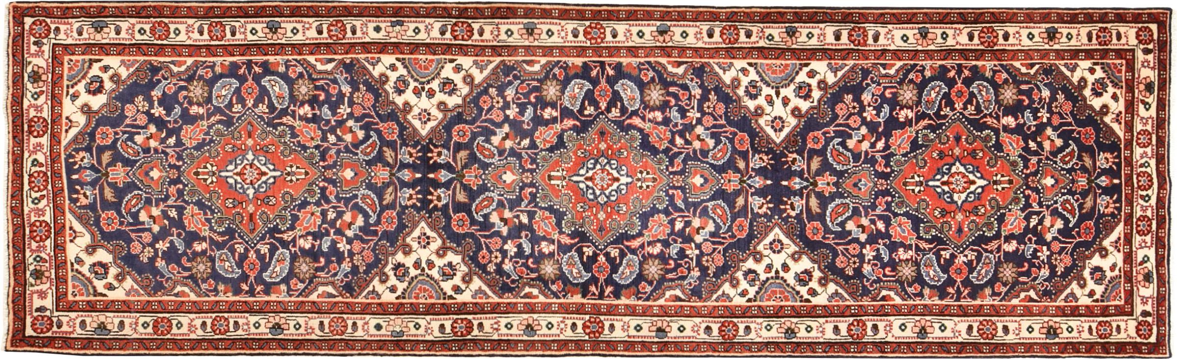 Réf. Article: 300895006128385 Taille: 353x109 cm Épaisseur: ap. 8 mm Densité de nouage: 128 000 - 160 000 / m² Fabrication: Noué à la main Velours: Laine filée à la main Chaîne: Coton Origine: Persie / Iran Âge: Nouveau Poids: ap. 13 kg Également connu sous Huseinabad Nombre en stock: Unique - Seulement 1 en stock