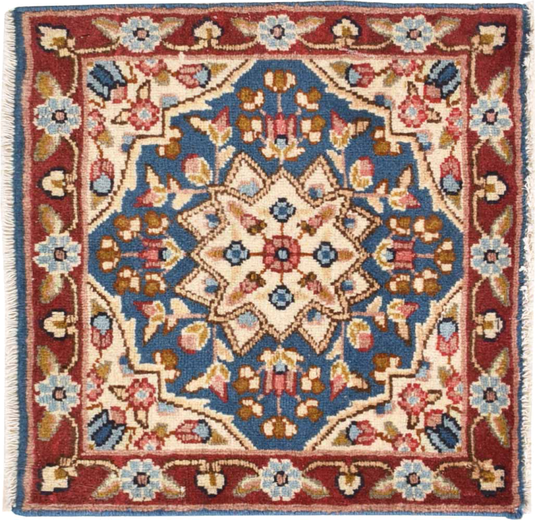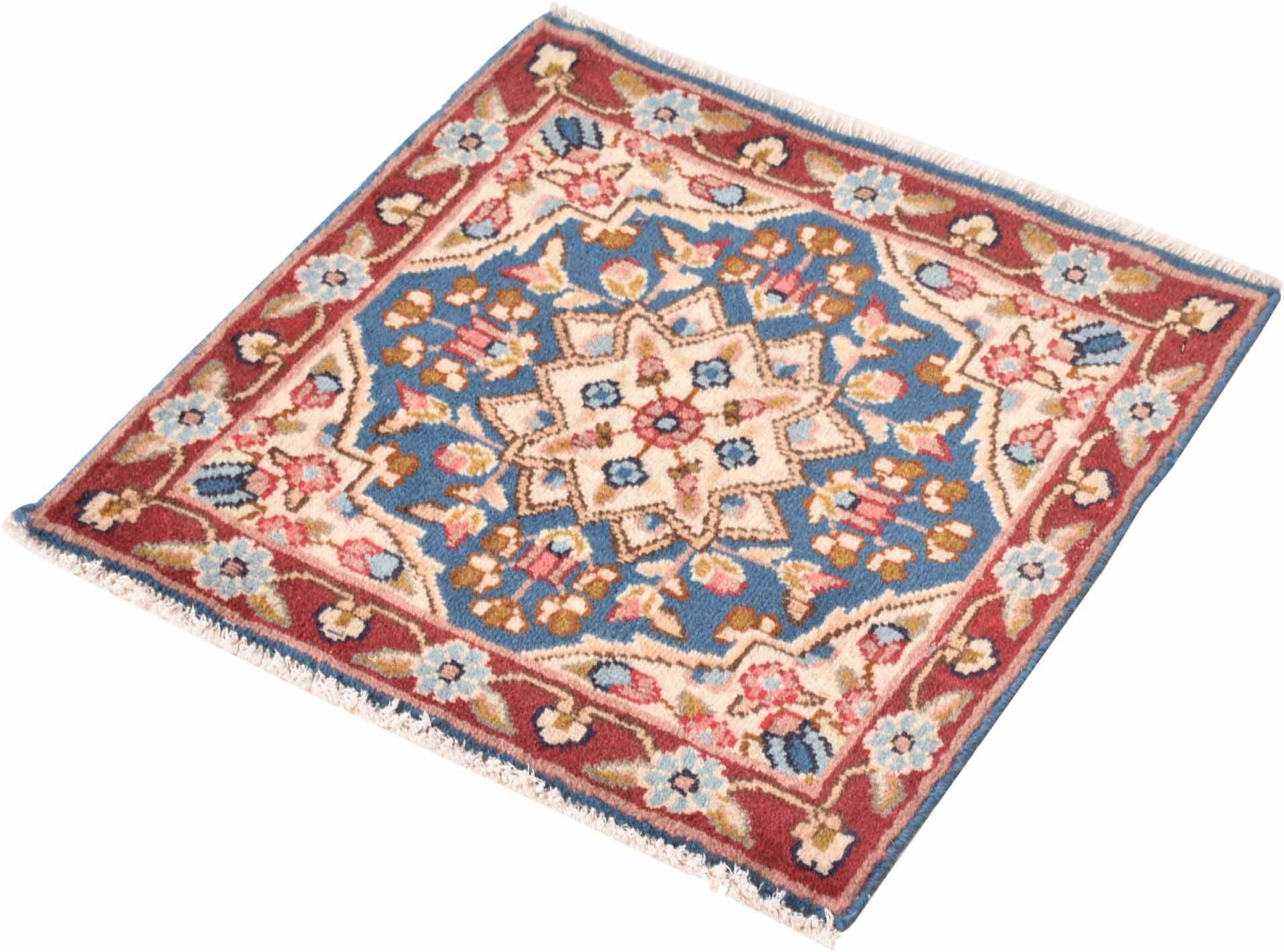 Réf. Article: 30107100622554 Taille: 51x49 cm Épaisseur: ap. 8 mm Densité de nouage: 128 000 - 160 000 / m² Fabrication: Noué à la main Velours: Laine filée à la main Chaîne: Coton Origine: Persie / Iran Âge: Nouveau Poids: ap. 1 kg Également connu sous Huseinabad Nombre en stock: Unique - Seulement 1 en stock