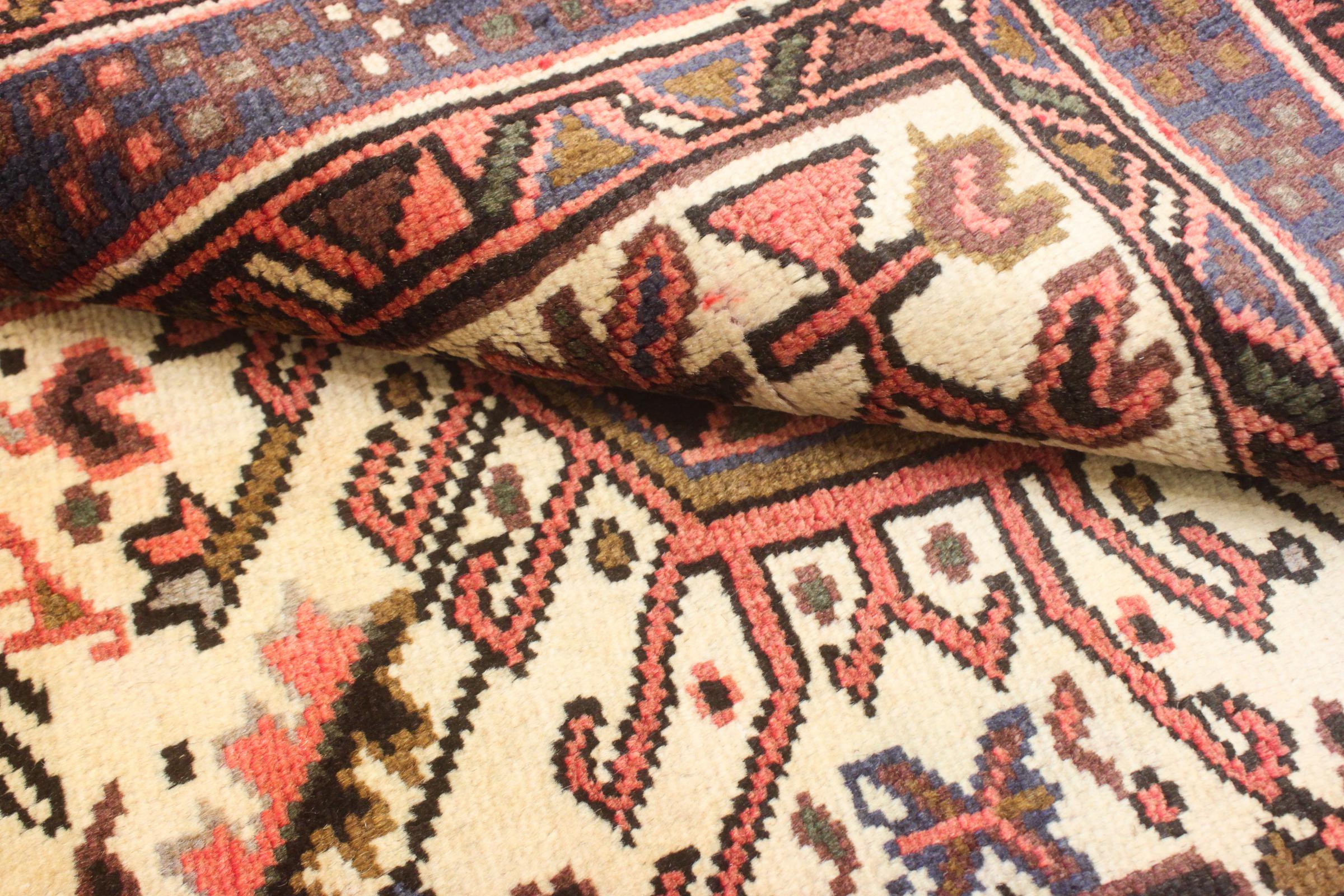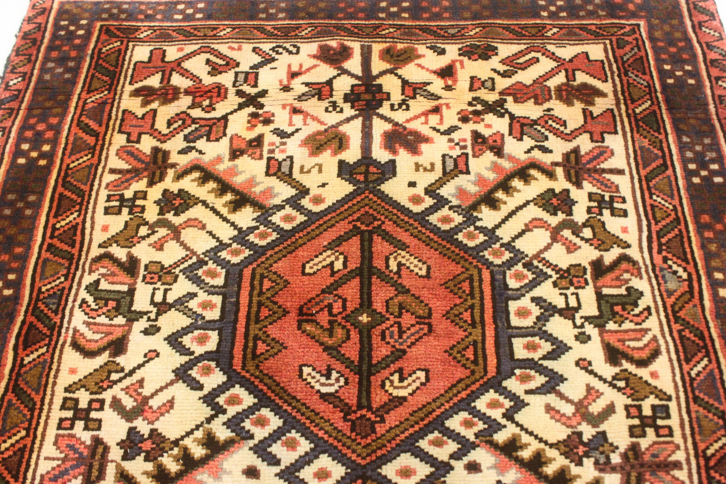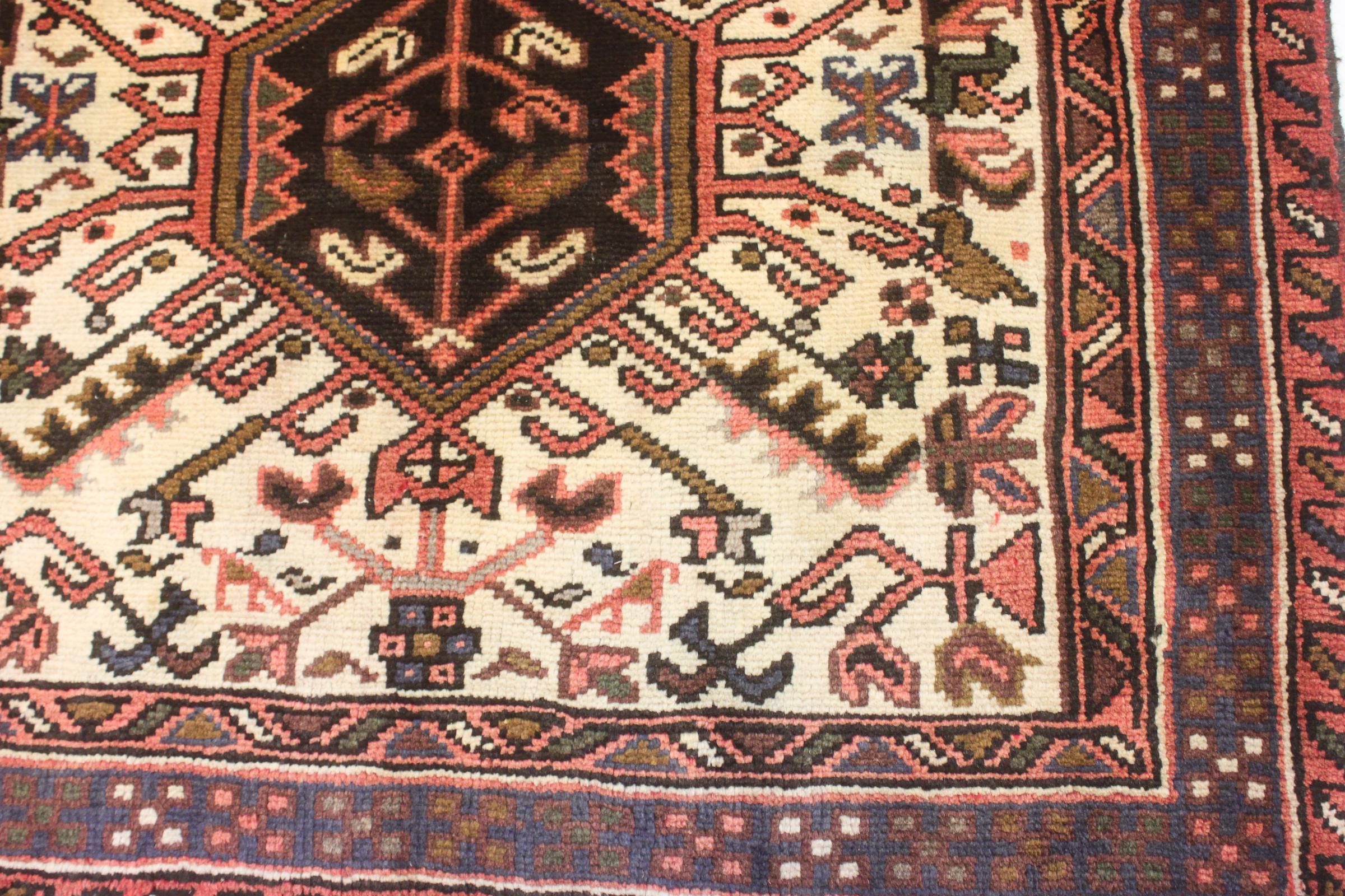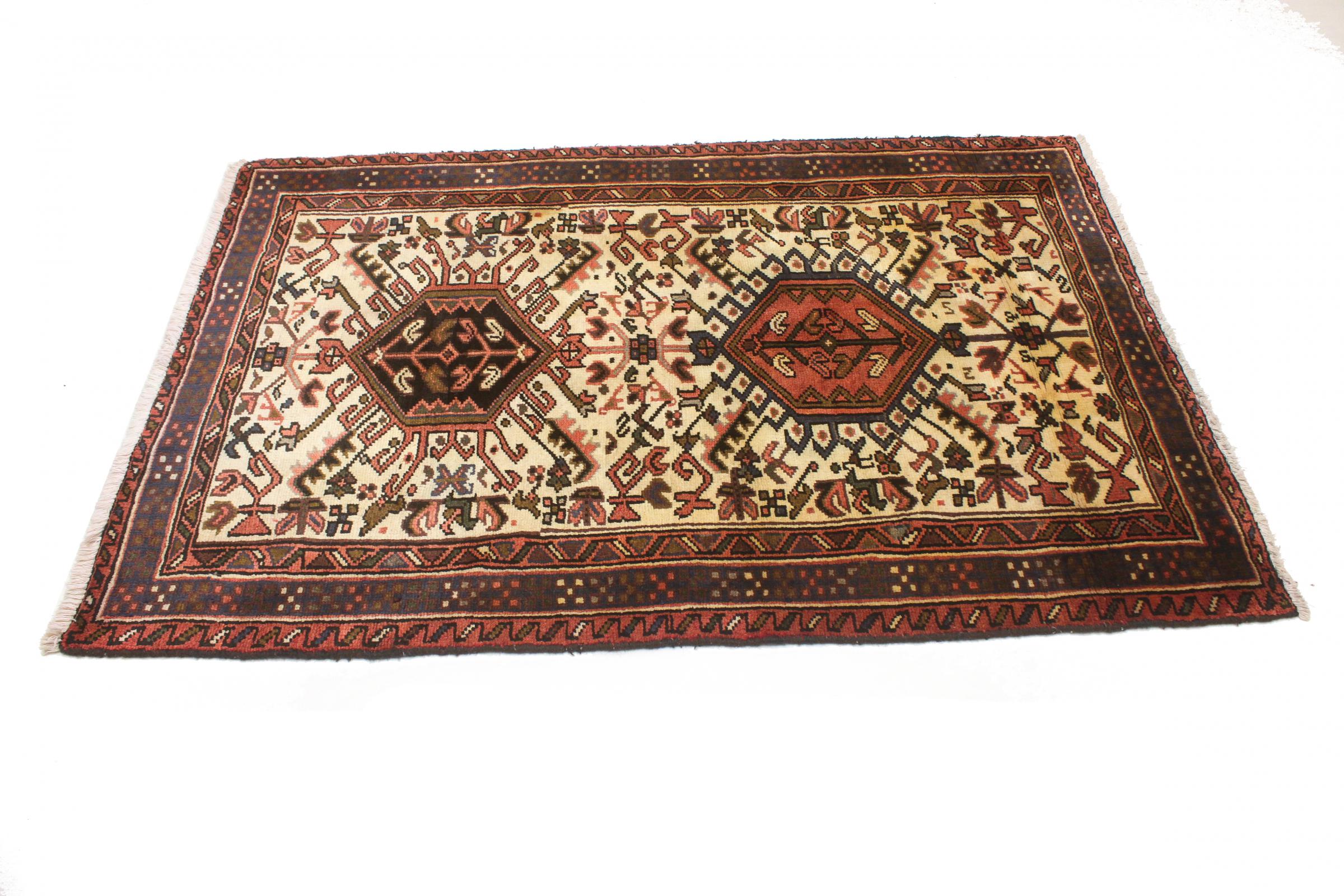 Ce tapis appartient aux tapis de village et de nomade d'Iran, anciennement la Perse. Ce type de tapis est noué à la main dans les petites villes et les villages selon l'ancienne tradition. Même les nomades nouent encore des tapis persans en plein air. Les tapis sont noués sans schéma et entièrement à partir de la tête. Ils se caractérisent par des ornements classiques, qui sont disposés en motifs droits et géométriques. Grâce à leur origine culturelle et traditionnelle, ces tapis ont un caractère unique qui incarne la Perse ancienne.