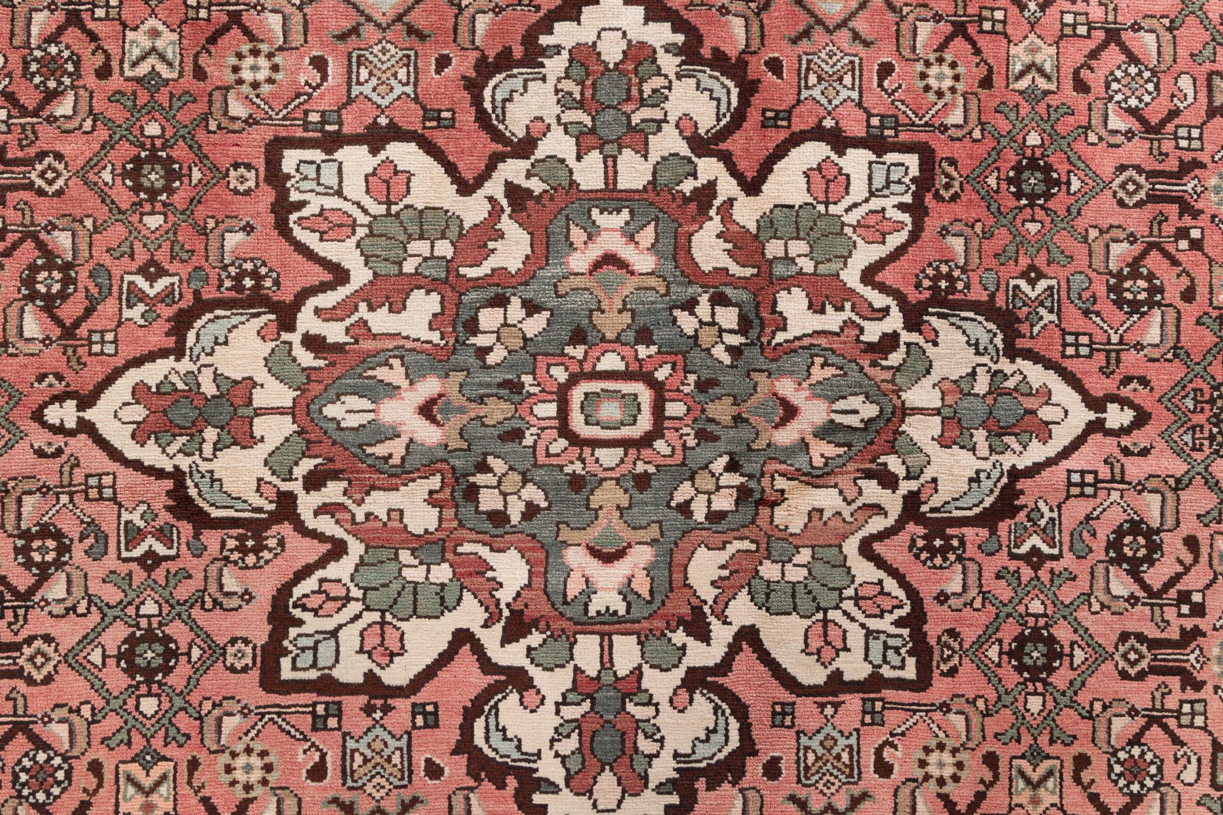 Ce tapis appartient aux tapis de village et de nomade d'Iran, anciennement la Perse. Ce type de tapis est noué à la main dans les petites villes et les villages selon l'ancienne tradition. Même les nomades nouent encore des tapis persans en plein air. Les tapis sont noués sans schéma et entièrement à partir de la tête. Ils se caractérisent par des ornements classiques, qui sont disposés en motifs droits et géométriques. Grâce à leur origine culturelle et traditionnelle, ces tapis ont un caractère unique qui incarne la Perse ancienne.