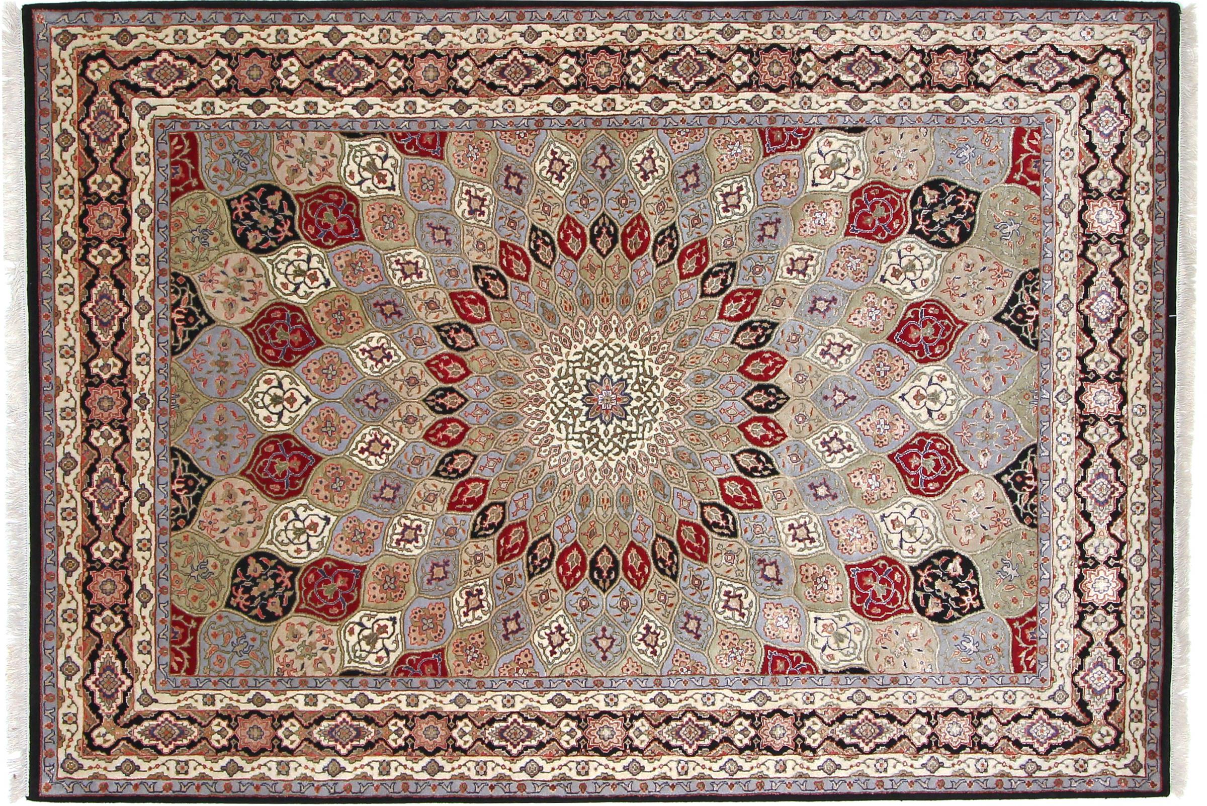 Les noueurs de tapis de l'ancienne Perse sont venus en Inde il y a des siècles pour exercer leur métier. Ainsi, l'Inde a aujourd'hui une tradition de nouage de tapis d'une grande portée. Les motifs et les ornements sont souvent basés sur les motifs bien connus des tapis persans. De nombreux tapis orientaux noués à la main viennent du nord du pays. Les tapis en soie du Cachemire, par exemple, proviennent de la région du Cachemire, qui est directement voisine du Pakistan.