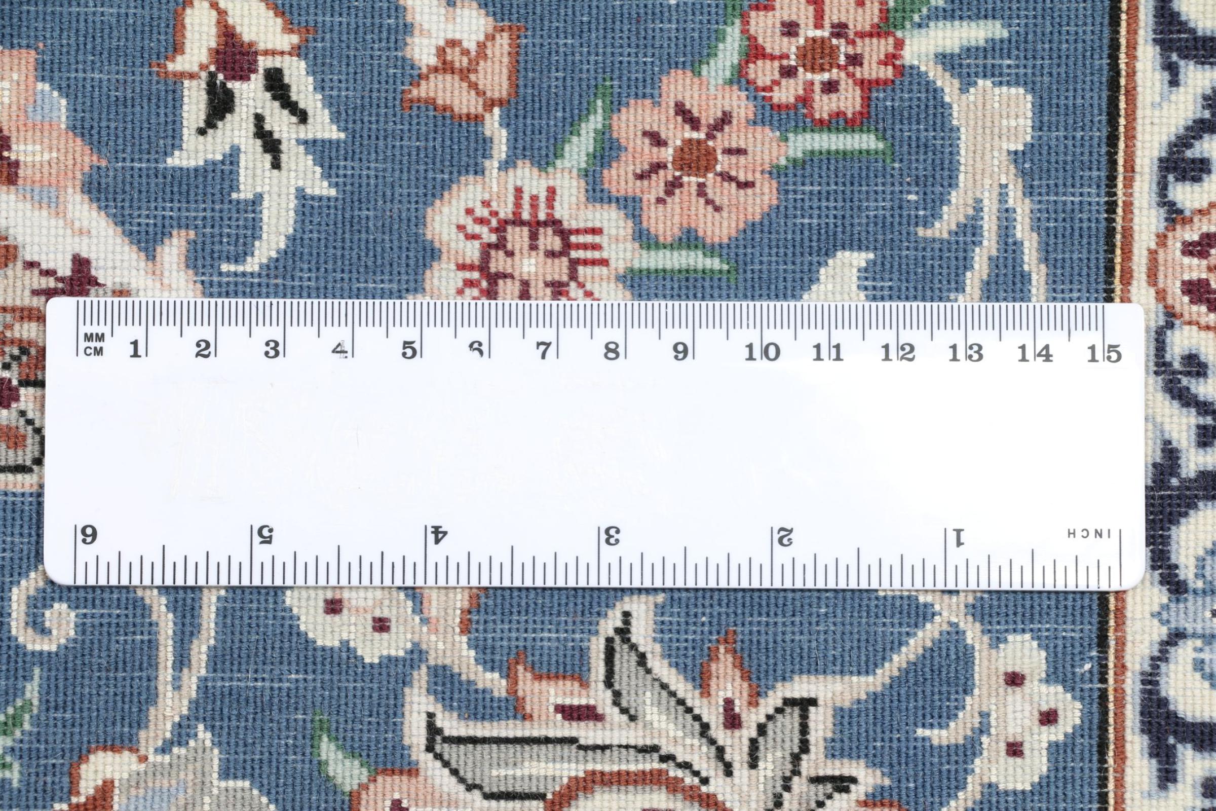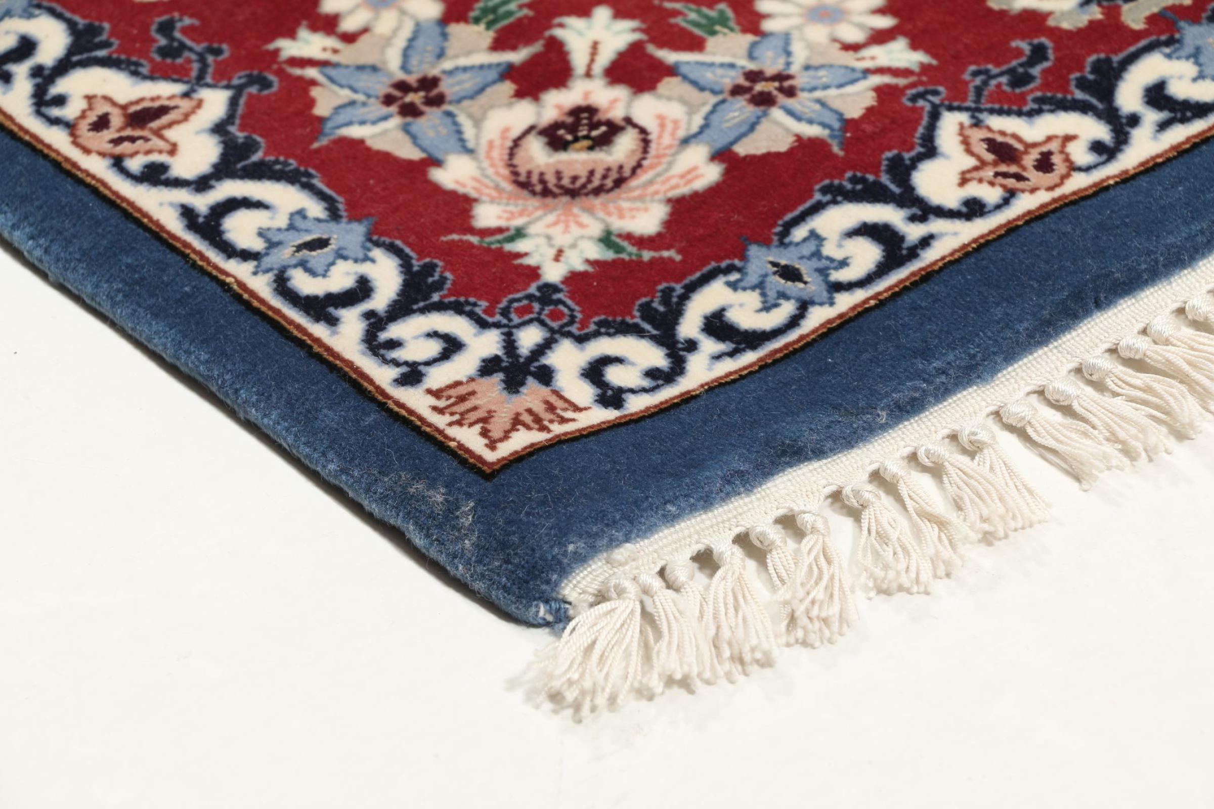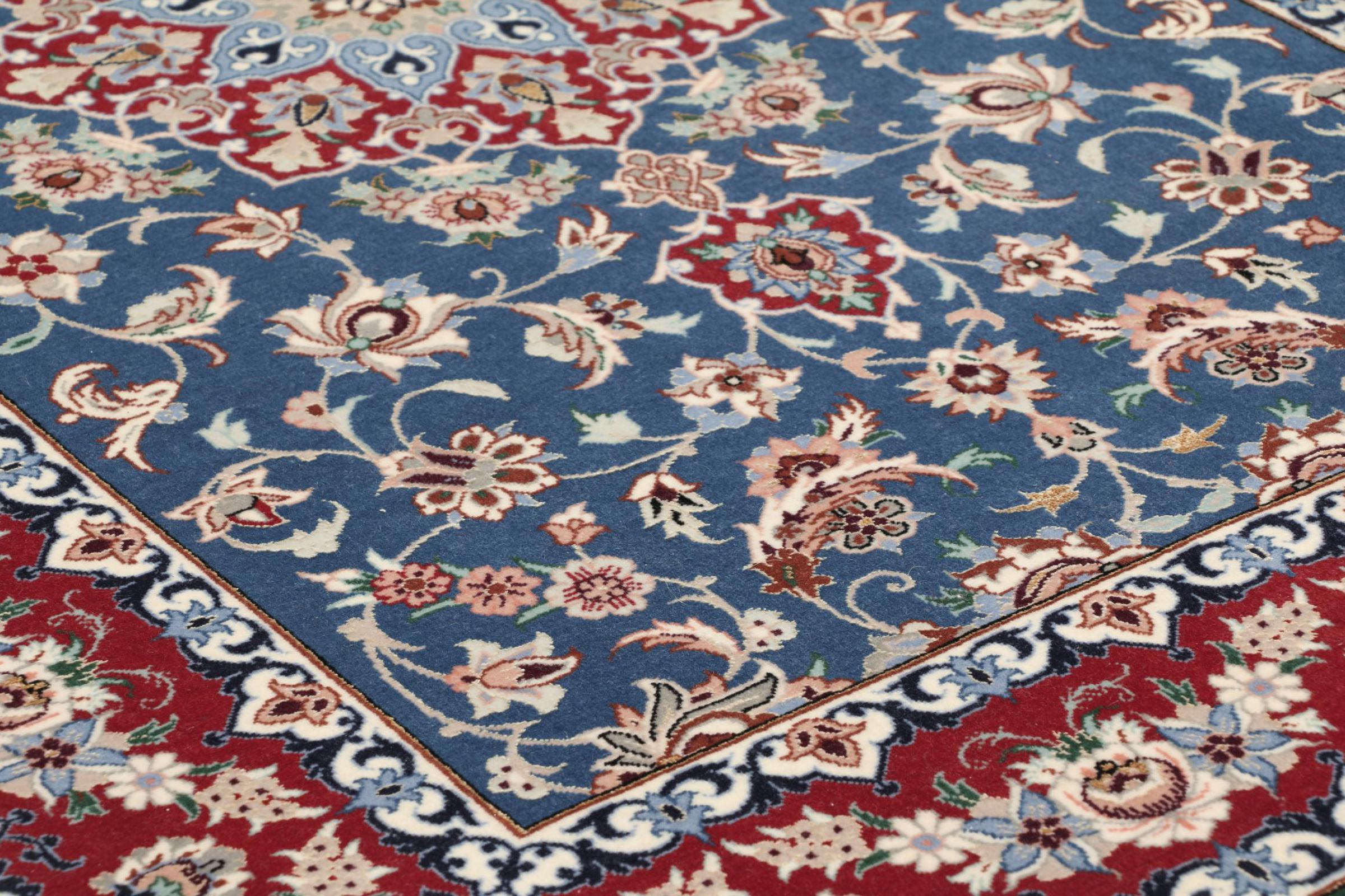 Ce tapis Isfahan est du pur art. Il est travaillé au maximum et décoré avec les plus beaux motifs qui existent. Ce tapis persan est fait à Isfahan, la plus belle ville d’Iran. Un tapis plus persan que lui est impossible à trouver.