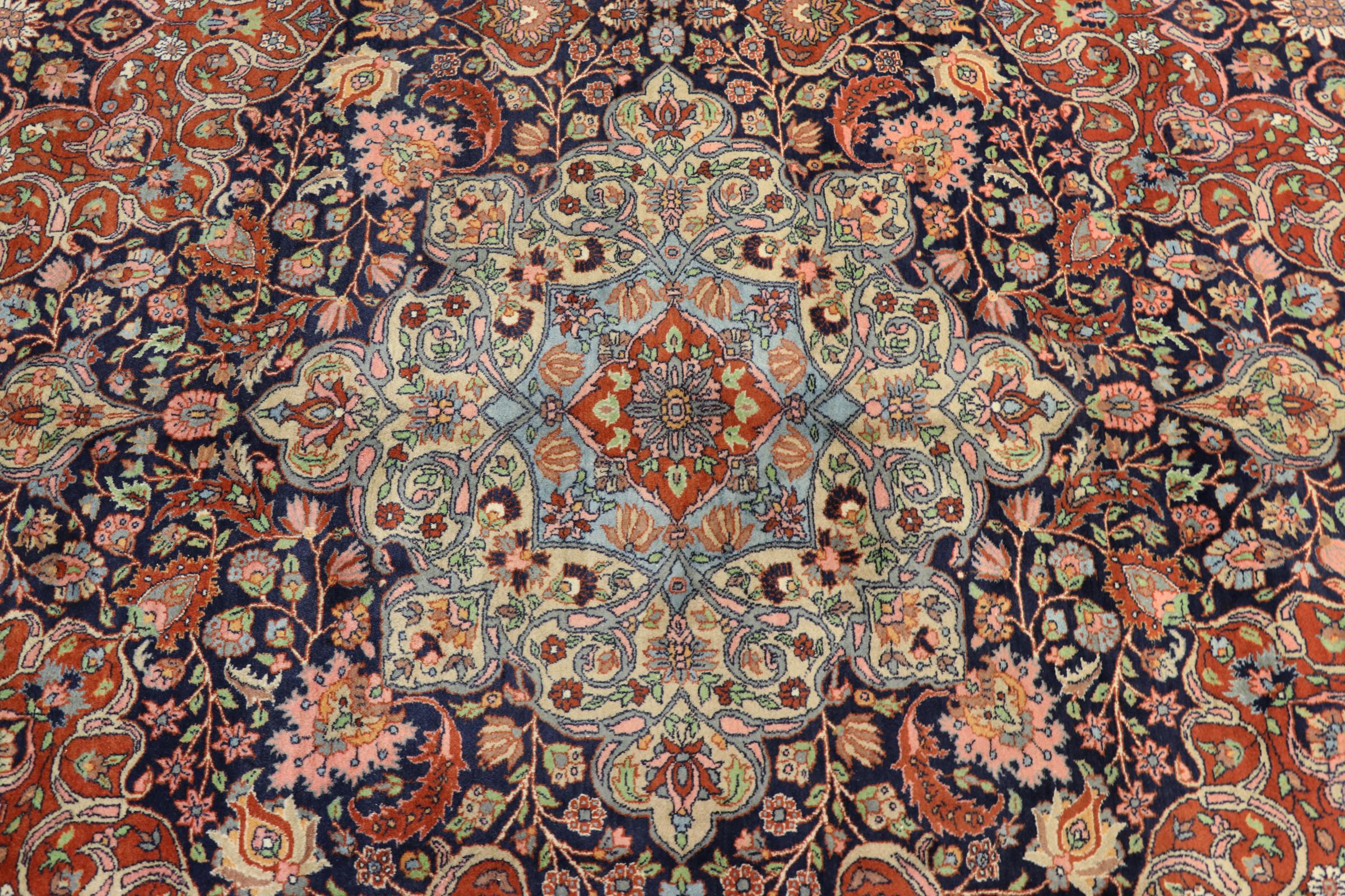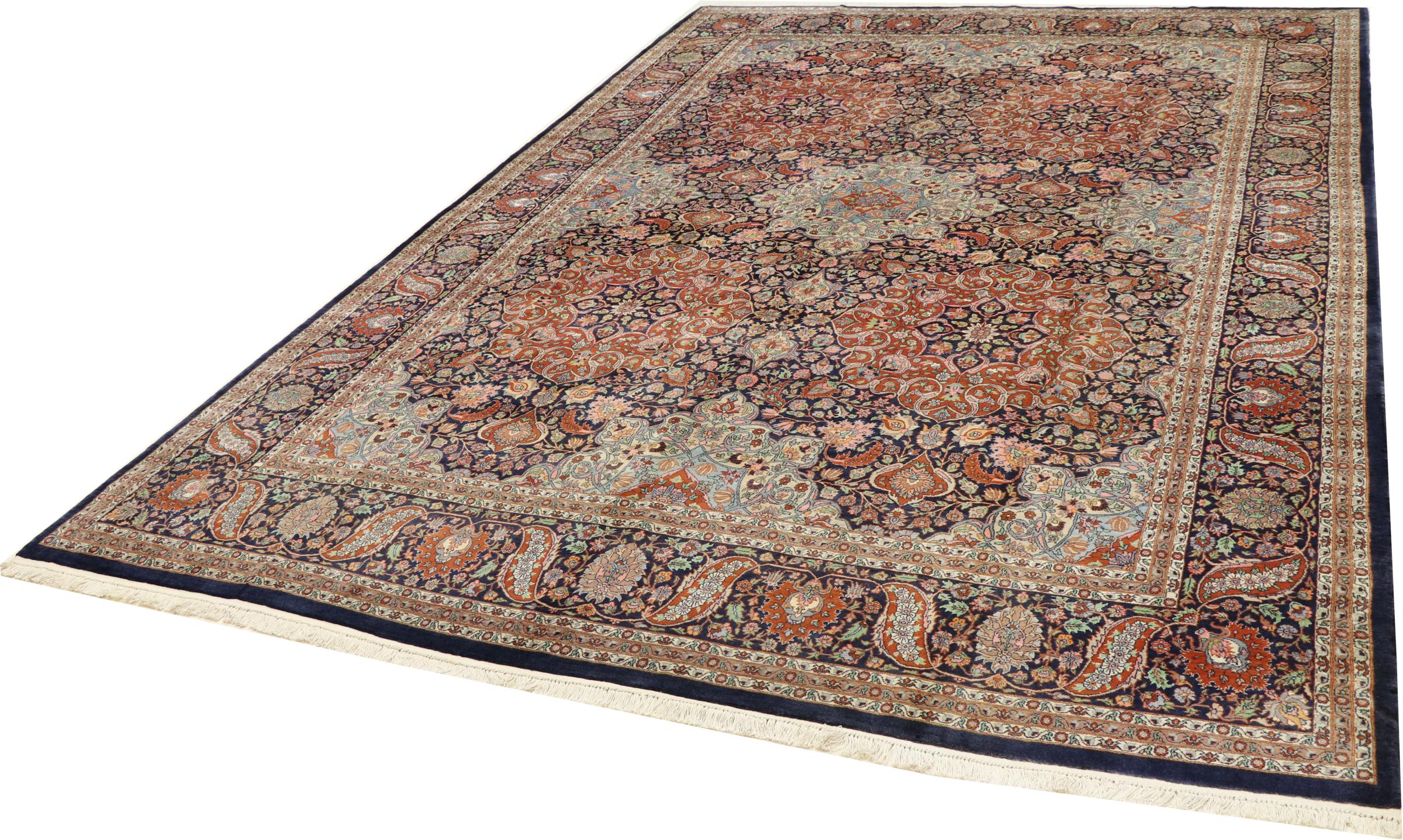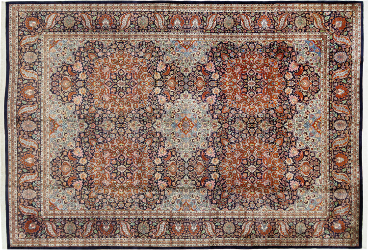 Réf. Article: 304089001487059 Taille: 405x280 cm Épaisseur: ap. 5 mm Densité de nouage: 320 000 - 360 000 / m² Fabrication: Noué à la main Velours: Laine de liège Chaîne: Coton Origine: Persie / Iran Âge: Nouveau Poids: ap. 40 kg Nombre en stock: Unique - Seulement 1 en stock