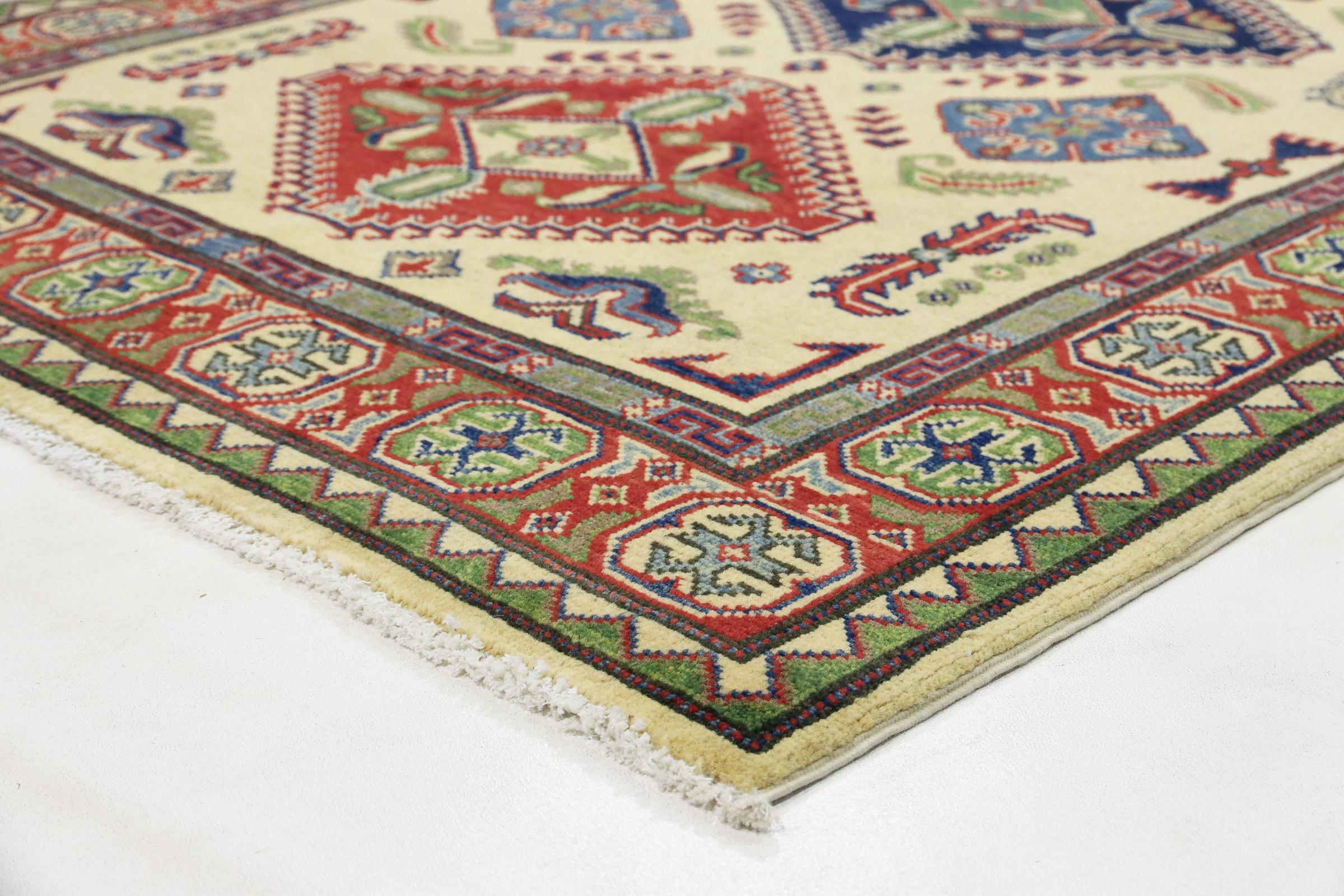 Les tapis Kazak sont des tapis en laine durables et vibrants connus pour leurs motifs géométriques uniques, leurs couleurs équilibrées et leur savoir-faire exceptionnel. Ils créeront une atmosphère captivante et culturellement riche dans votre espace. Originaires du Caucase et l'un des plus anciens types de tapis, ils sont aujourd'hui principalement fabriqués par des Kazakhs en Afghanistan et au Pakistan. Un tapis Kazak antique peut être très précieux pour les collectionneurs.