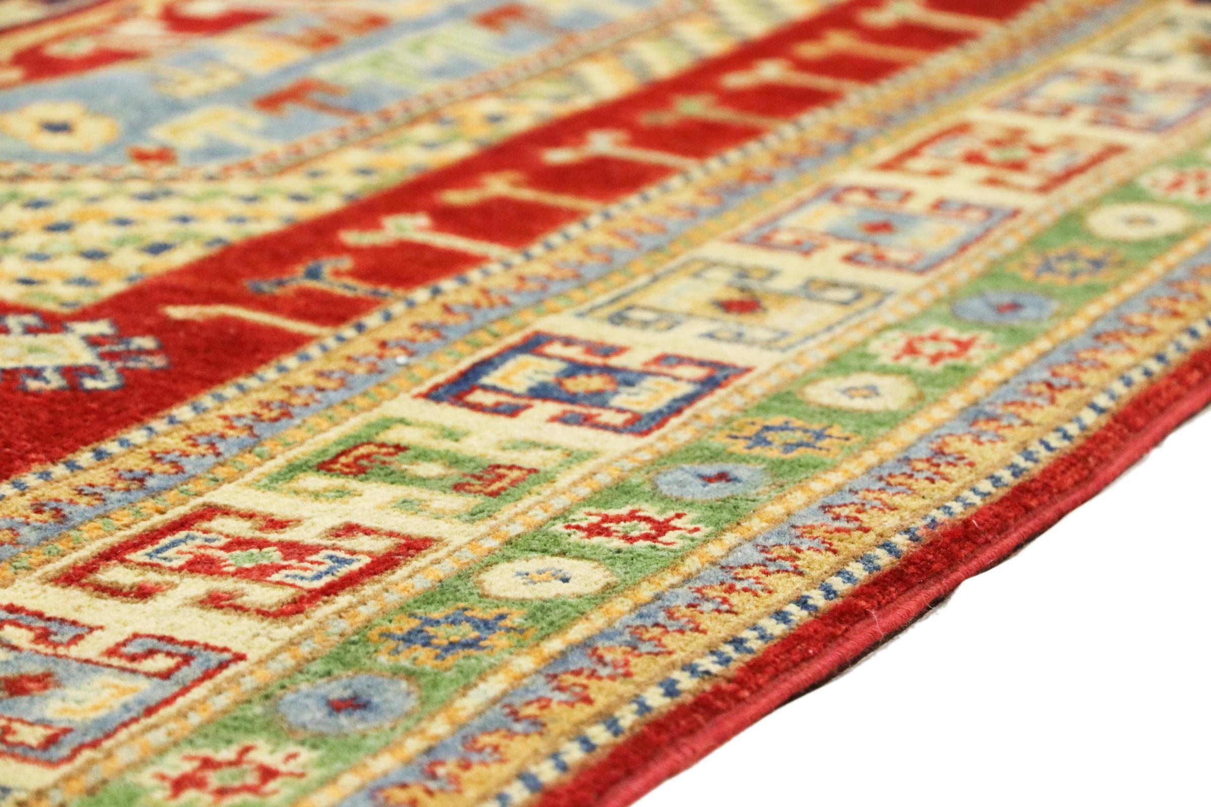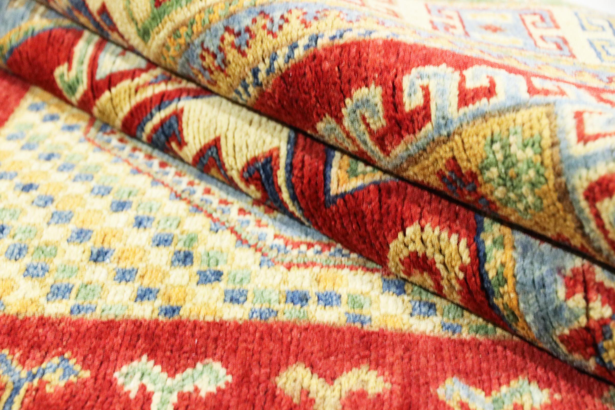 Les tapis Kazak sont des tapis en laine durables et vibrants connus pour leurs motifs géométriques uniques, leurs couleurs équilibrées et leur savoir-faire exceptionnel. Ils créeront une atmosphère captivante et culturellement riche dans votre espace. Originaires du Caucase et l'un des plus anciens types de tapis, ils sont aujourd'hui principalement fabriqués par des Kazakhs en Afghanistan et au Pakistan. Un tapis Kazak antique peut être très précieux pour les collectionneurs.