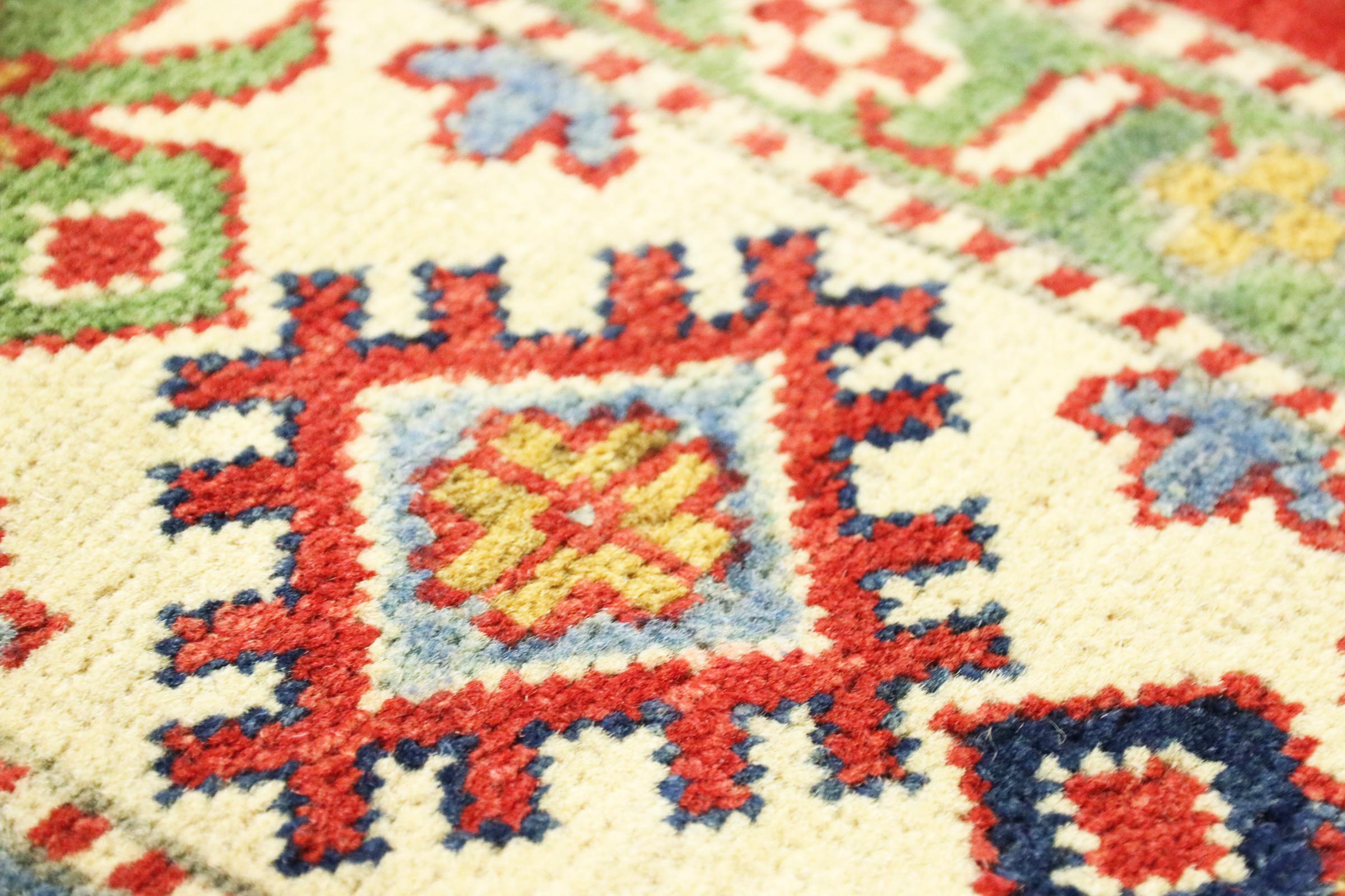 Les tapis Kazak sont des tapis en laine durables et vibrants connus pour leurs motifs géométriques uniques, leurs couleurs équilibrées et leur savoir-faire exceptionnel. Ils créeront une atmosphère captivante et culturellement riche dans votre espace. Originaires du Caucase et l'un des plus anciens types de tapis, ils sont aujourd'hui principalement fabriqués par des Kazakhs en Afghanistan et au Pakistan. Un tapis Kazak antique peut être très précieux pour les collectionneurs.