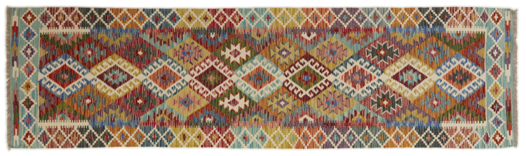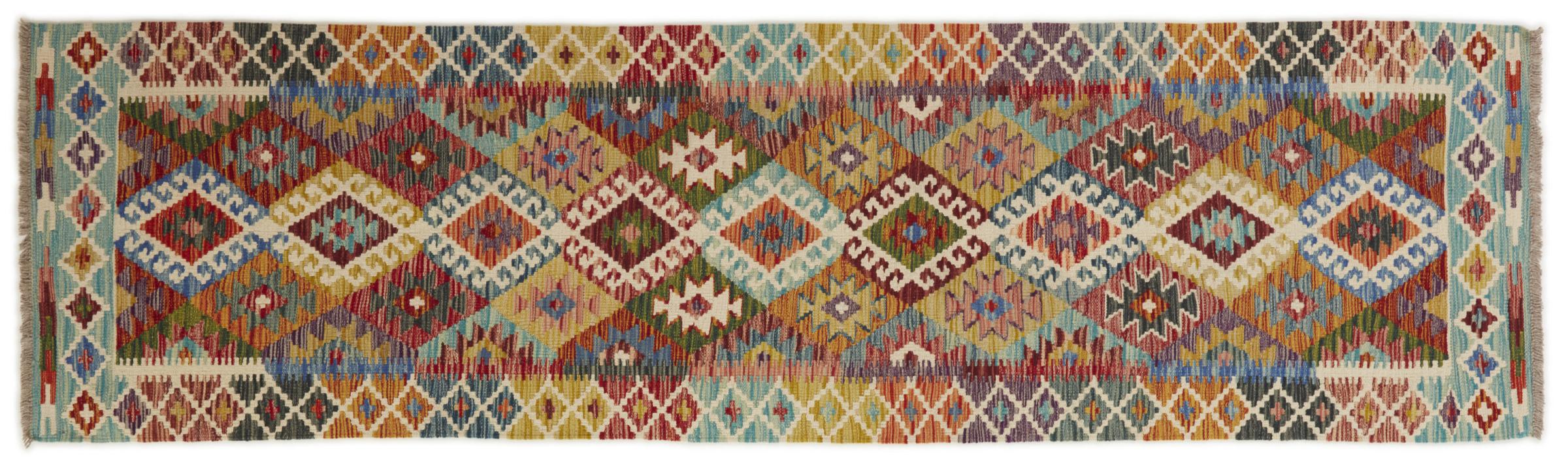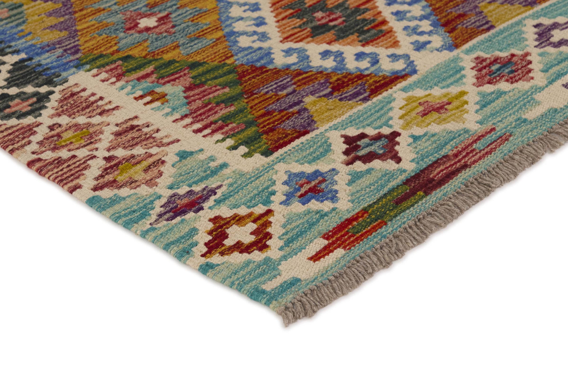 Ce tapis Afghan Kilim tissé main est une merveille, grâce à ses couleurs et à ses motifs caractéristiques. Il a été fabriqué en Afghanistan avec de la laine, et a bien sûr été fait à la main. Il est robuste et durable. Il est un véritable bénéfice pour votre maison.