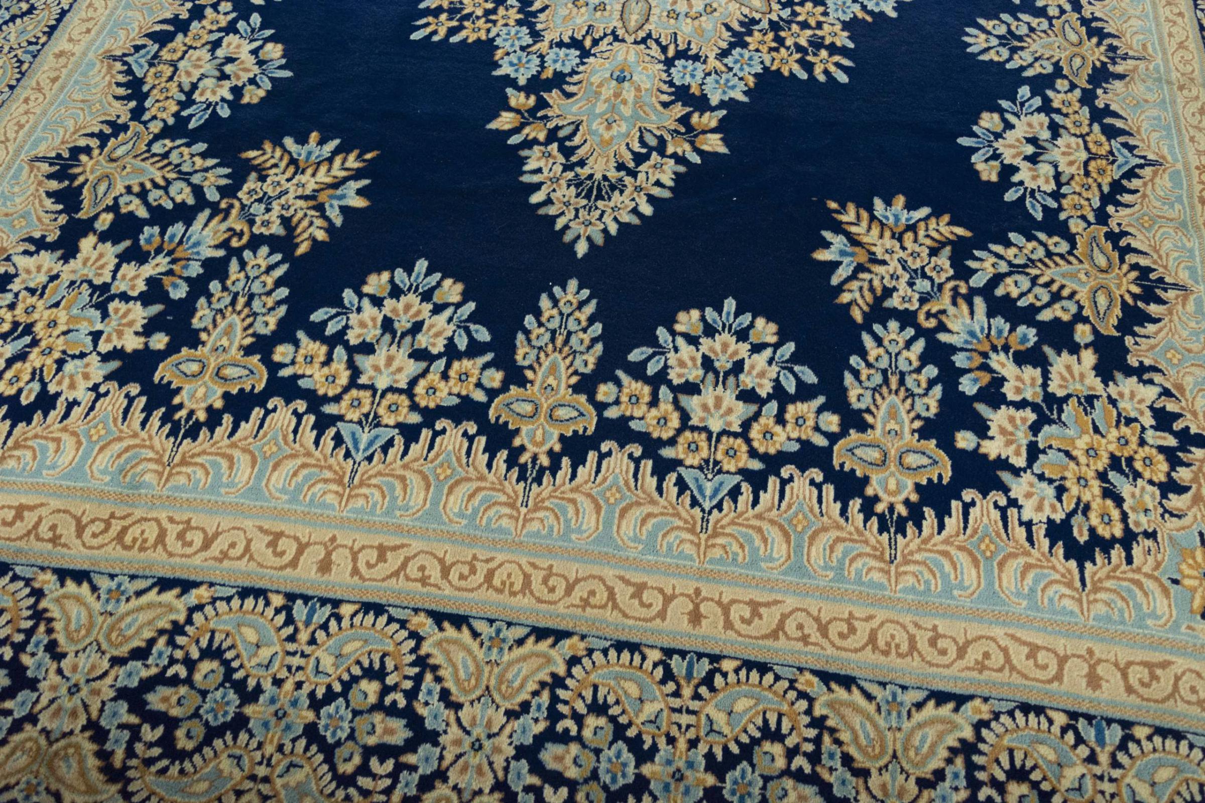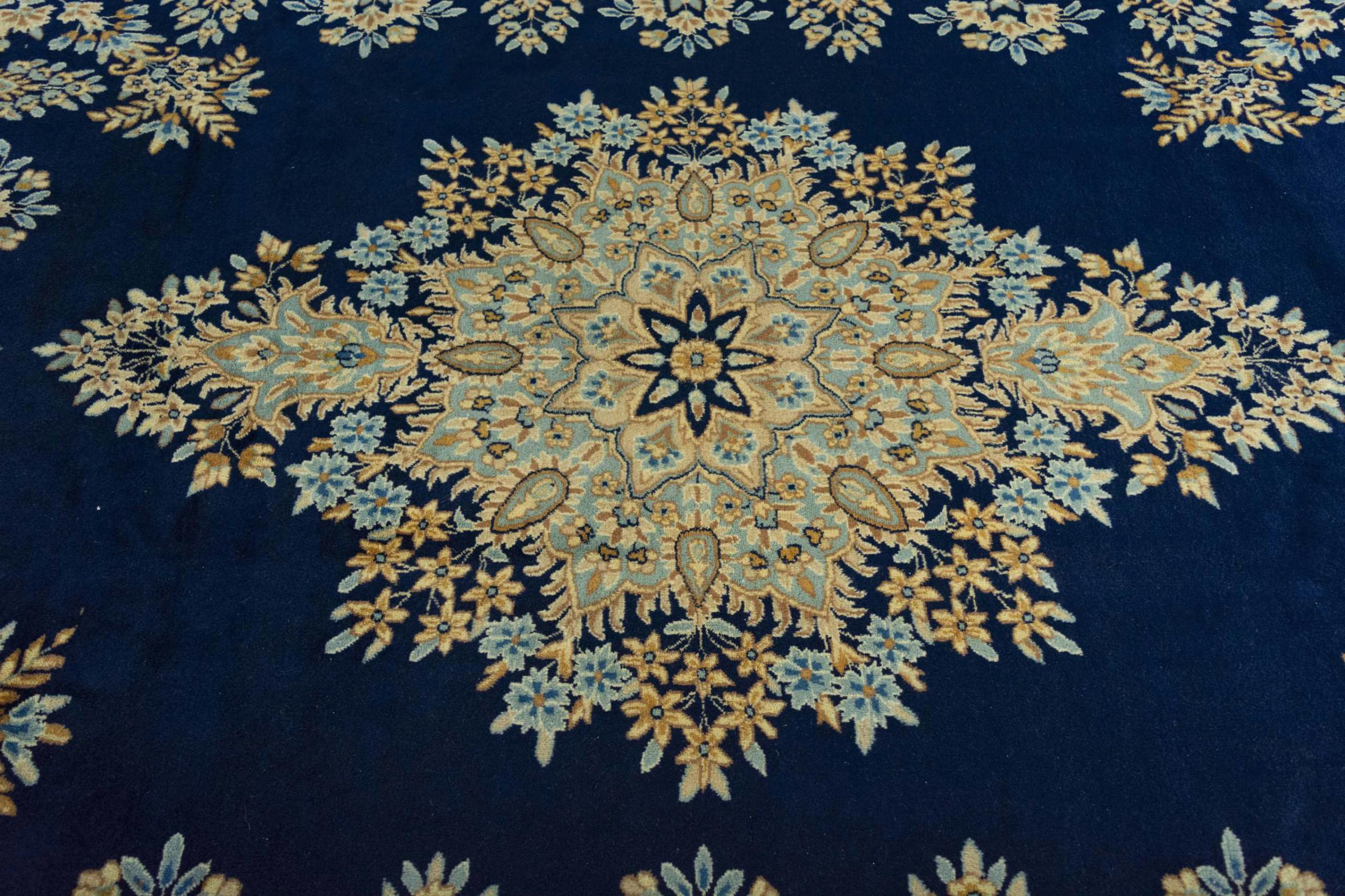 Autrefois, les tapis noués à la main de la ville désertique de Kerman étaient considérés comme les meilleurs tapis persans et orientaux en général. Aujourd'hui, cette réputation n'est plus vraie, mais ces tapis persans sont toujours incontestablement parmi les tapis orientaux de la plus haute qualité. Les tapis de Kerman sont connus pour leurs riches ornements floraux, les couleurs vives des plantes et leurs médaillons pompeux au centre. Les tapis Kerman ont une longue tradition.