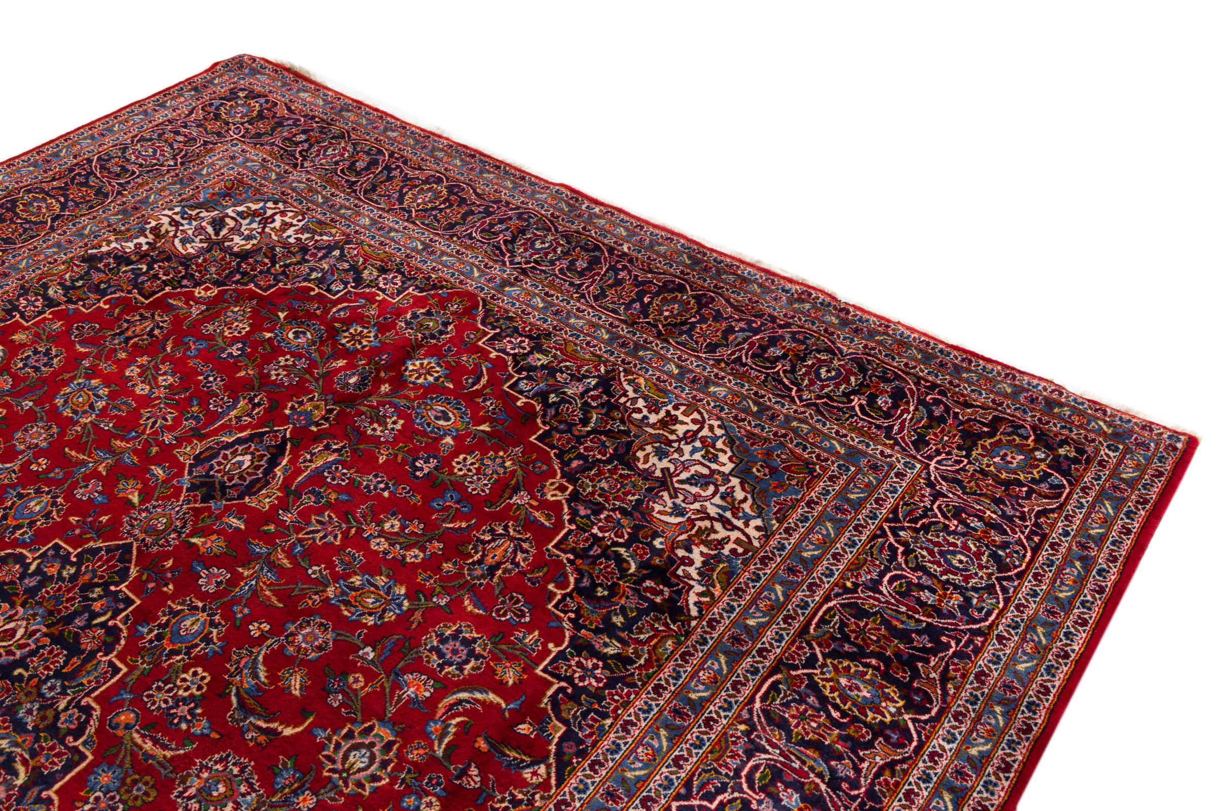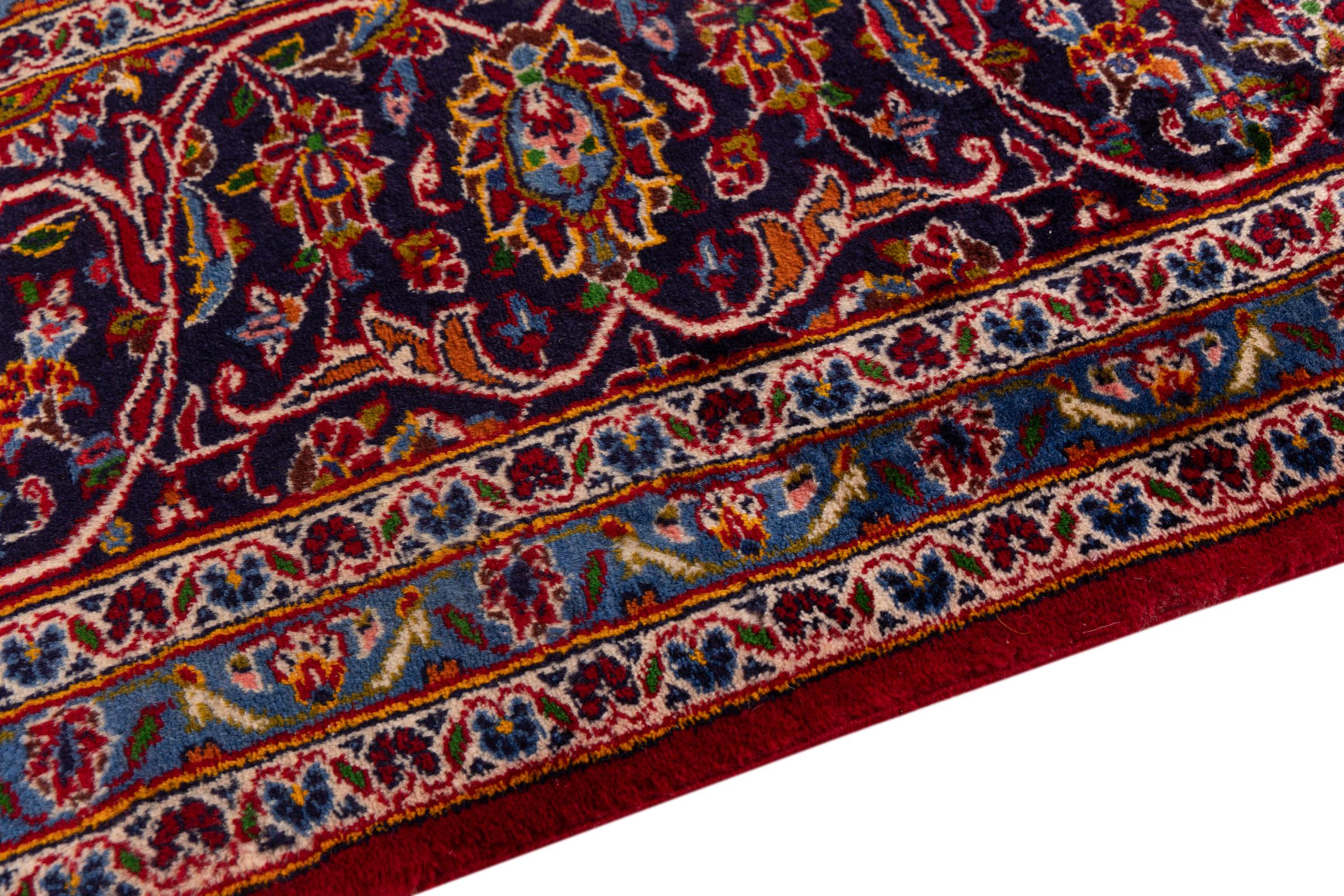 Ce tapis de Kashan (Keshan) se tient dans son design persan très traditionnel et typique avec de beaux ornements. Les tapis Kashan sont très populaires en raison de leur design exceptionnellement élégant. Ces tapis sont originaires de Kashan, une ville située sur l'ancienne route de la soie. Ce tapis a été noué à la main à partir de laine de mouton de haute qualité et sera un point culminant unique dans votre maison.