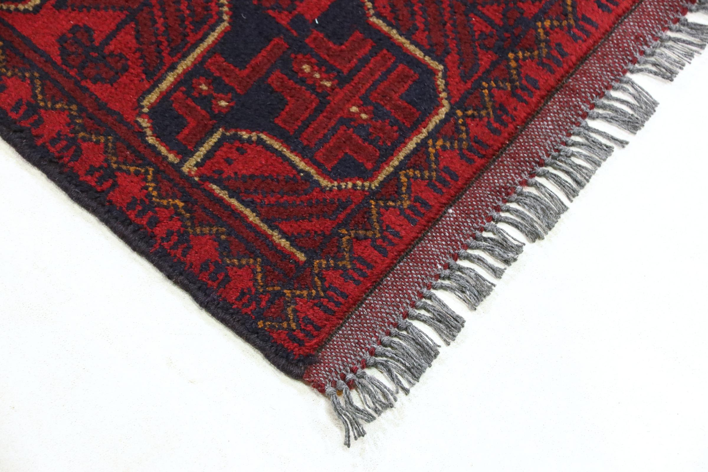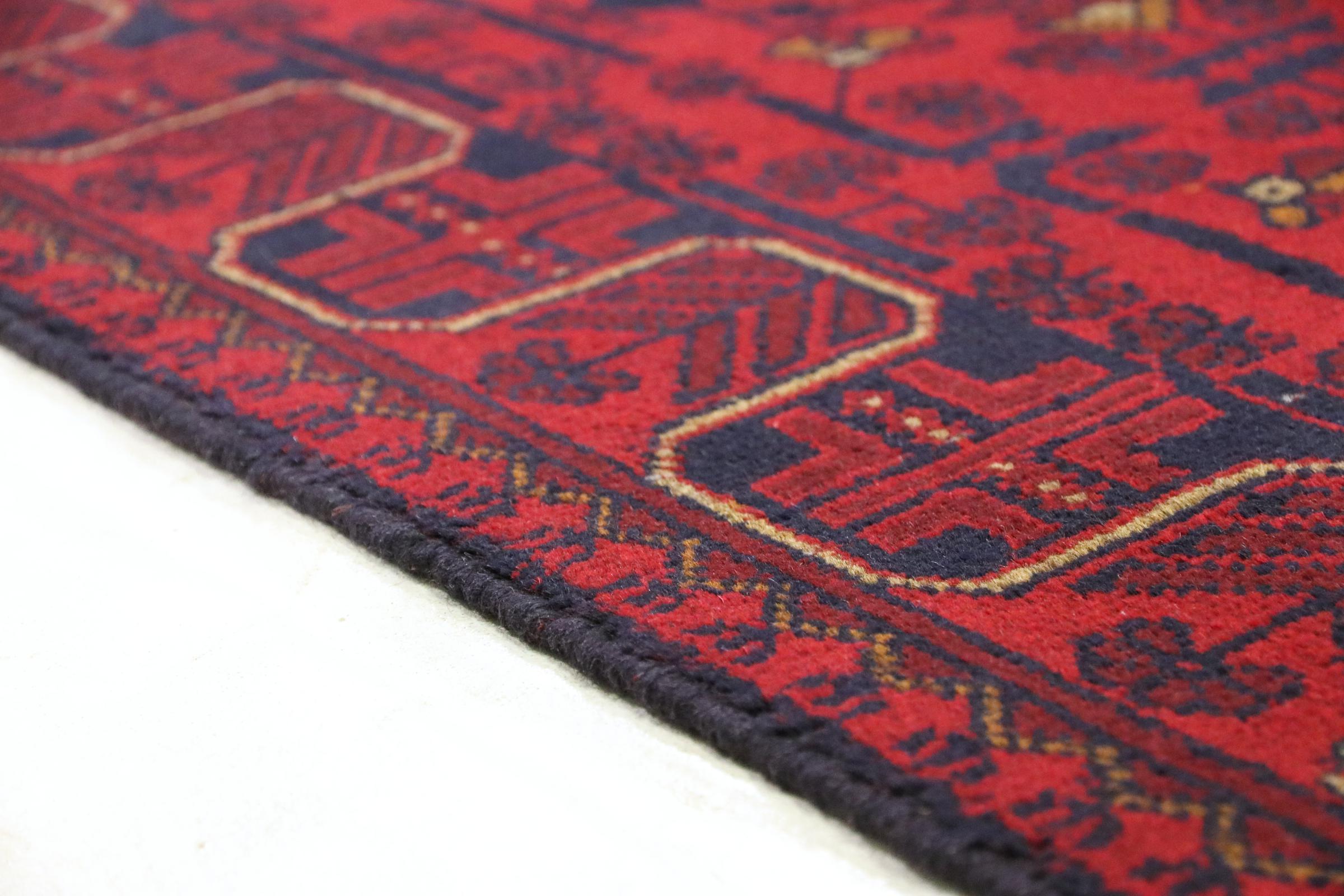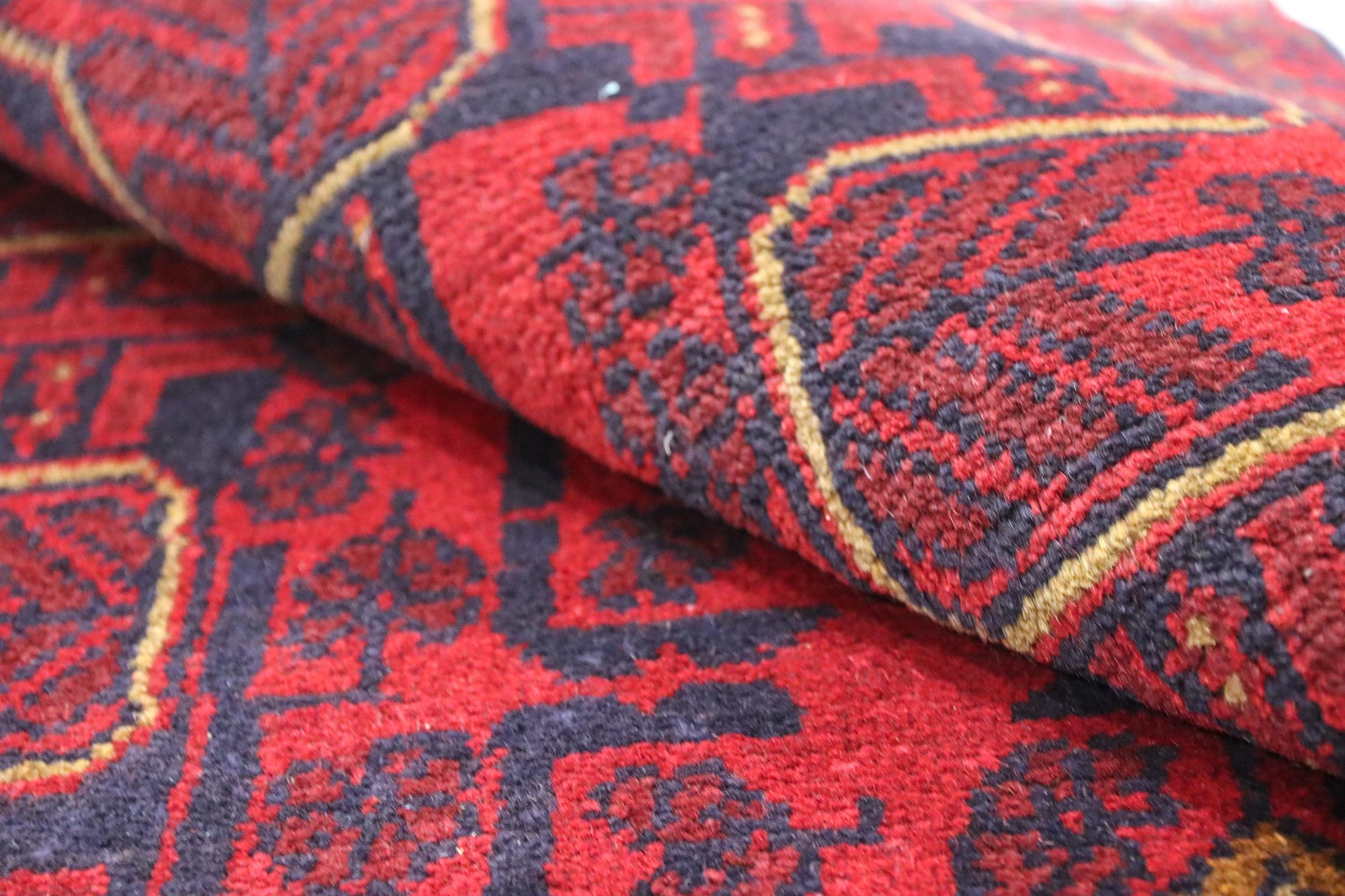 Ce Khal Mohammadi est un échantillon des tapis afghans de qualité supérieure. Avec ses nuances de rouge foncé, il convainc chacun d’entre nous. Ce tapis est noué au nord de l’Afghanistan avec une laine des plus raffinées.