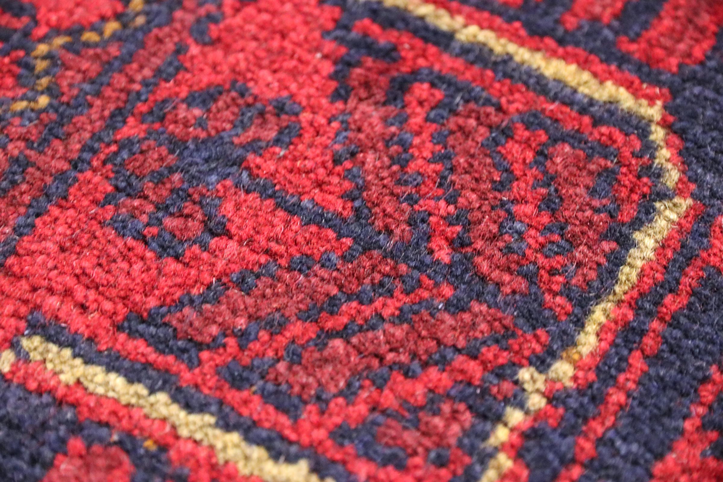 Réf. Article: 100736008015012 Taille: 119x72 cm Épaisseur: ap. 6 mm Densité de nouage: 200 000 - 250 000 / m² Fabrication: Noué à la main Velours: Laine de mouton Chaîne: Coton Origine: Afghanistan Âge: Nouveau Poids: ap. 3 kg Également connu sous Afgan, Afghán, Afgán Nombre en stock: Unique